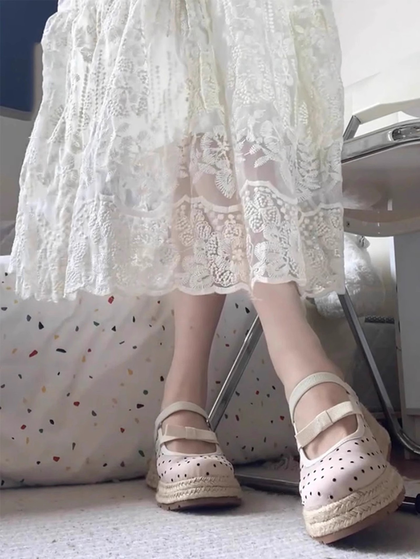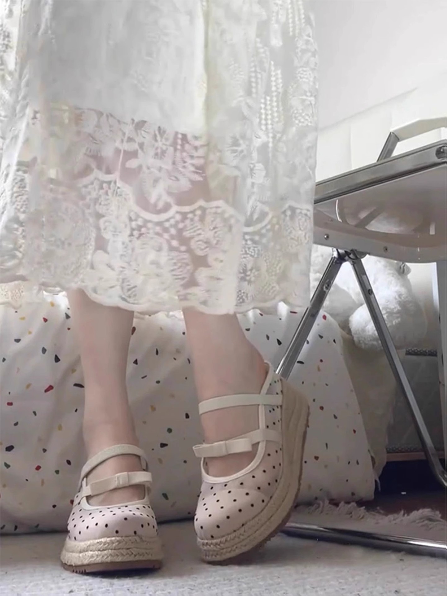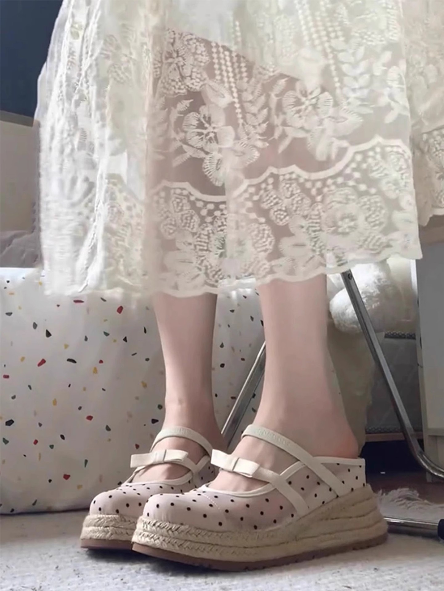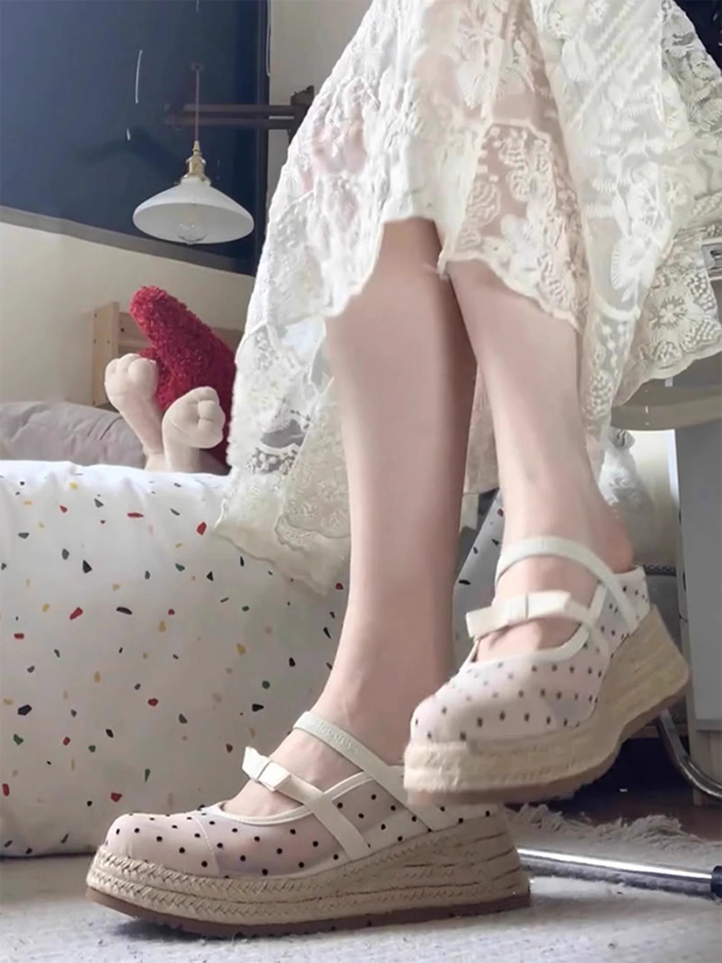 폴로도트 메쉬 슬리퍼 여성용 여름 외부 착용 작은 높이 올리는 웨지 힐 힙 신발 2025 새로운 스타일스토어 가기