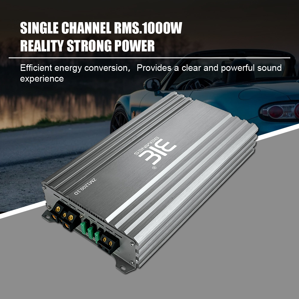 공장 직접 판매 자동차 오디오 증폭기 ZM1200.1D 단일 채널 증폭기 12V 고출력 서브우퍼 증폭기