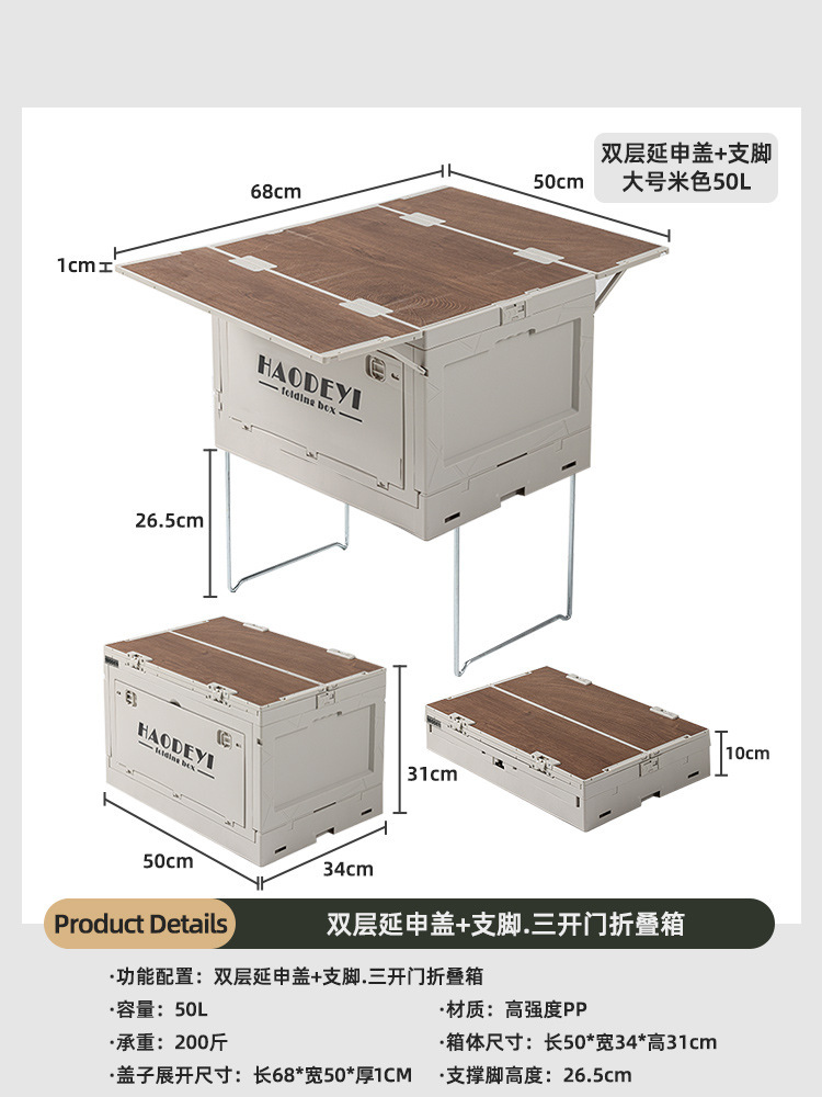 야외 보관 상자 캠핑 접이식 여행 테이블 상자 테이블 이중 목적 자동차 다기능 피크닉 상자 테이블 캠핑스토어 가기