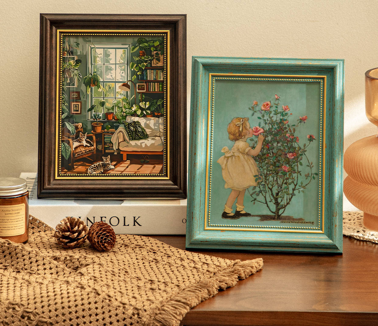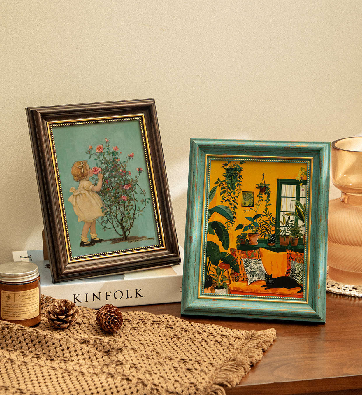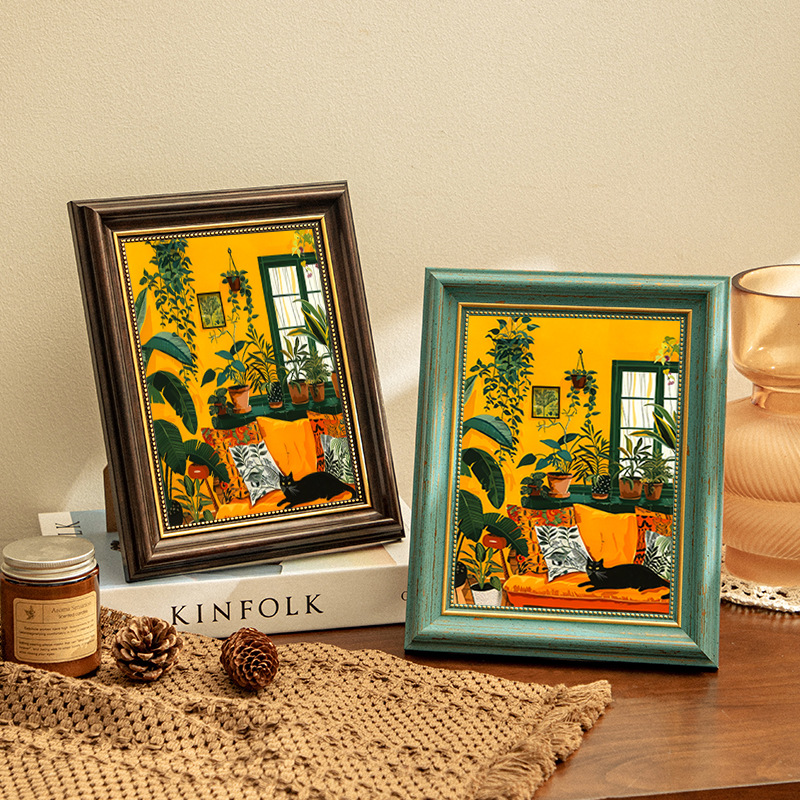 유화 사진 프레임 테이블 사용자 정의 장식 그림 미국 복고풍 7inch 배경 벽 예술 벽 교수형 프레임 고급스토어 가기