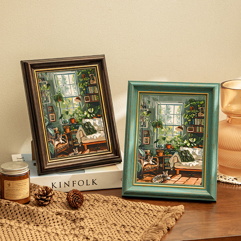 유화 사진 프레임 테이블 사용자 정의 장식 그림 미국 복고풍 7inch 배경 벽 예술 벽 교수형 프레임 고급