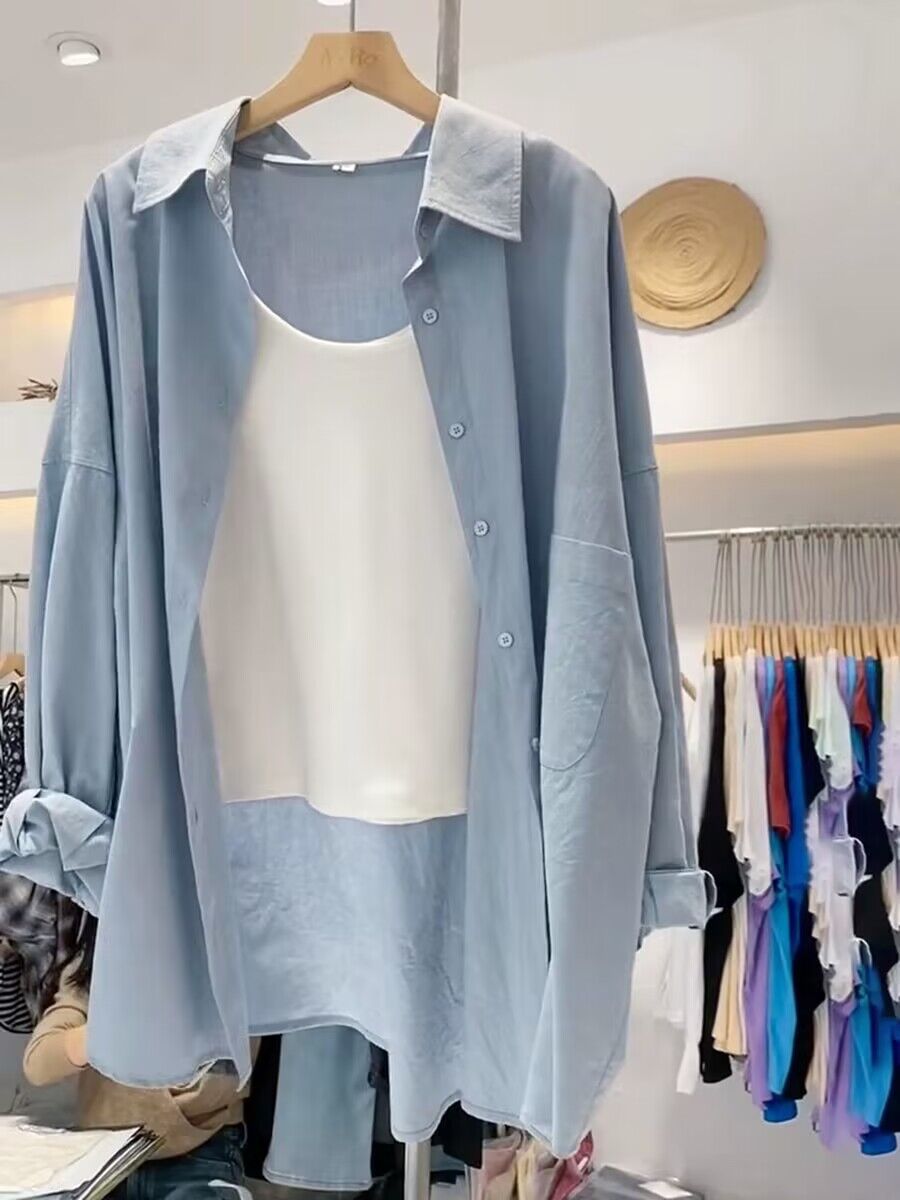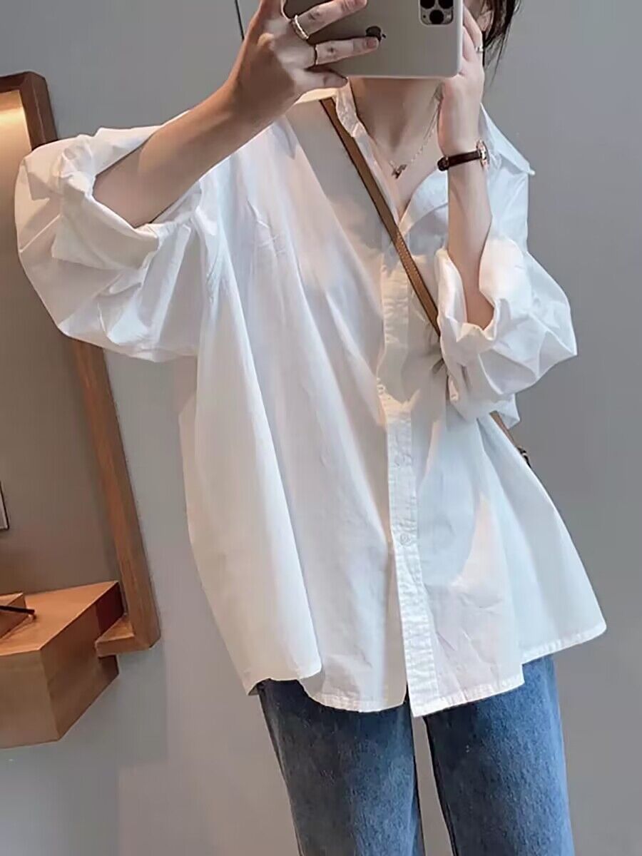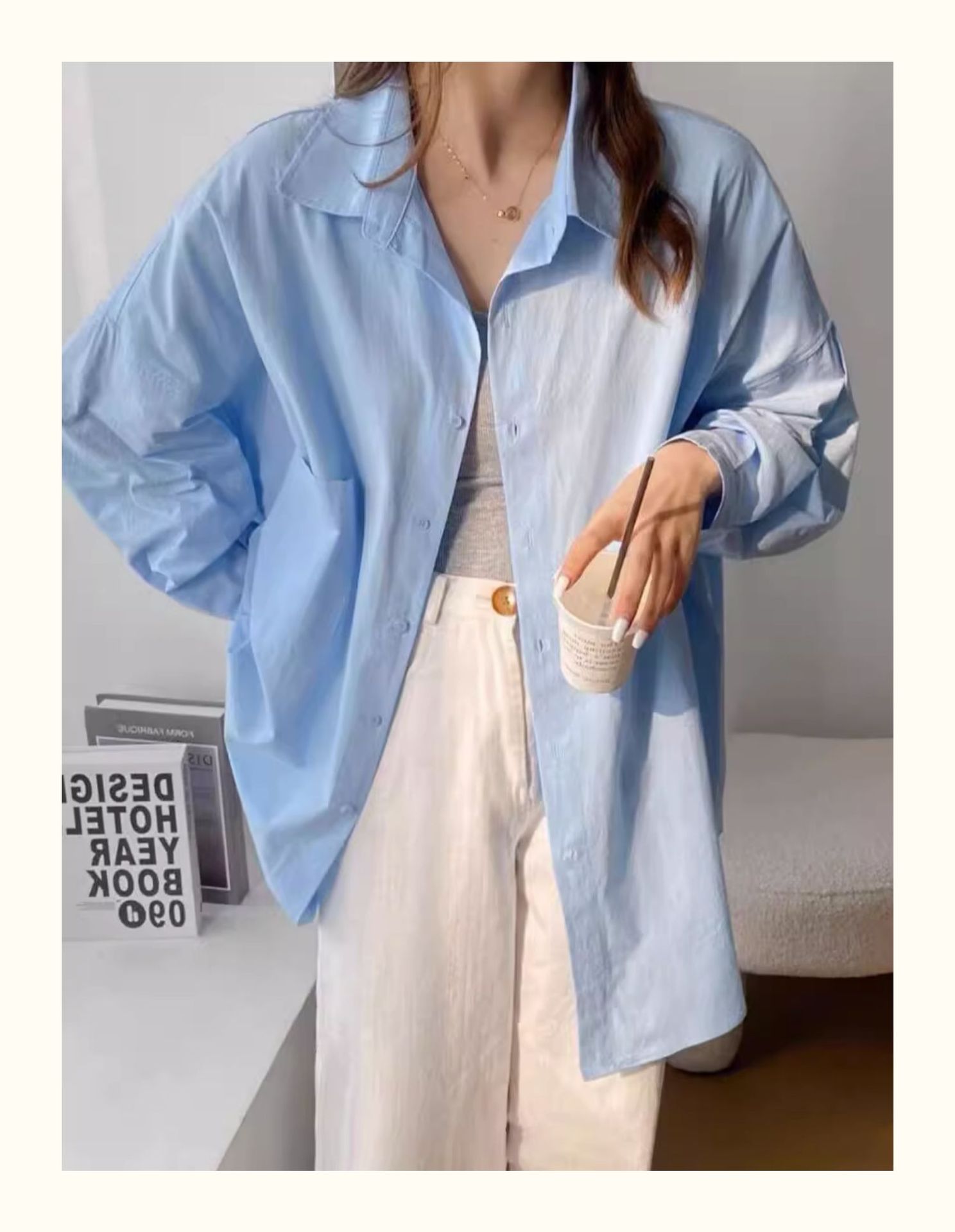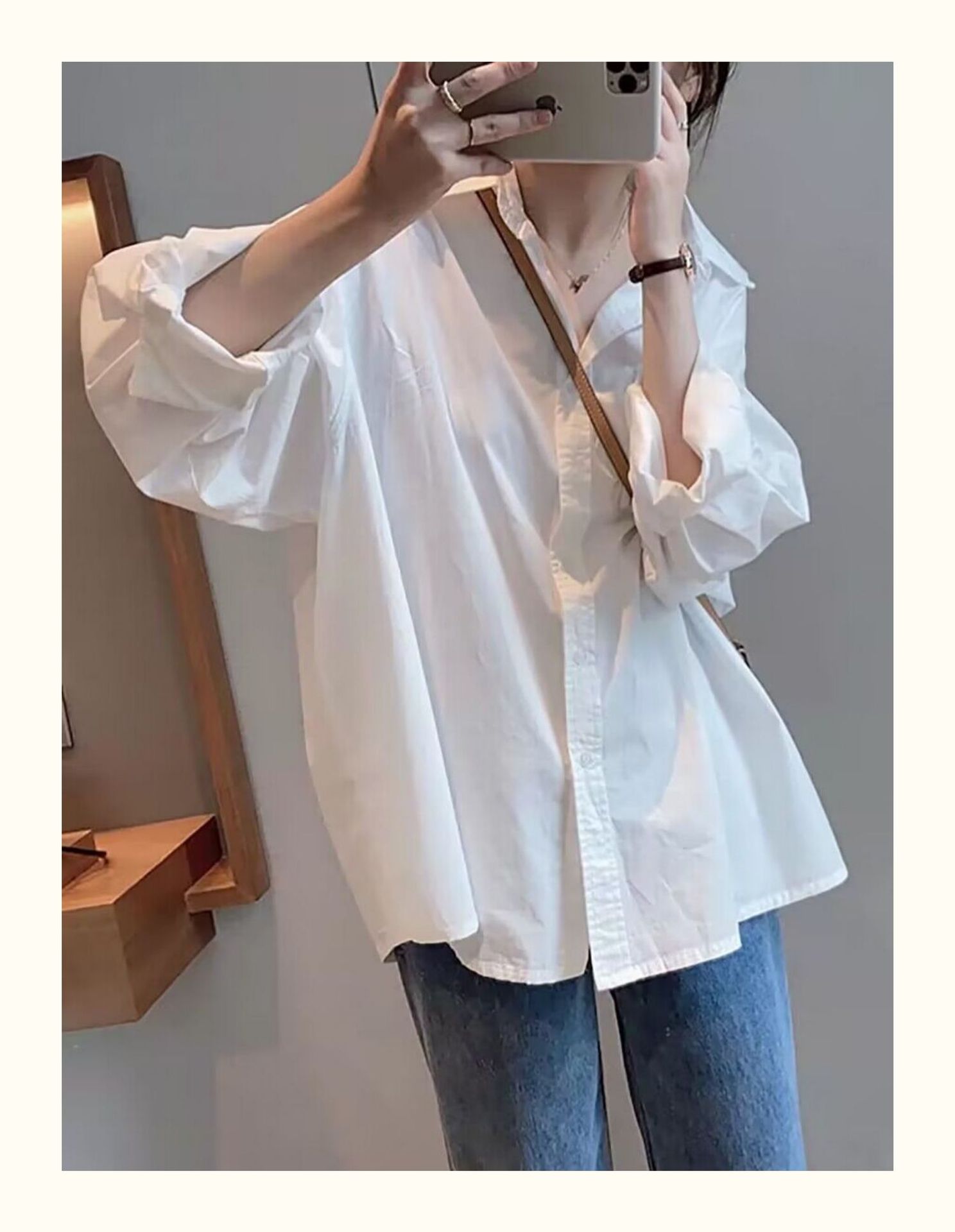 화이트 셔츠 여성의 중간 길이 최고 빛 성숙한 프랑스 틈새 2025 새로운 봄 느슨한 게으른 스타일 코트 셔츠스토어 가기