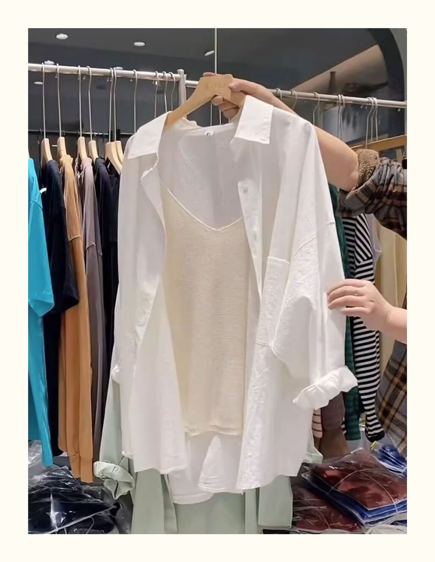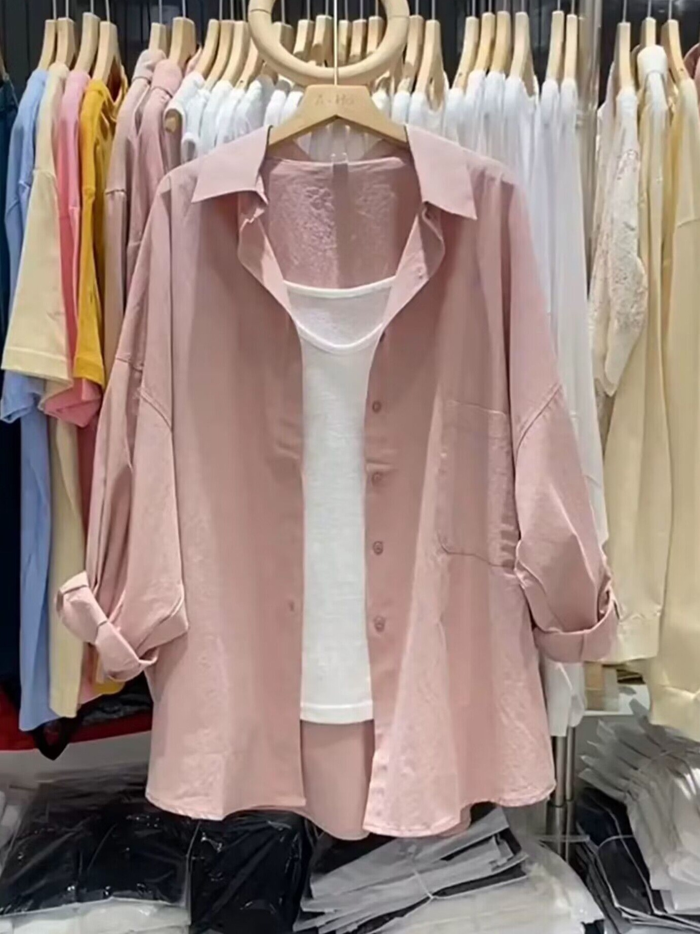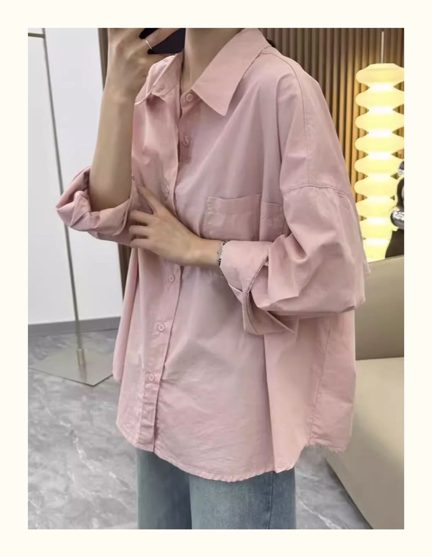 화이트 셔츠 여성의 중간 길이 최고 빛 성숙한 프랑스 틈새 2025 새로운 봄 느슨한 게으른 스타일 코트 셔츠스토어 가기