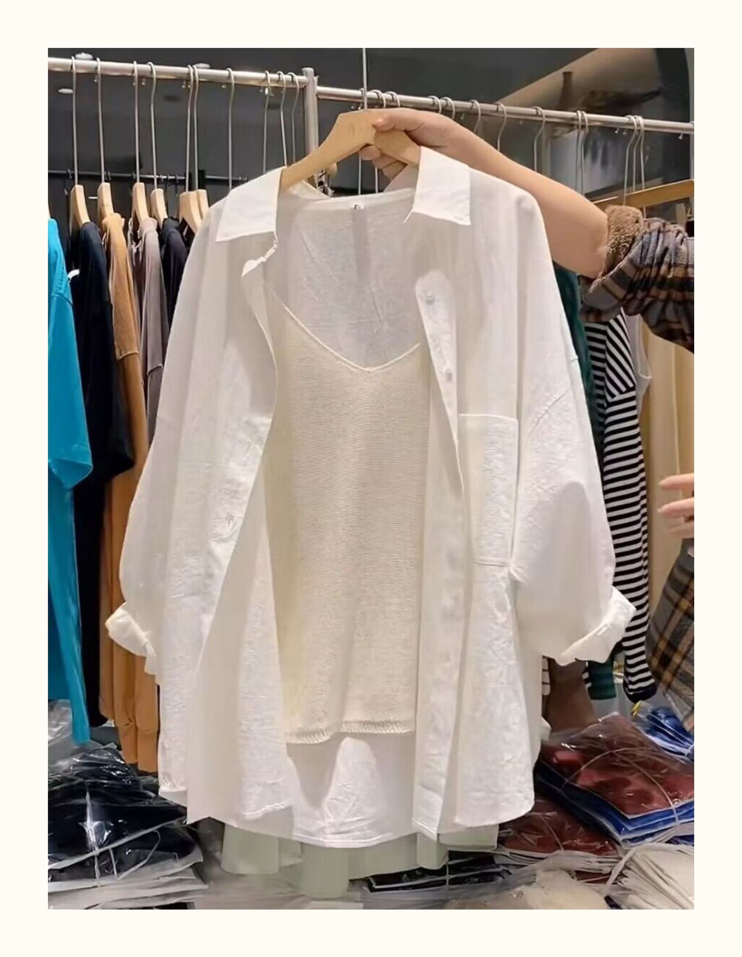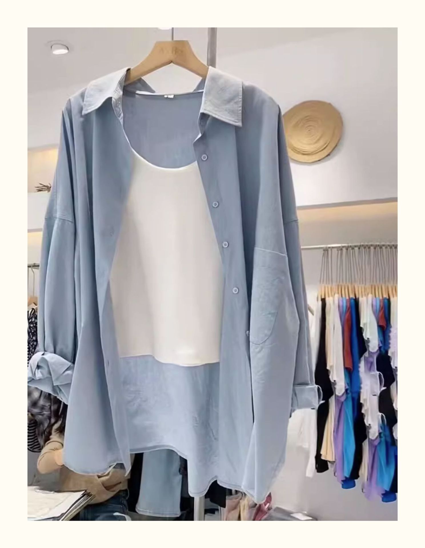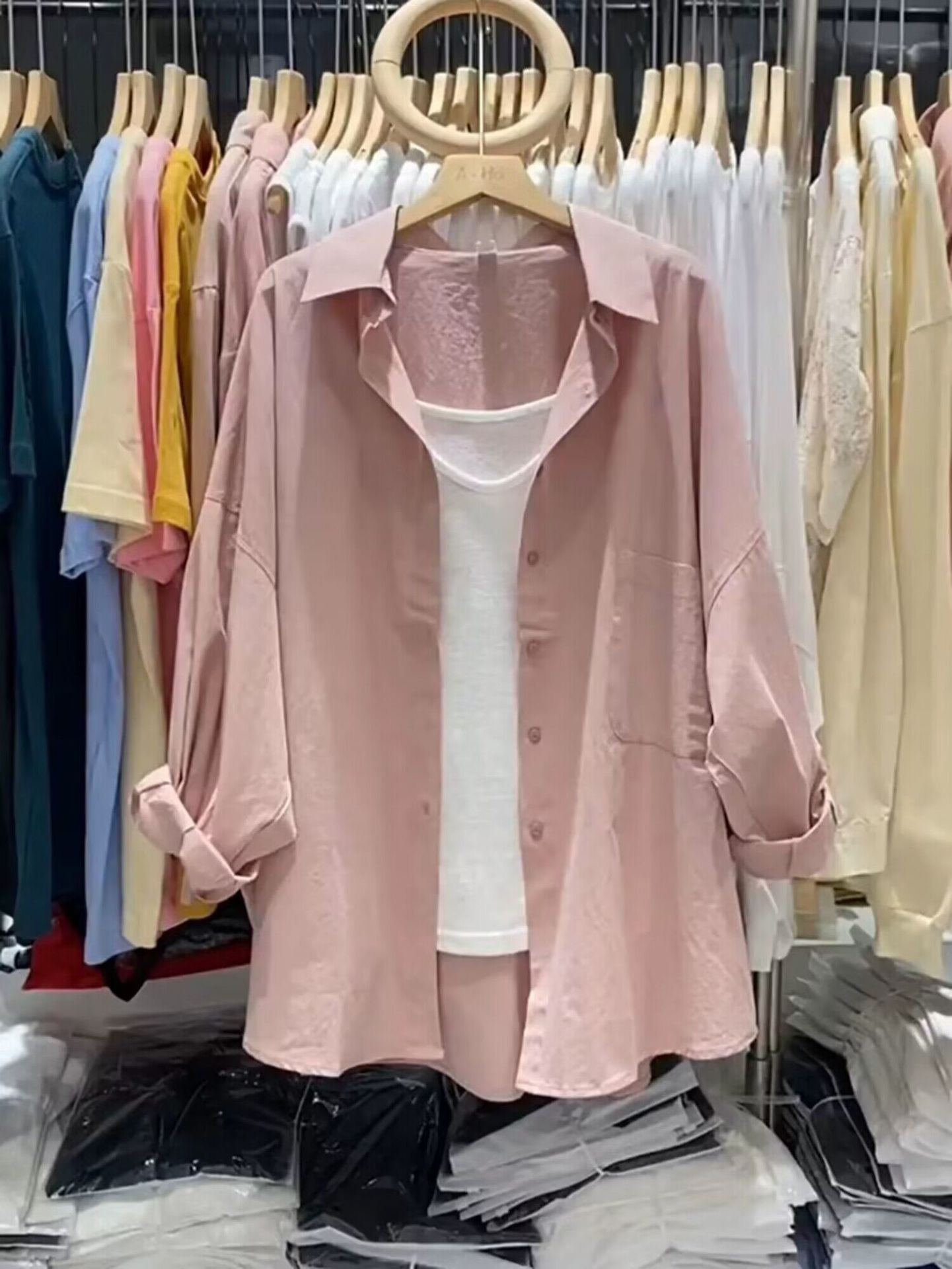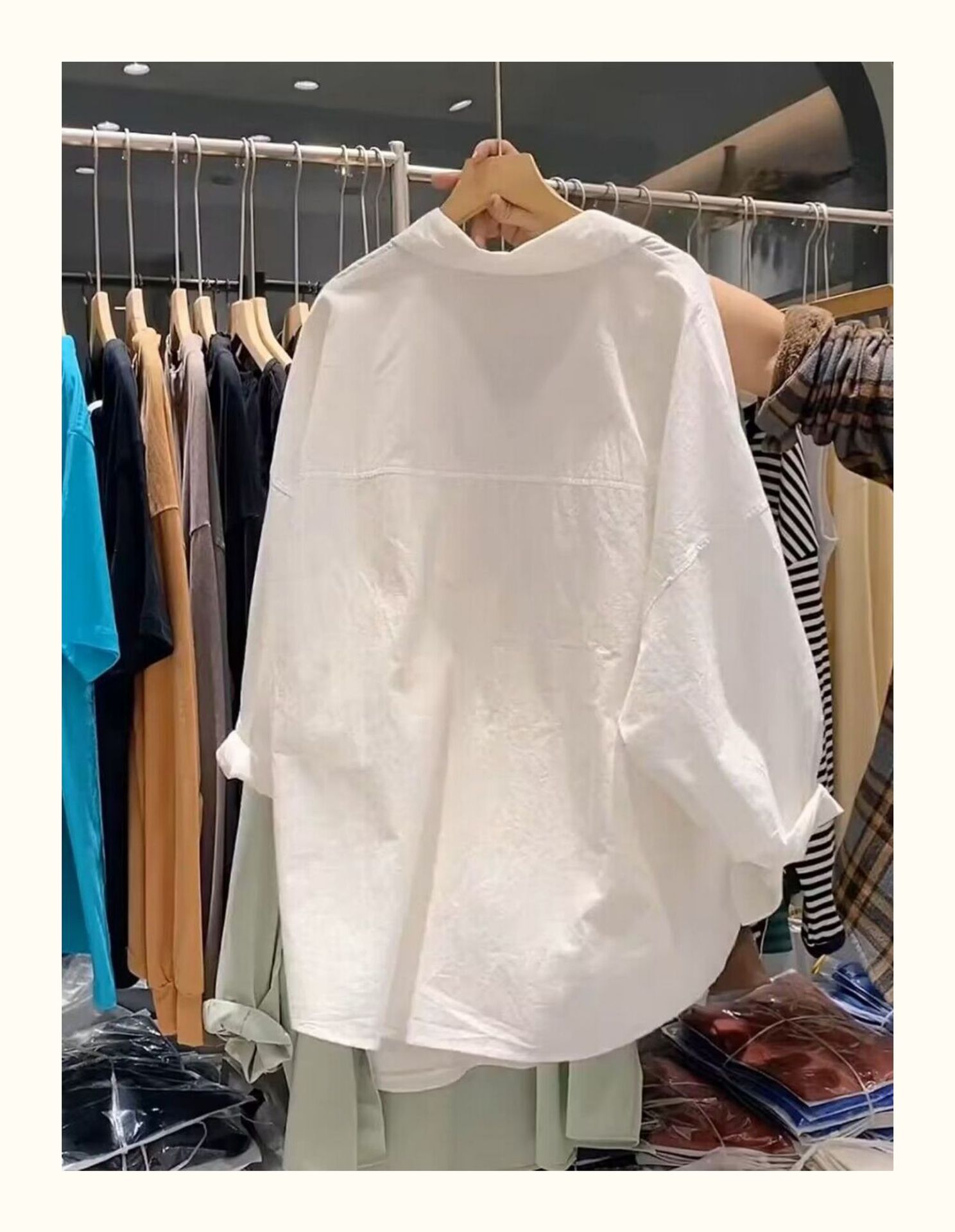 화이트 셔츠 여성의 중간 길이 최고 빛 성숙한 프랑스 틈새 2025 새로운 봄 느슨한 게으른 스타일 코트 셔츠스토어 가기