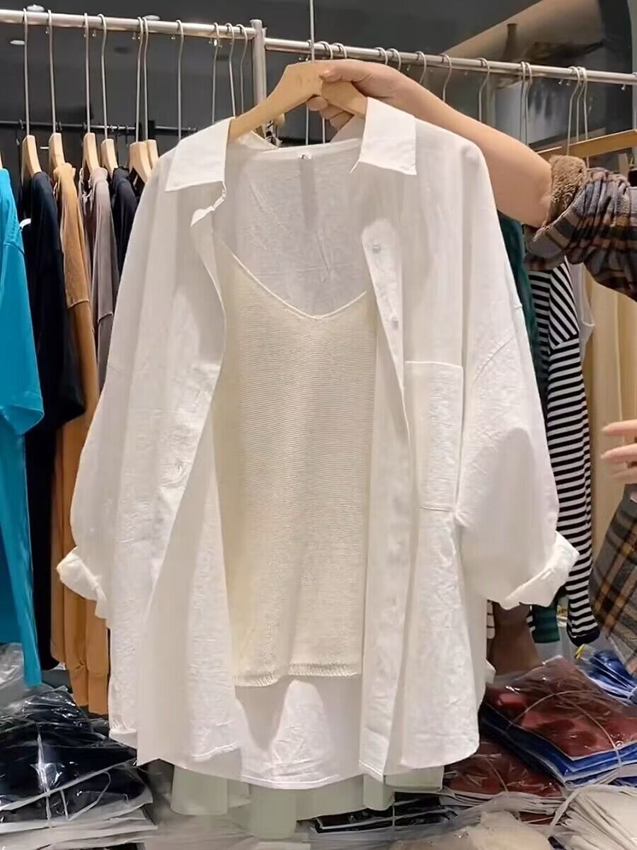 화이트 셔츠 여성의 중간 길이 최고 빛 성숙한 프랑스 틈새 2025 새로운 봄 느슨한 게으른 스타일 코트 셔츠
