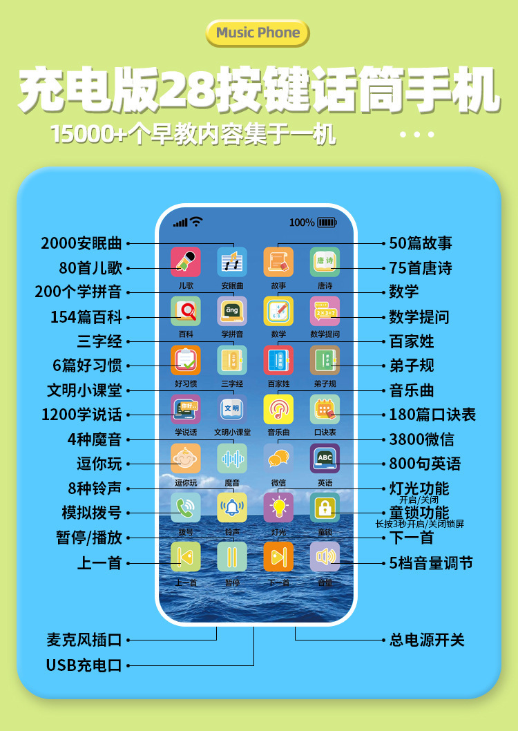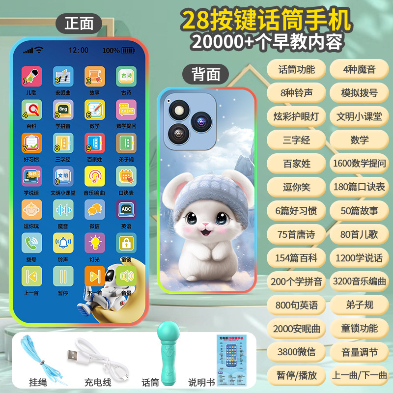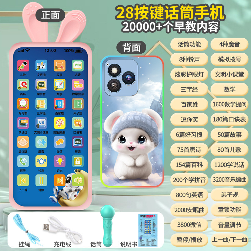 • 28개의 기능 버튼 [마이크 버전] 20,000개의 지식 포인트 [귀여운 토끼] 치발기 휴대폰 케이스 포함