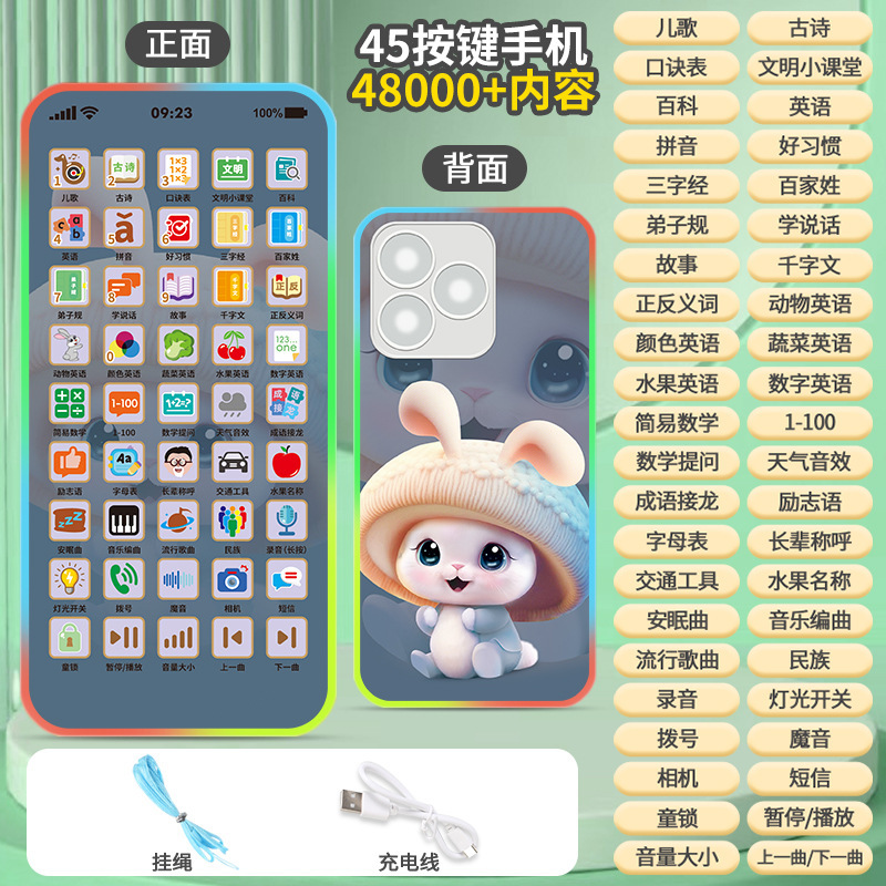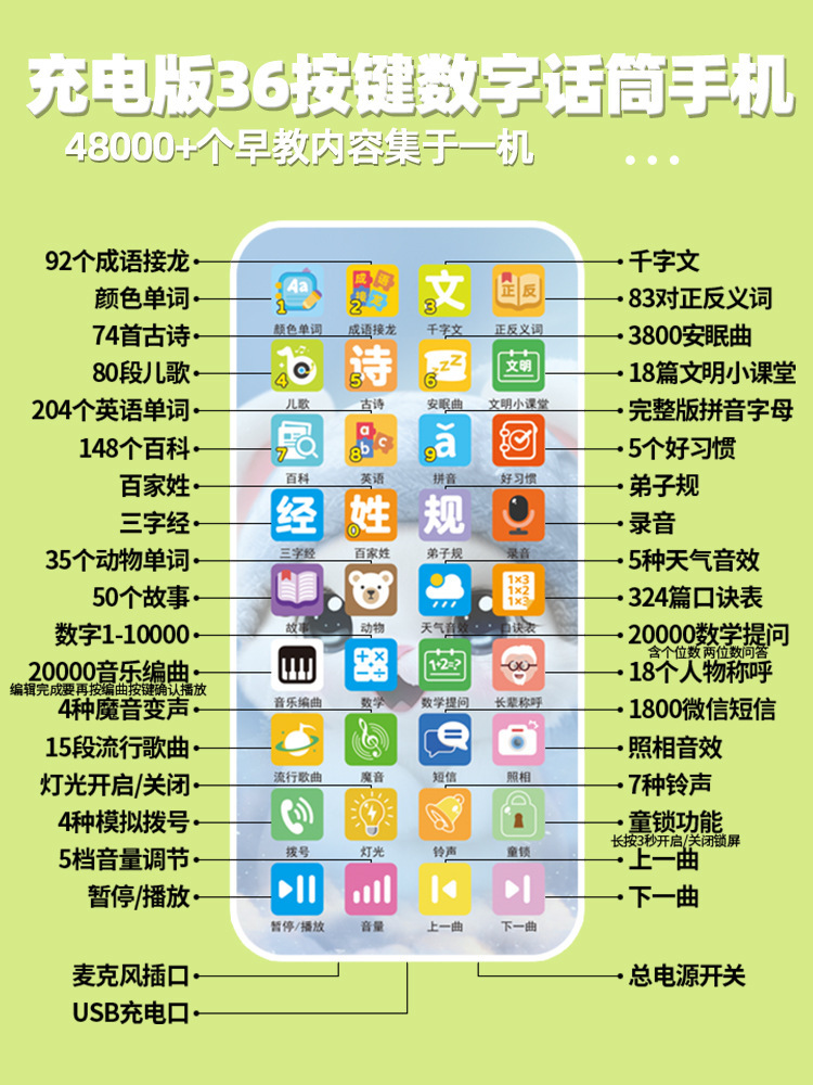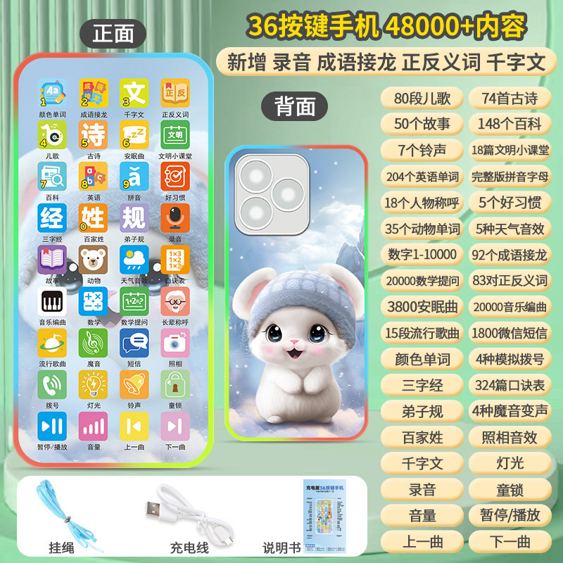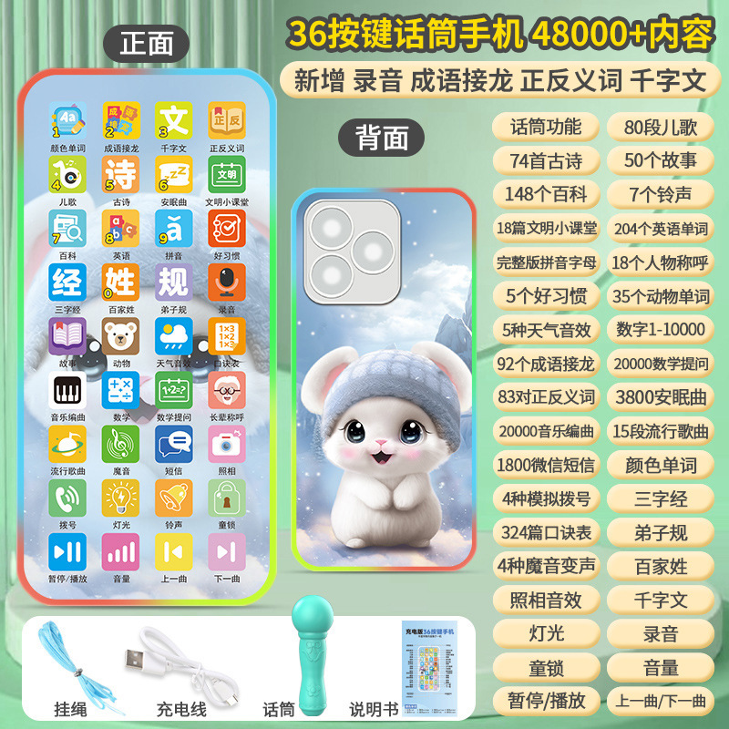 • 기능 버튼 36개 [마이크 버전] 지식 포인트 48,000개 [충전 케이블 + 끈 포함] 귀여운 토끼