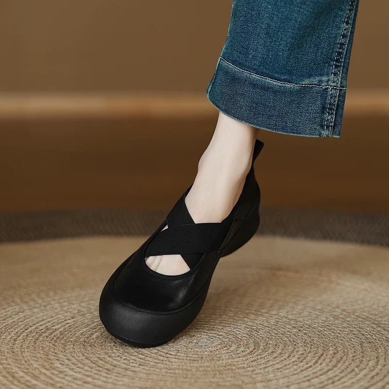 배설물 ~ 크로스 벨트 얕은 두꺼운 바닥 작은 가죽 신발 통근 머핀 메리 제인 여성 신발 스포츠 캐주얼 신발 싱글 슈즈