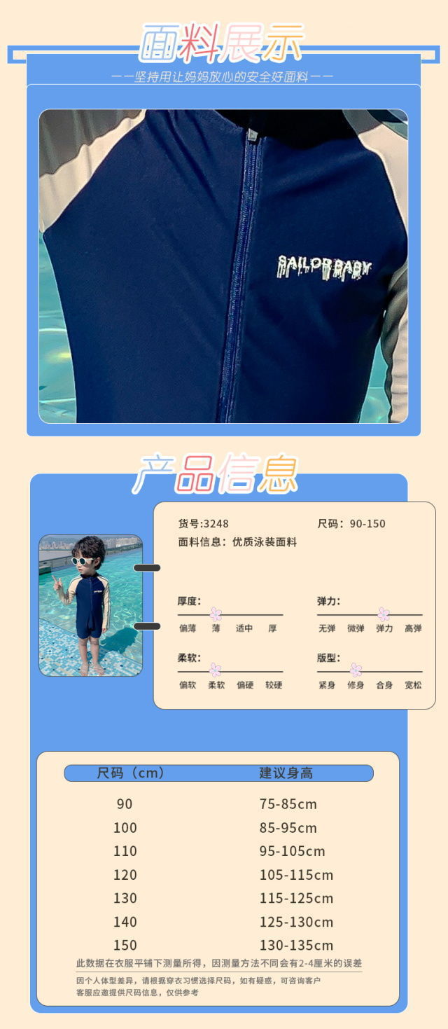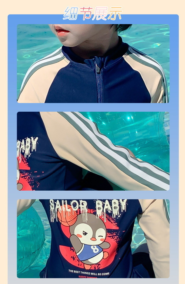 어린이 수영복 소년의 새로운 원피스 긴팔 아기 속건성 편안한 통기성 태양 보호 해변 휴가 수영복