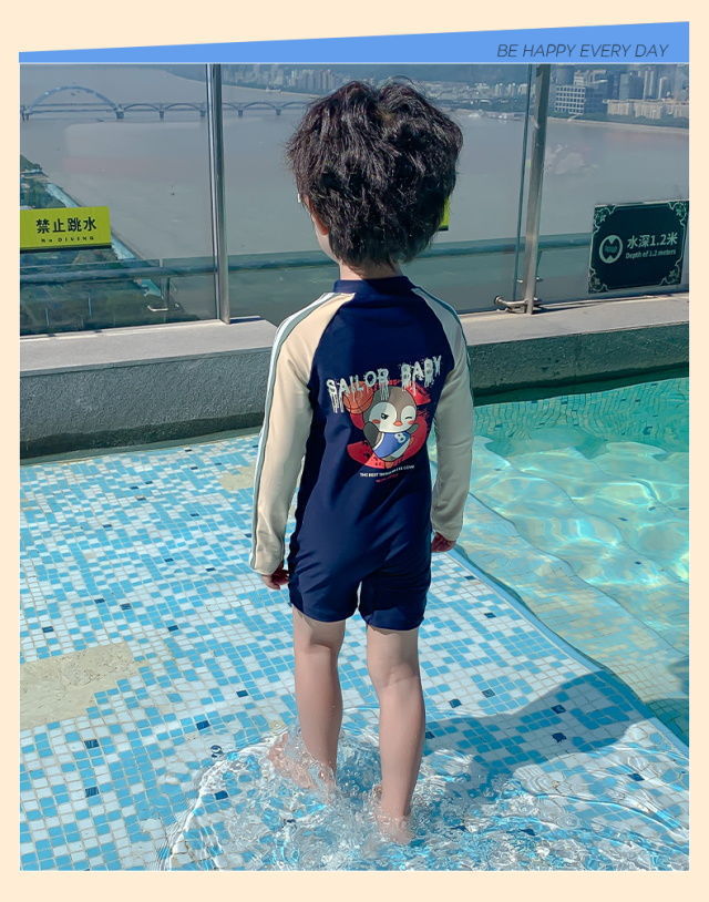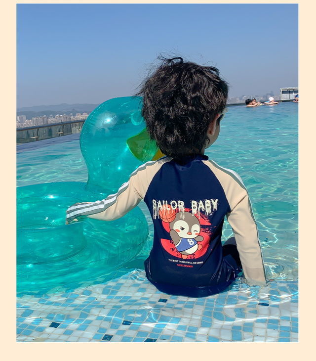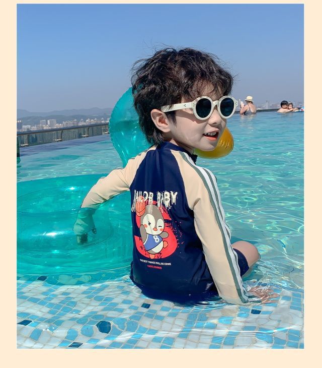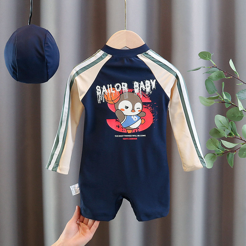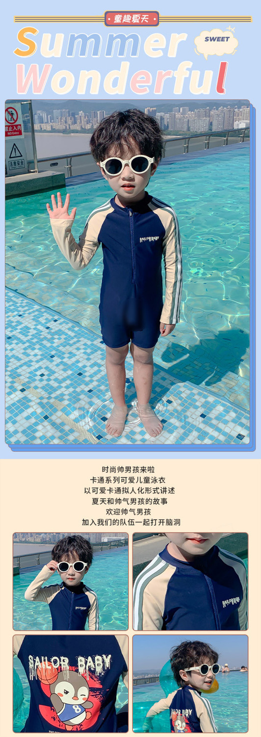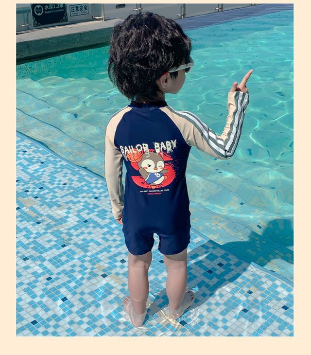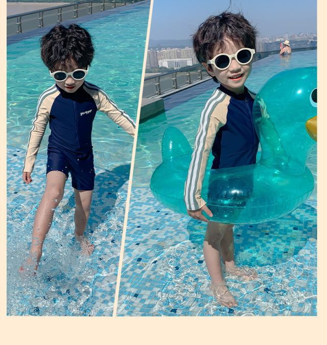 어린이 수영복 소년의 새로운 원피스 긴팔 아기 속건성 편안한 통기성 태양 보호 해변 휴가 수영복스토어 가기