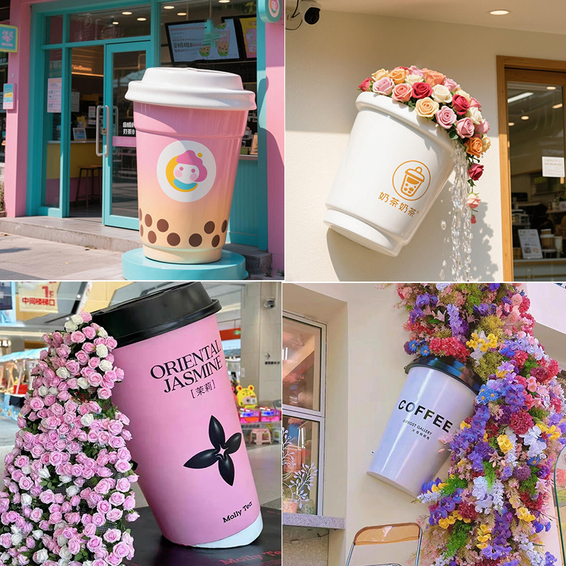 인터넷 축하 카드 교수형 벽 우유 차 컵 모델 거대한 조각 커피 숍 문 머리 장식 맥주 컵 대형 장식품