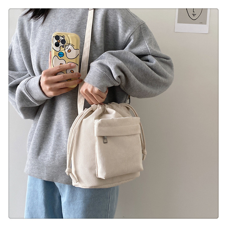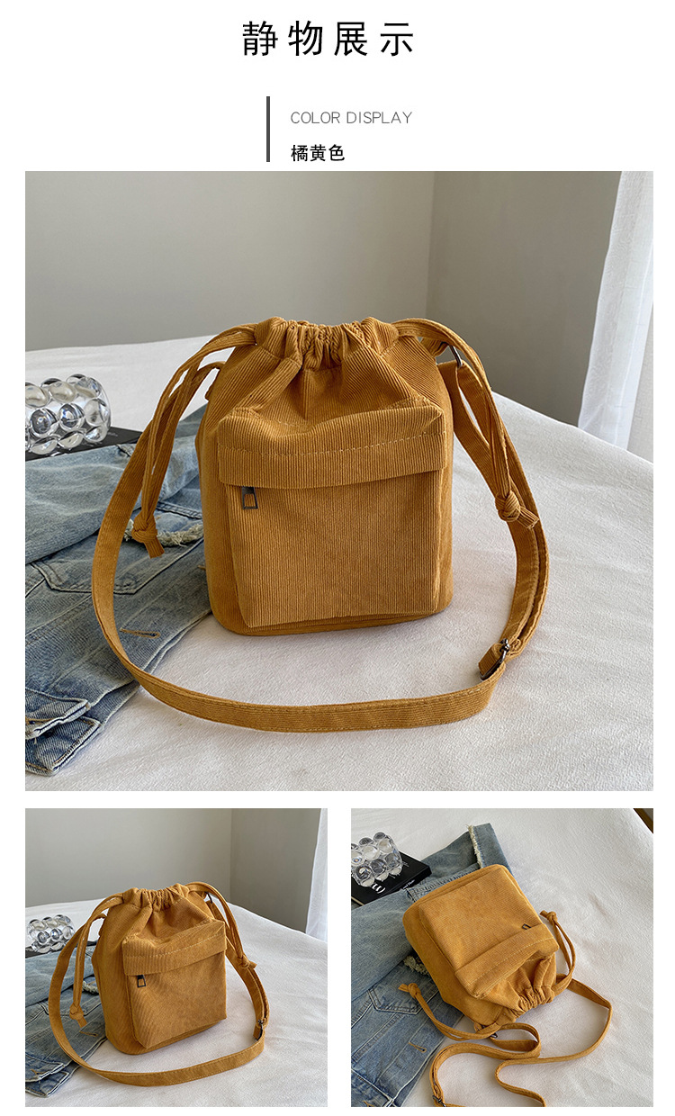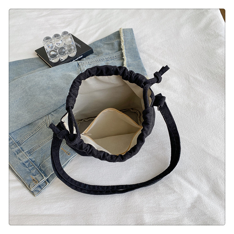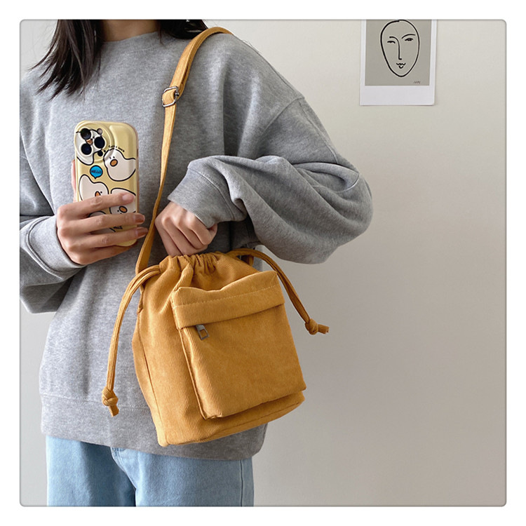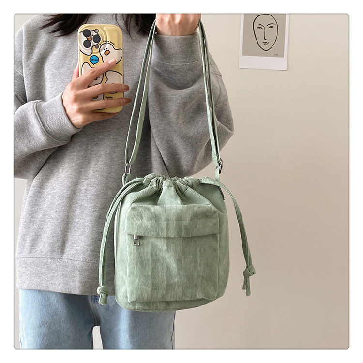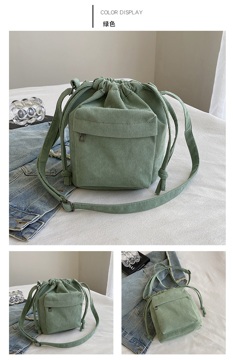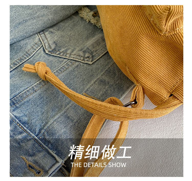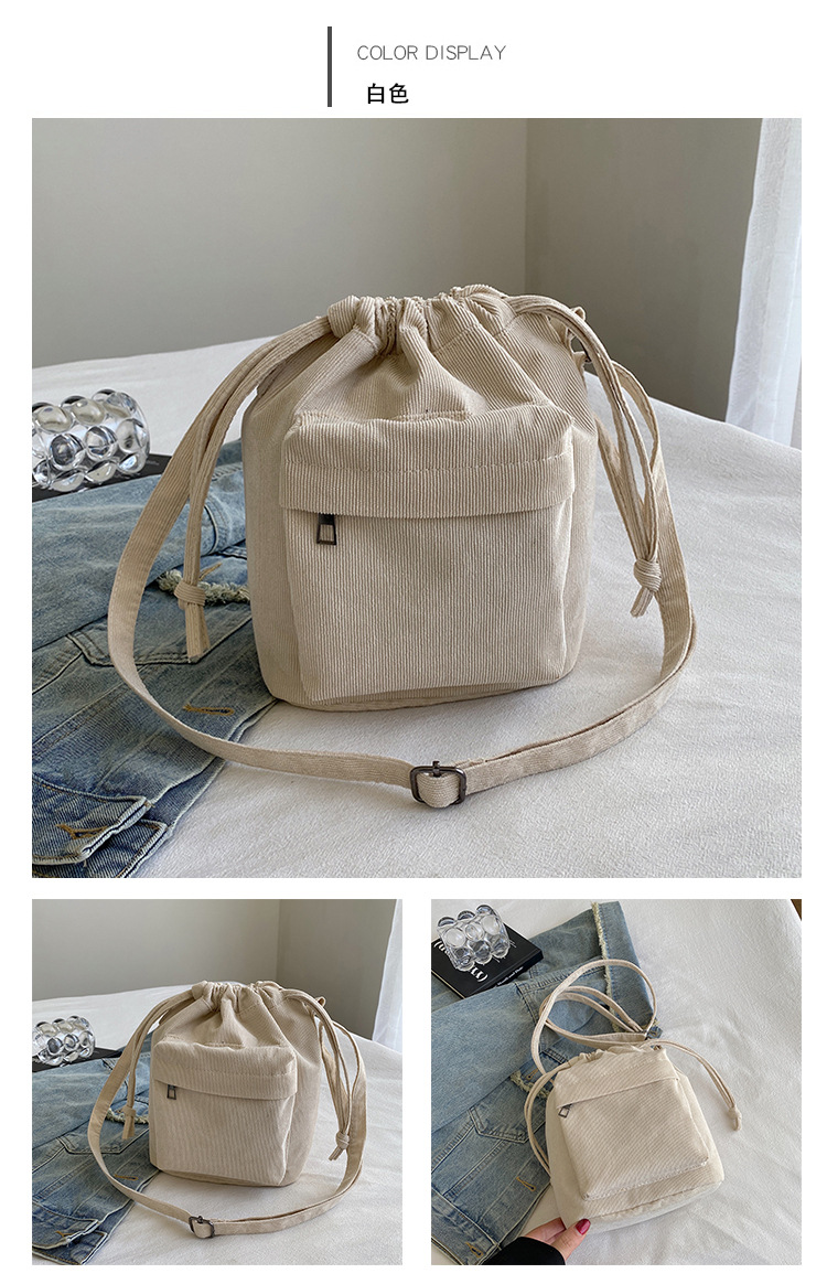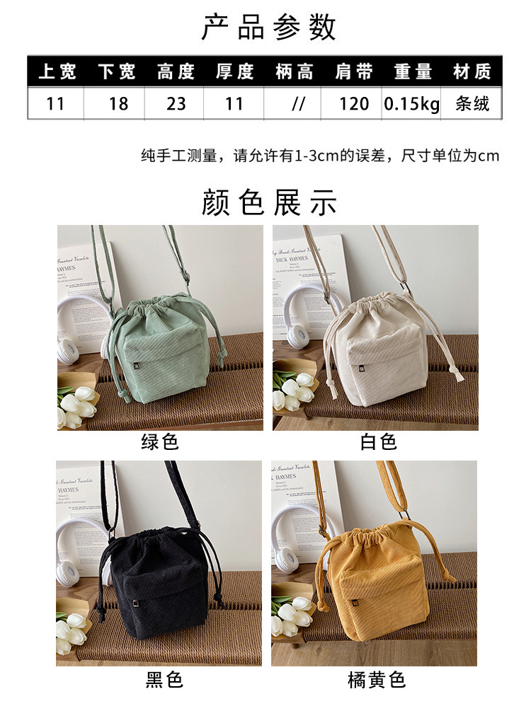 2023 여름 신작 중간 스티치 드로스트링 숄더백 코듀로이 대외 무역 트렌디 버킷 백