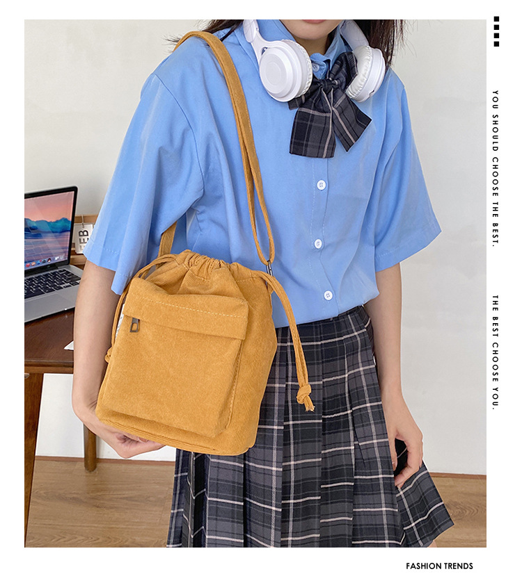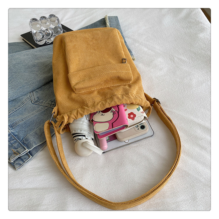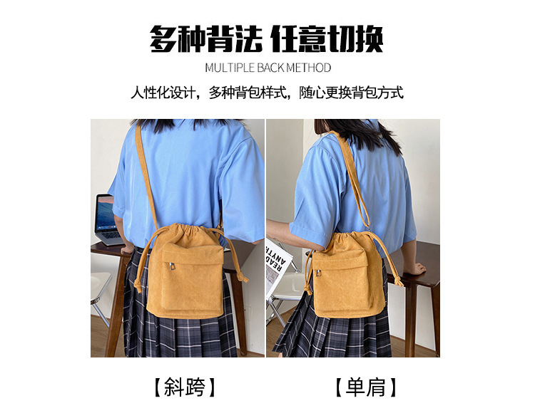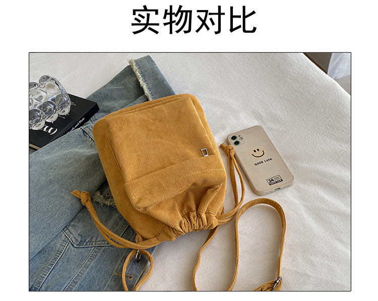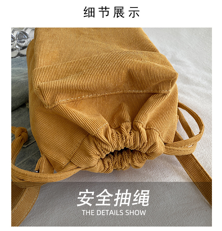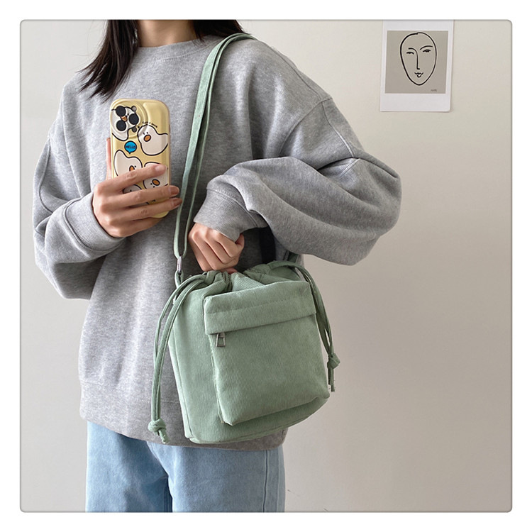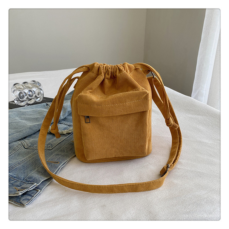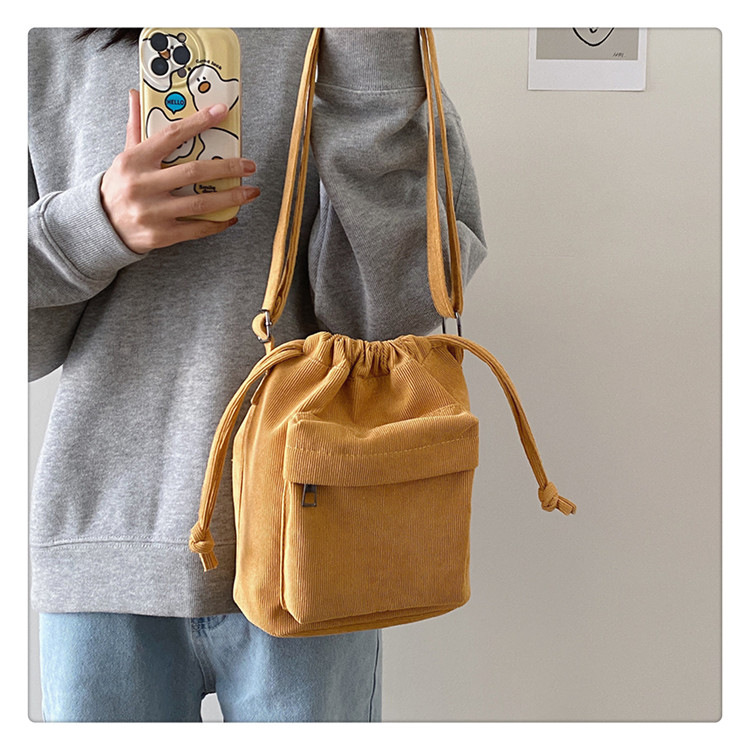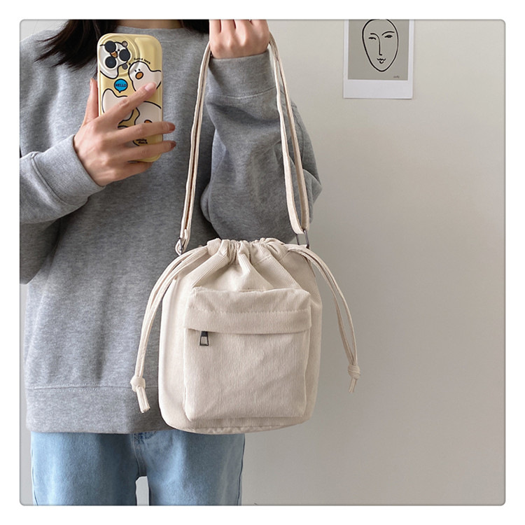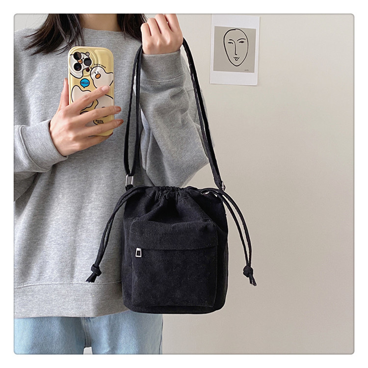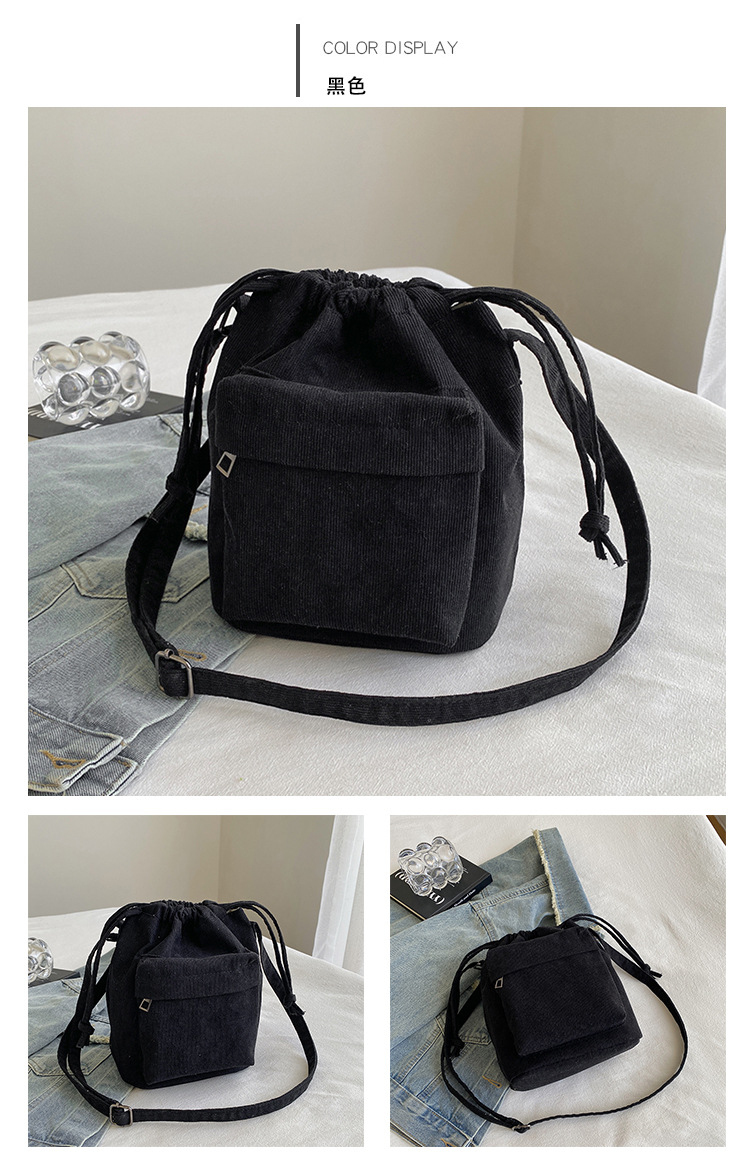 2023 여름 신작 중간 스티치 드로스트링 숄더백 코듀로이 대외 무역 트렌디 버킷 백