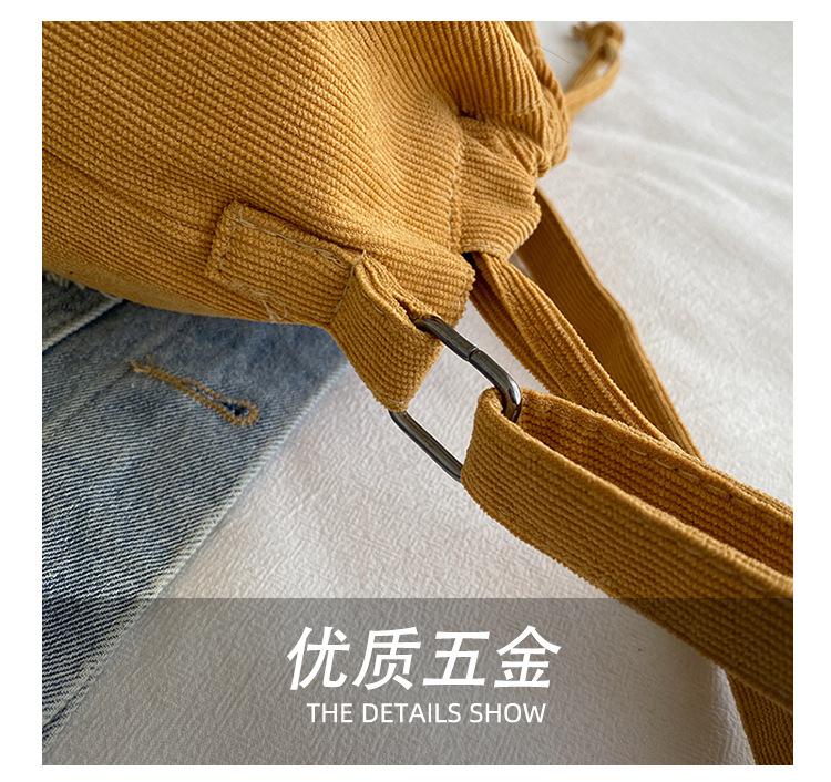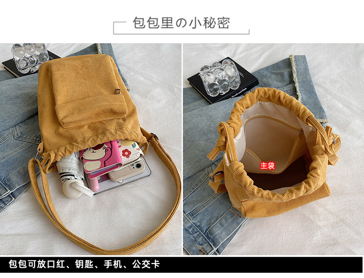 2023 여름 신작 중간 스티치 드로스트링 숄더백 코듀로이 대외 무역 트렌디 버킷 백스토어 가기