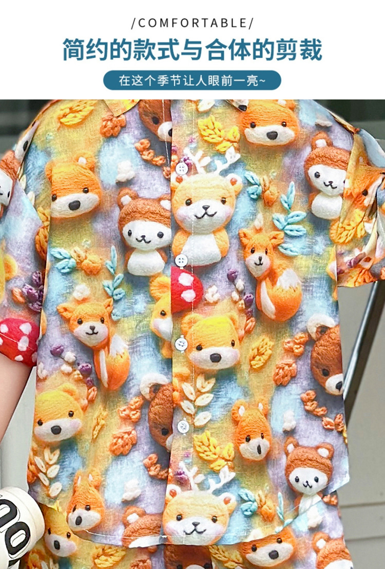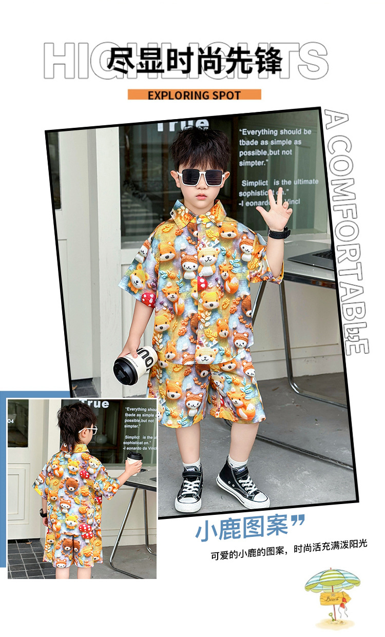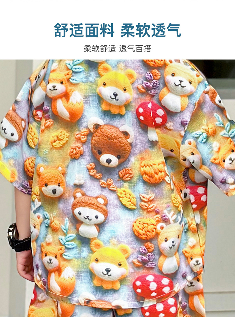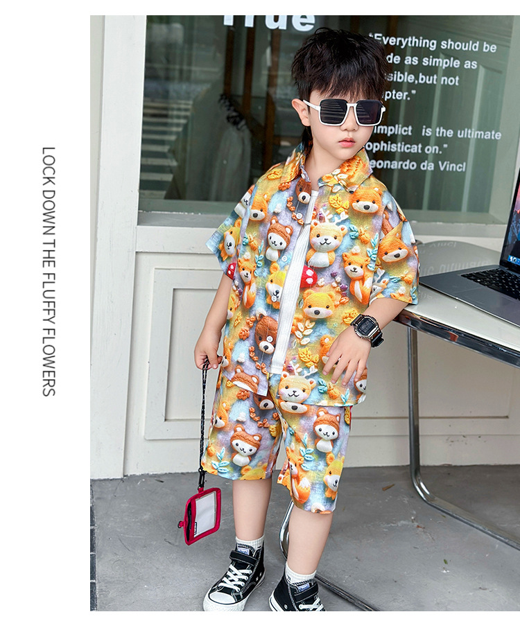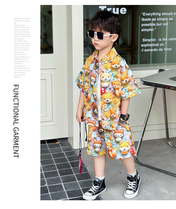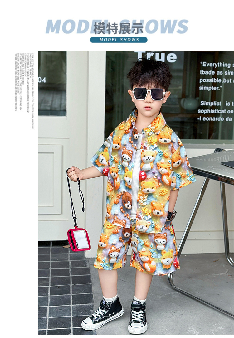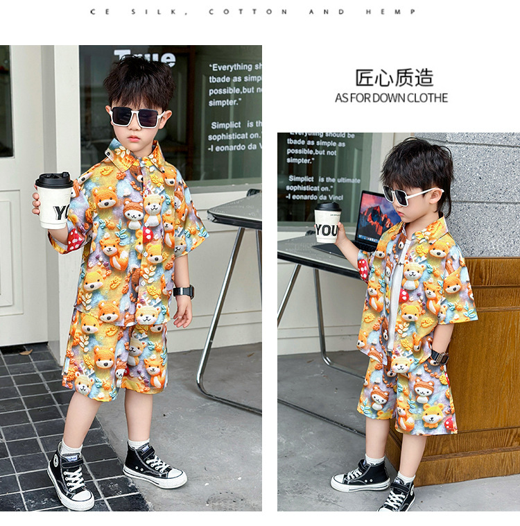 소년 여름 곰 셔츠 정장 어린이 반팔 캐주얼 얇은 투피스 세트 아기 여름 옷 소년
