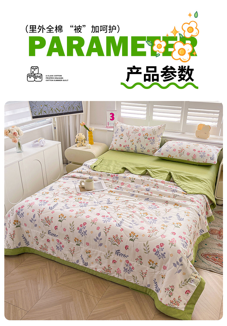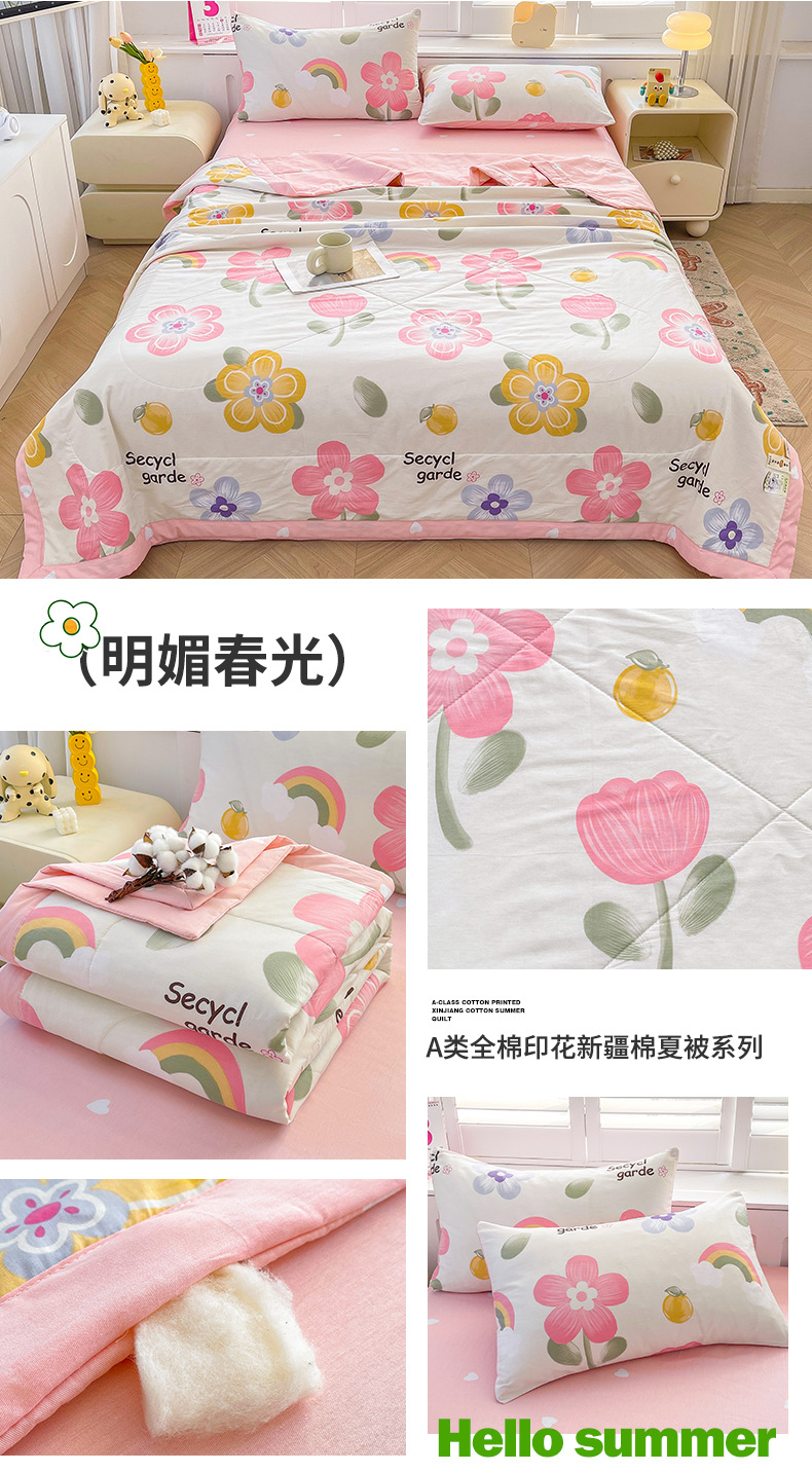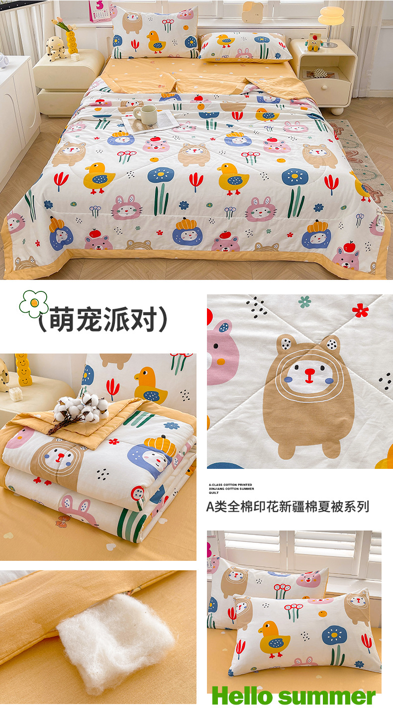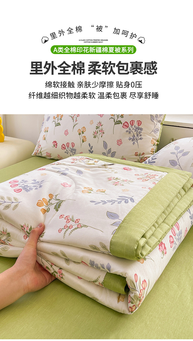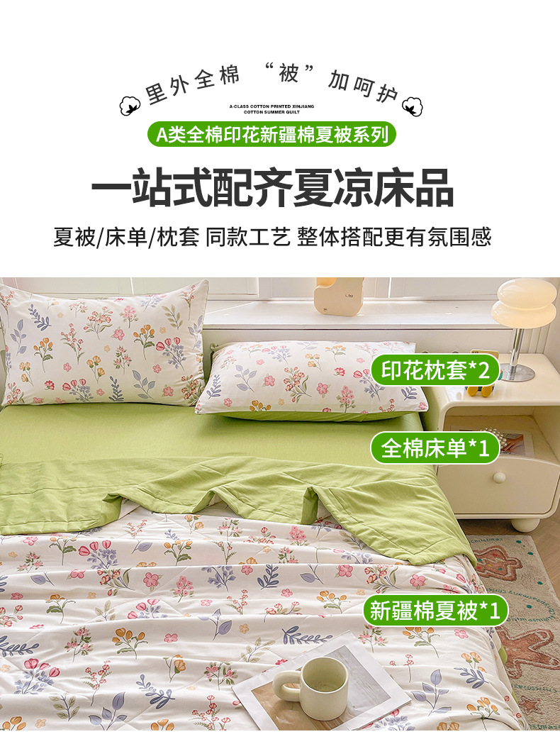 클래스 A 산모 및 유아용 순면 여름 이불 4피스 세트 순면 어린이 에어컨 이불 학생 기숙사 여름 시원한 이불 알몸 수면 싱글 이불