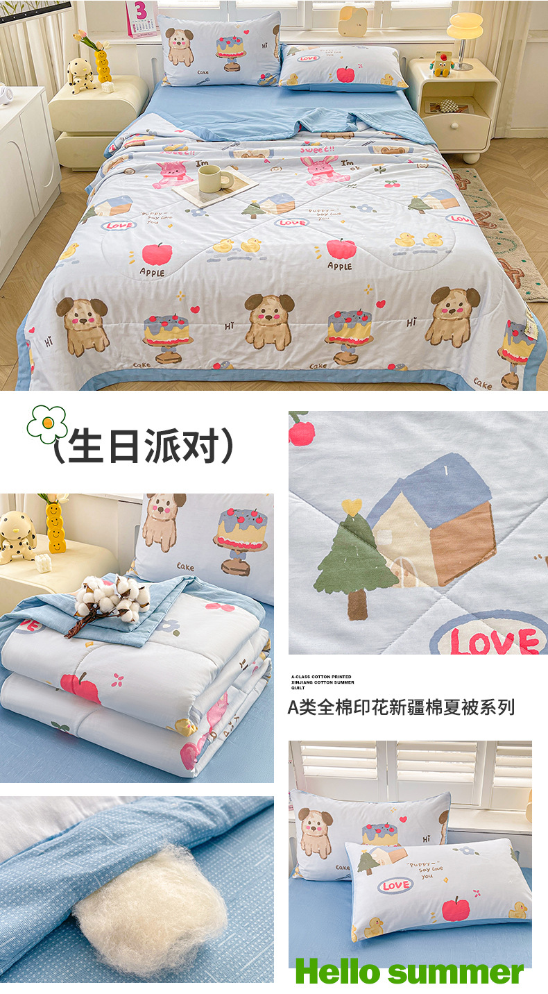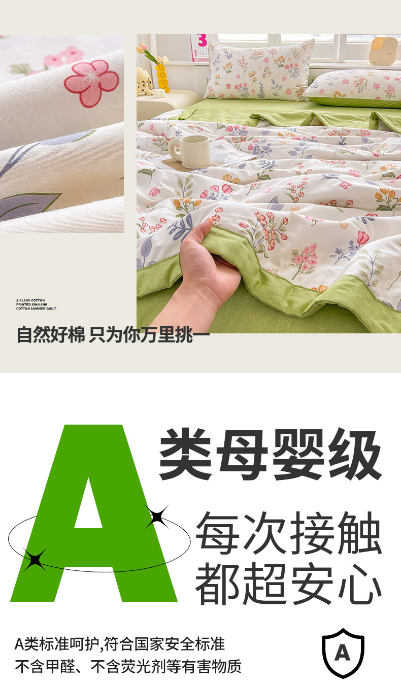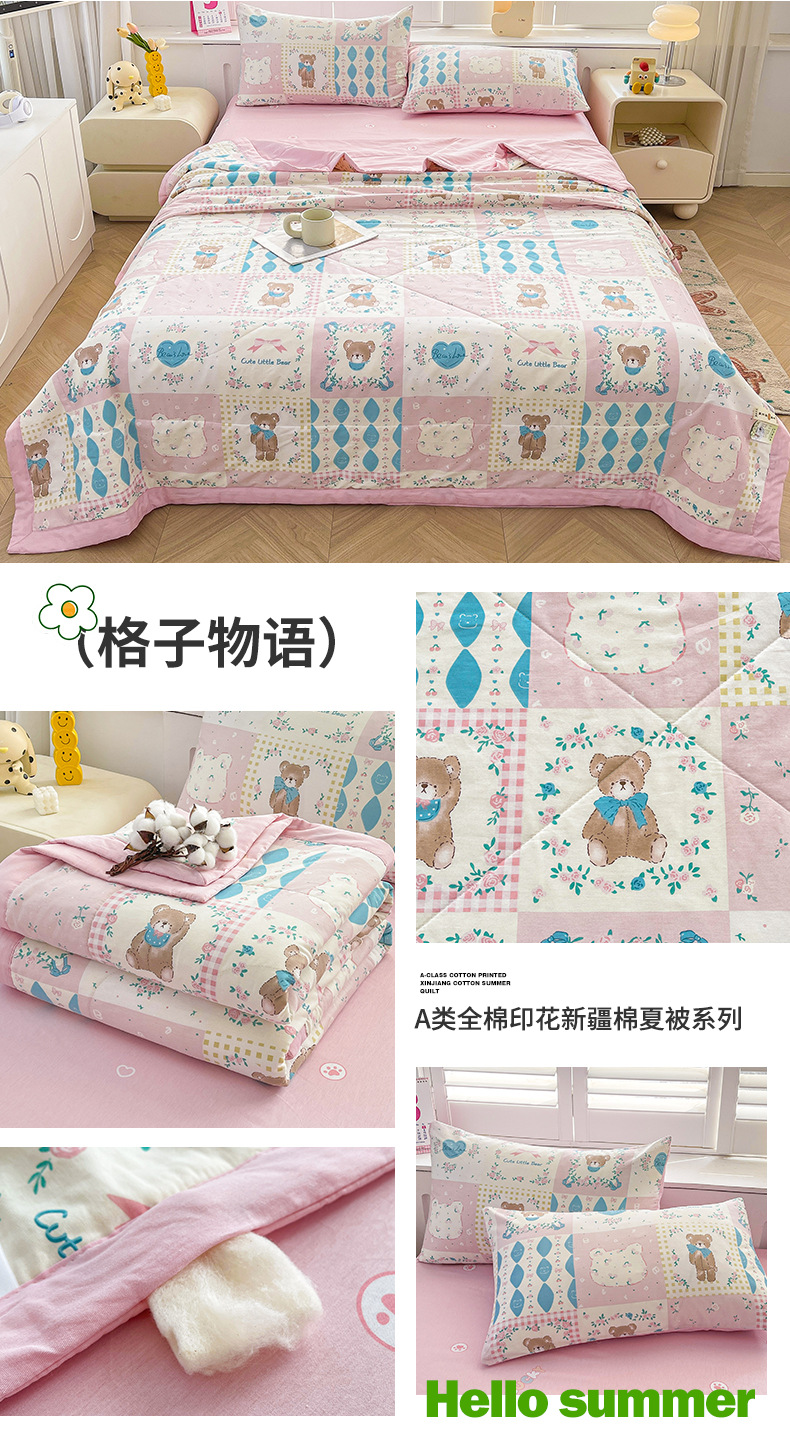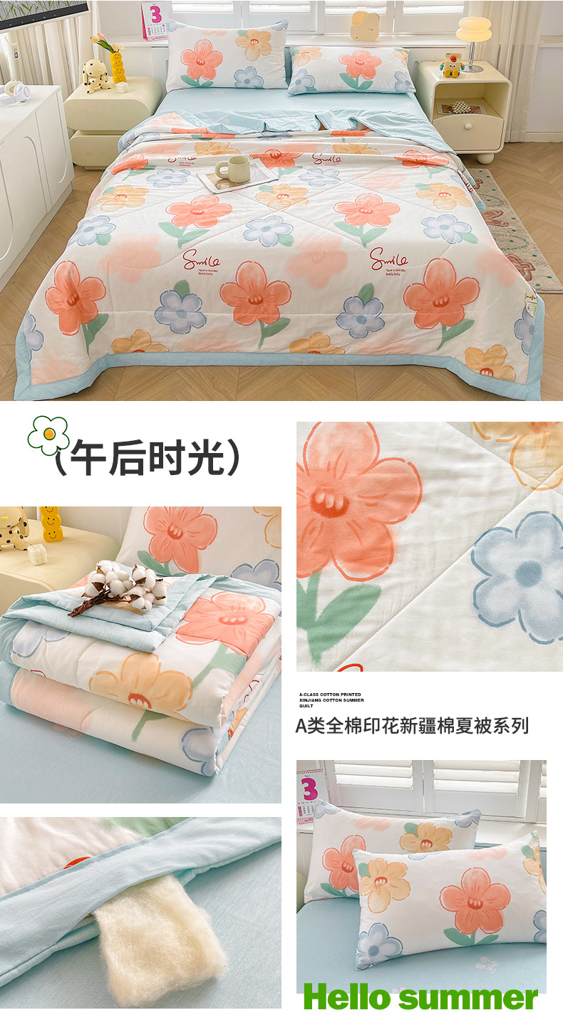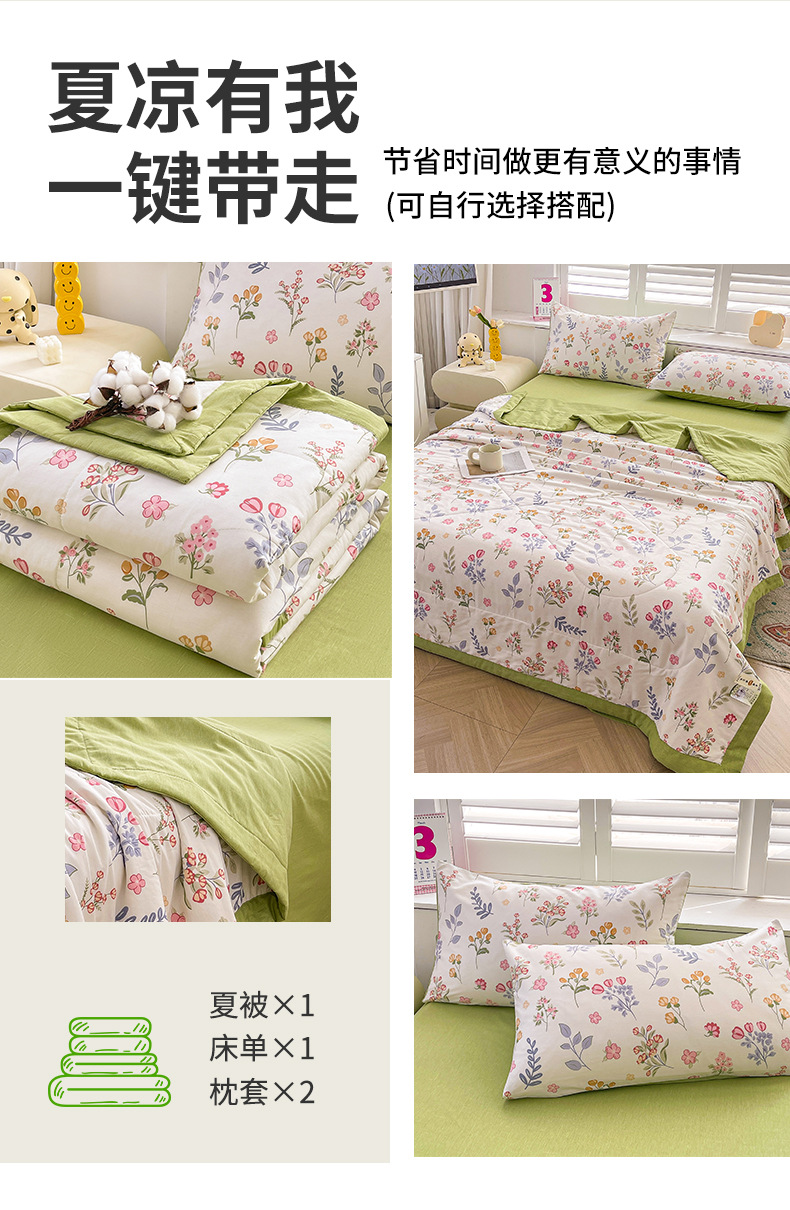 클래스 A 산모 및 유아용 순면 여름 이불 4피스 세트 순면 어린이 에어컨 이불 학생 기숙사 여름 시원한 이불 알몸 수면 싱글 이불