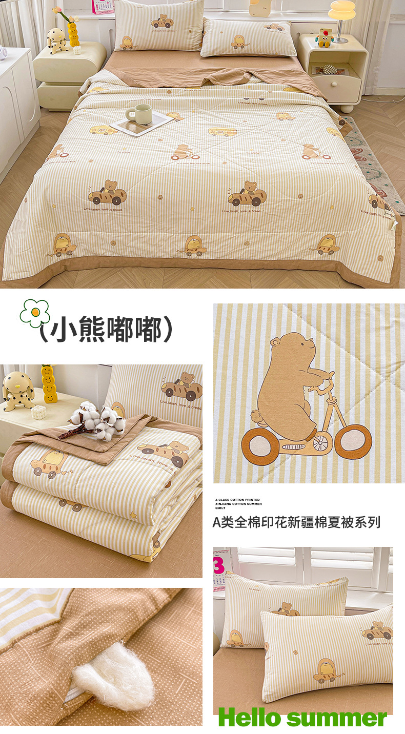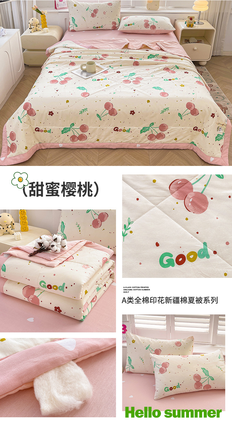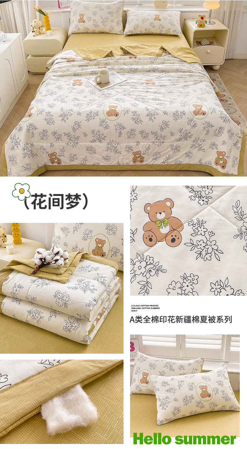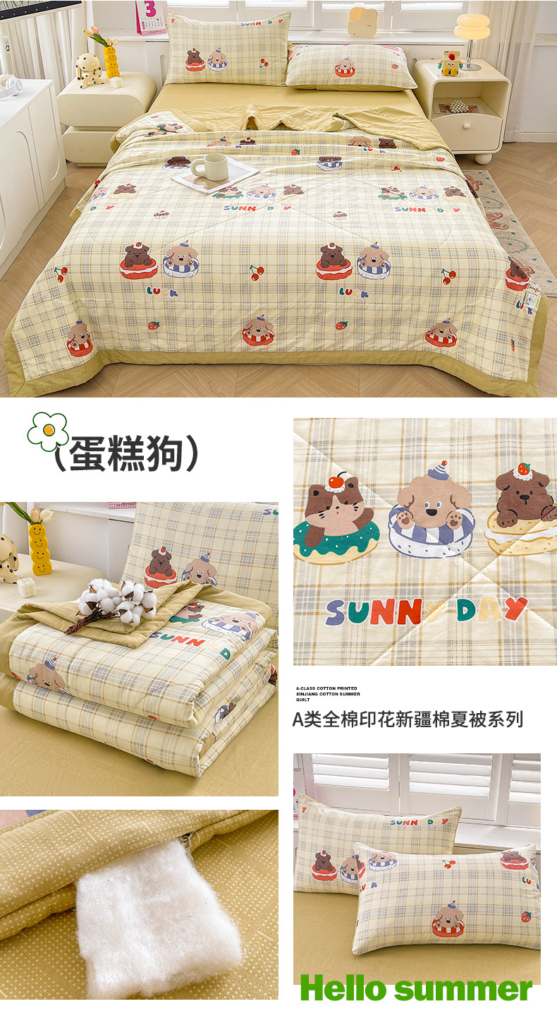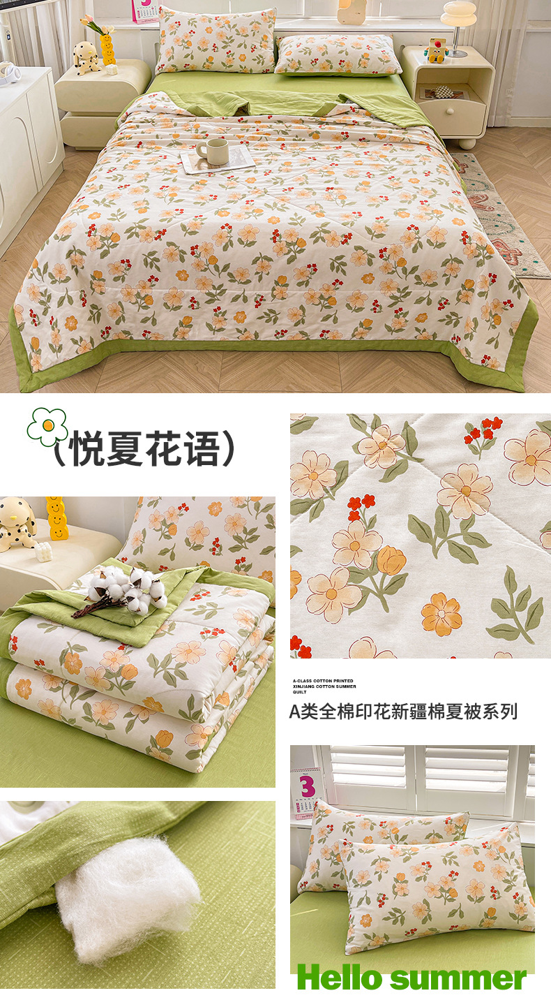 클래스 A 산모 및 유아용 순면 여름 이불 4피스 세트 순면 어린이 에어컨 이불 학생 기숙사 여름 시원한 이불 알몸 수면 싱글 이불