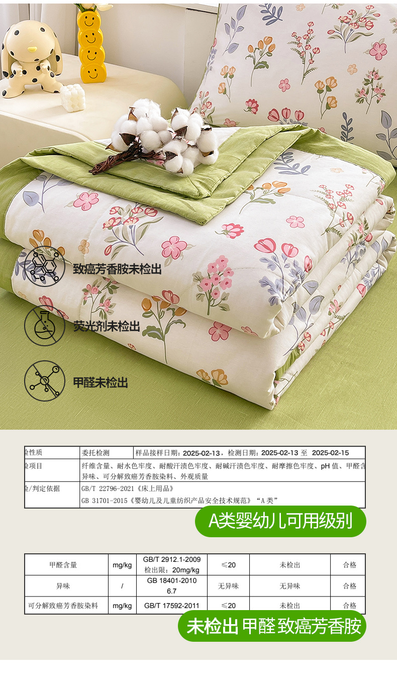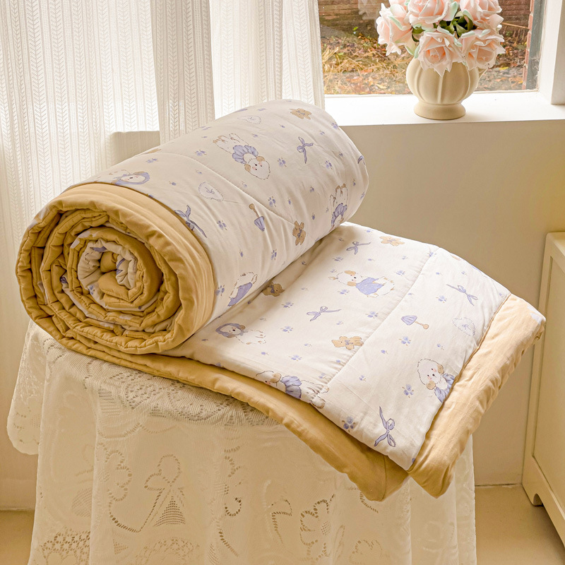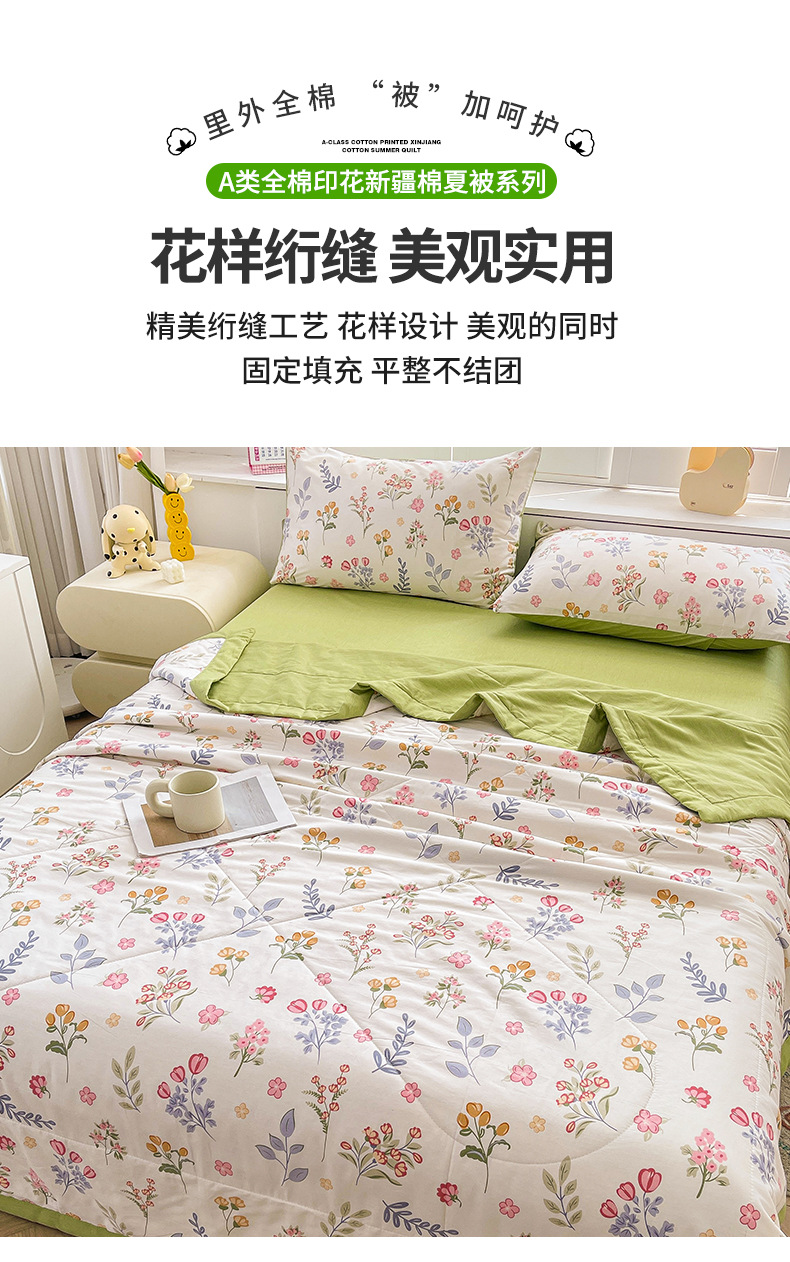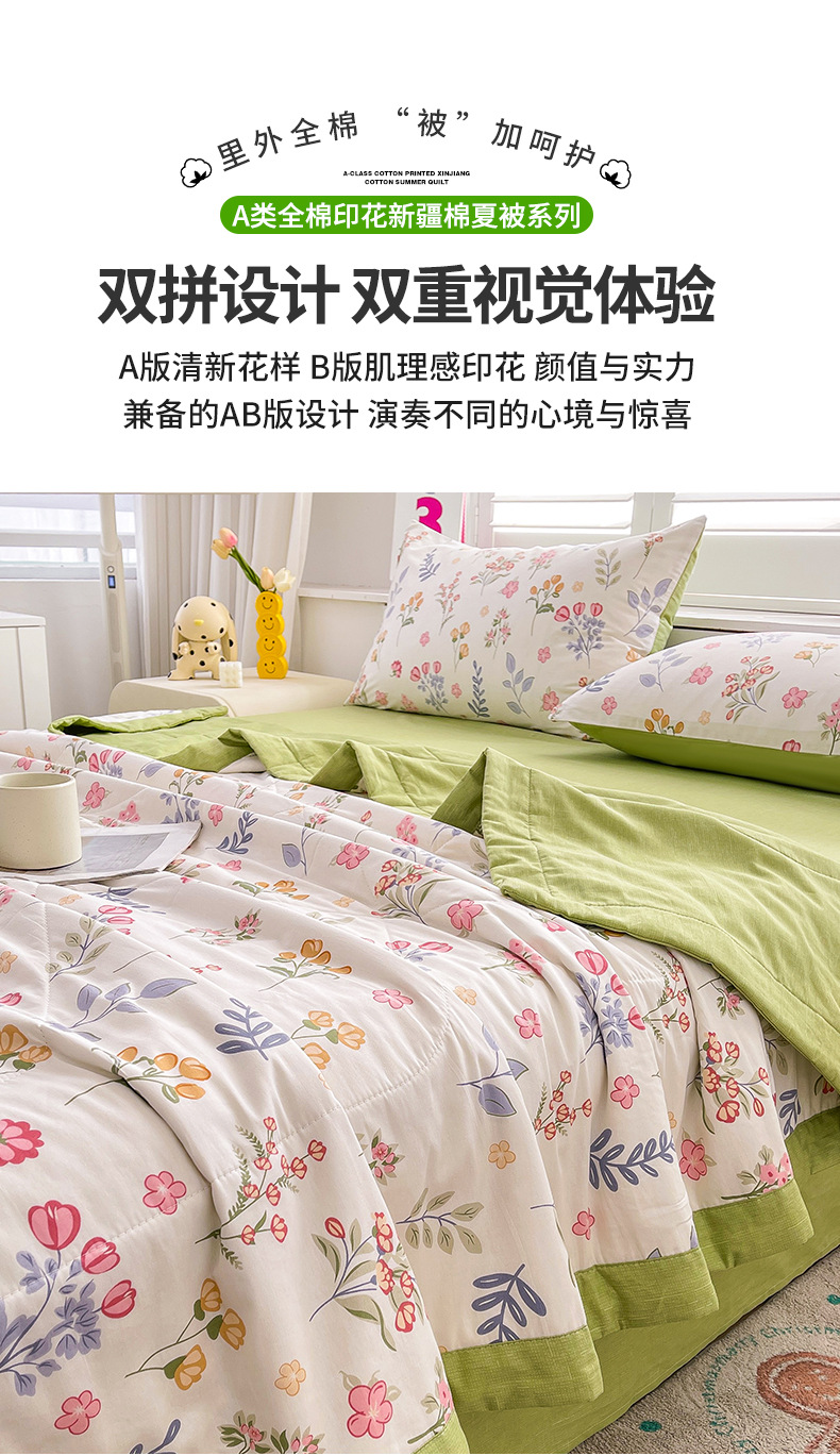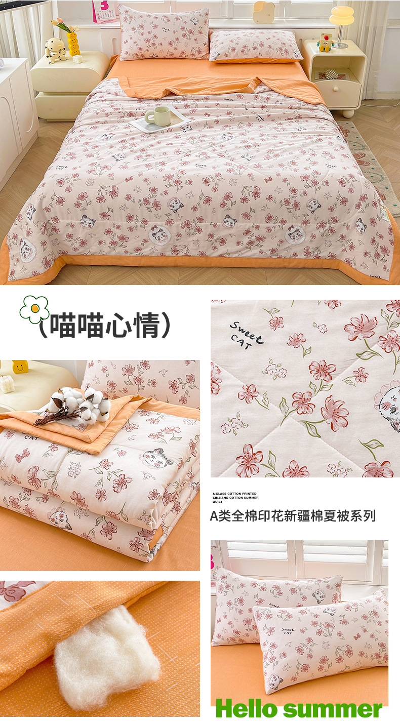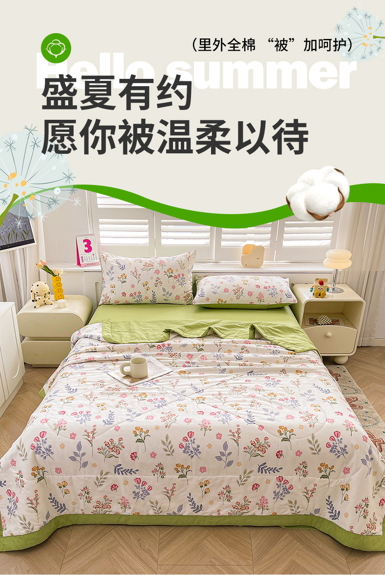 클래스 A 산모 및 유아용 순면 여름 이불 4피스 세트 순면 어린이 에어컨 이불 학생 기숙사 여름 시원한 이불 알몸 수면 싱글 이불
