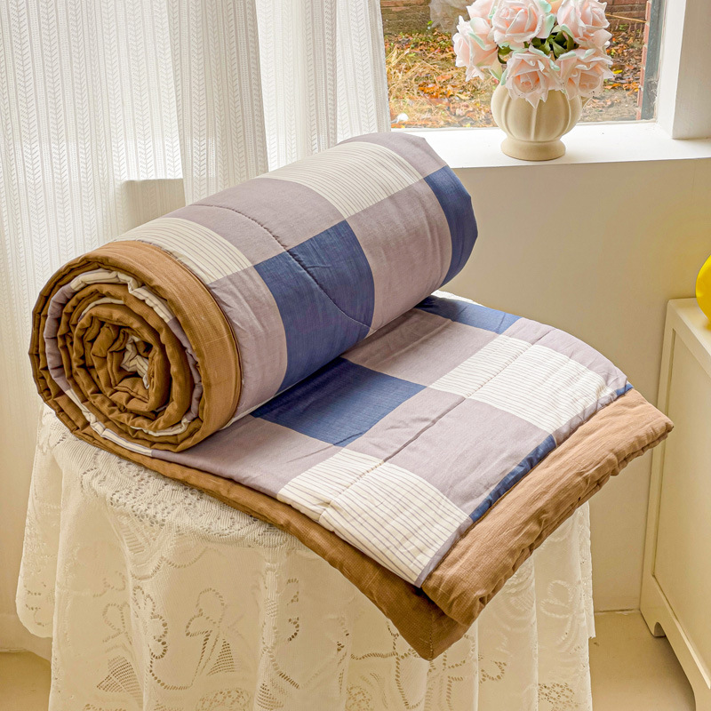 • A급 면 - 체크무늬 공간 [피부친화적 - 알몸으로 잘 수 있음]
