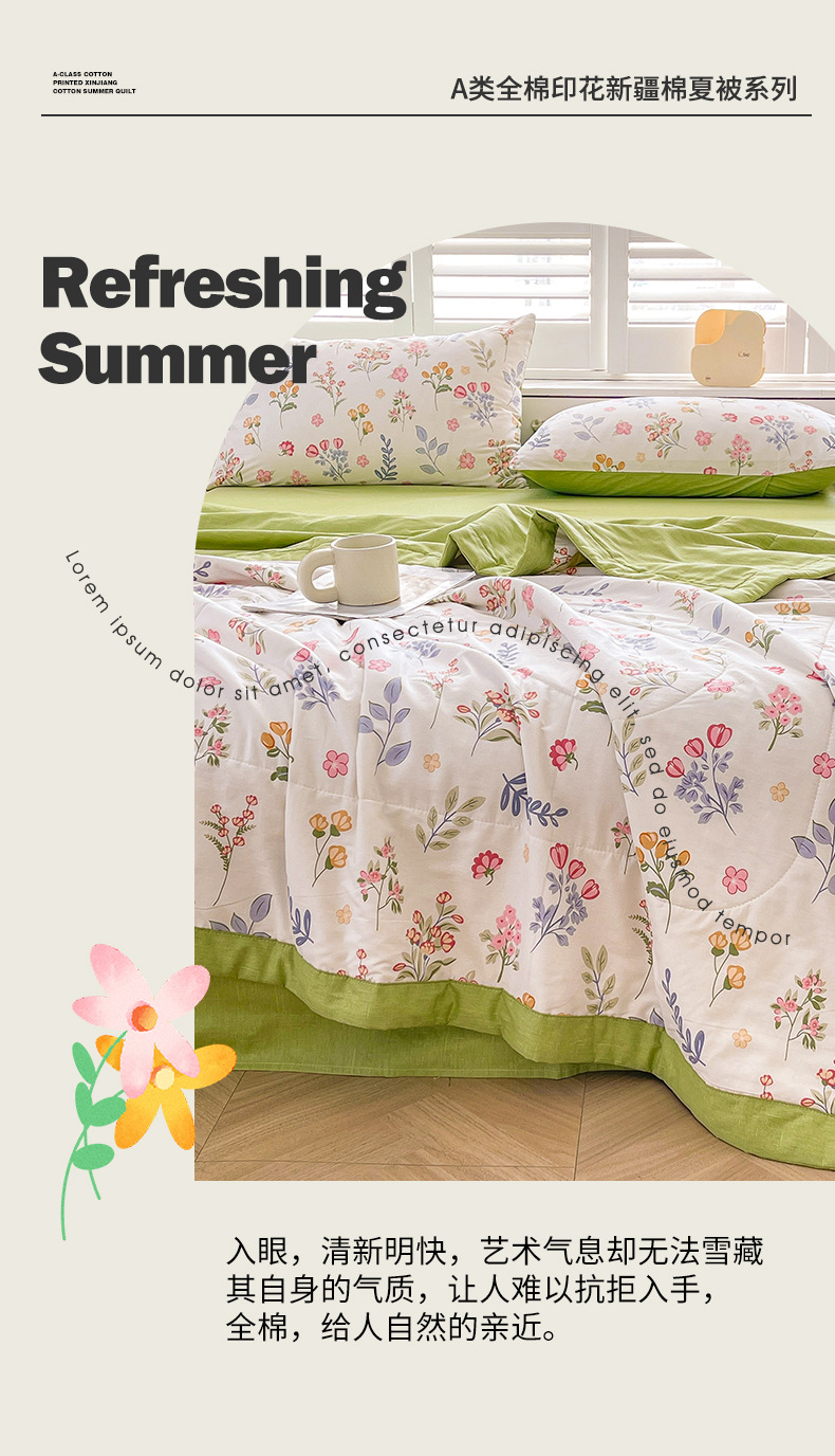 • 1.5m 여름이불 3종세트 [여름이불 1.5m x 2.0m 시트 1.8m x 2.3m 베갯잇 48x74cm 1개] [검사완료]