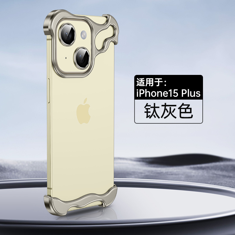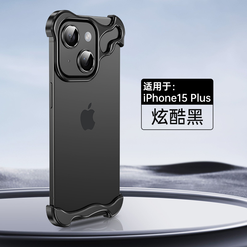 애플 16pro 베어 느낌 전화 케이스 도매 특수 모양의 베어 메탈 프레임이없는 15promax 메탈 4 코너 패드
