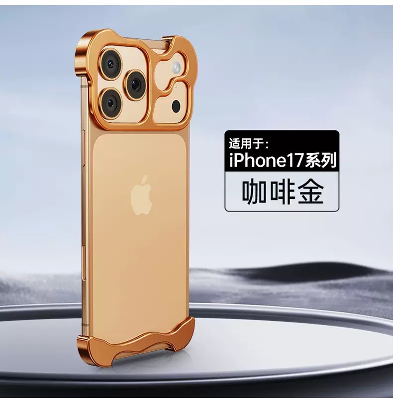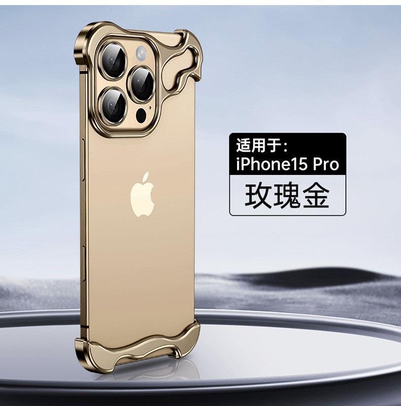 애플 16pro 베어 느낌 전화 케이스 도매 특수 모양의 베어 메탈 프레임이없는 15promax 메탈 4 코너 패드스토어 가기