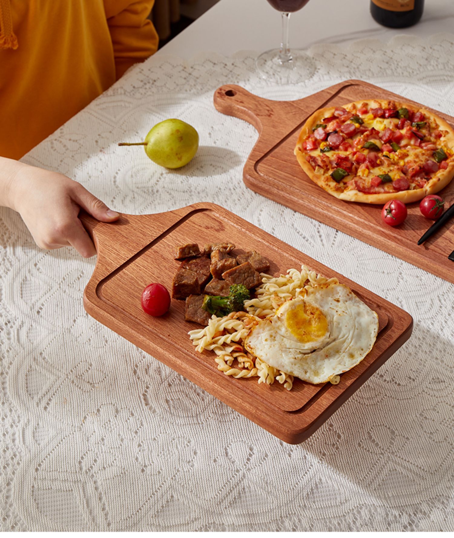 원목 스테이크 디너 플레이트 일본식 나무 피자 플레이트 스테이크 나무 접시 식기 나무 접시 나무 트레이 서양 음식 디스플레이 B&