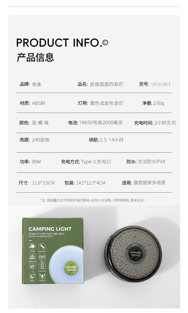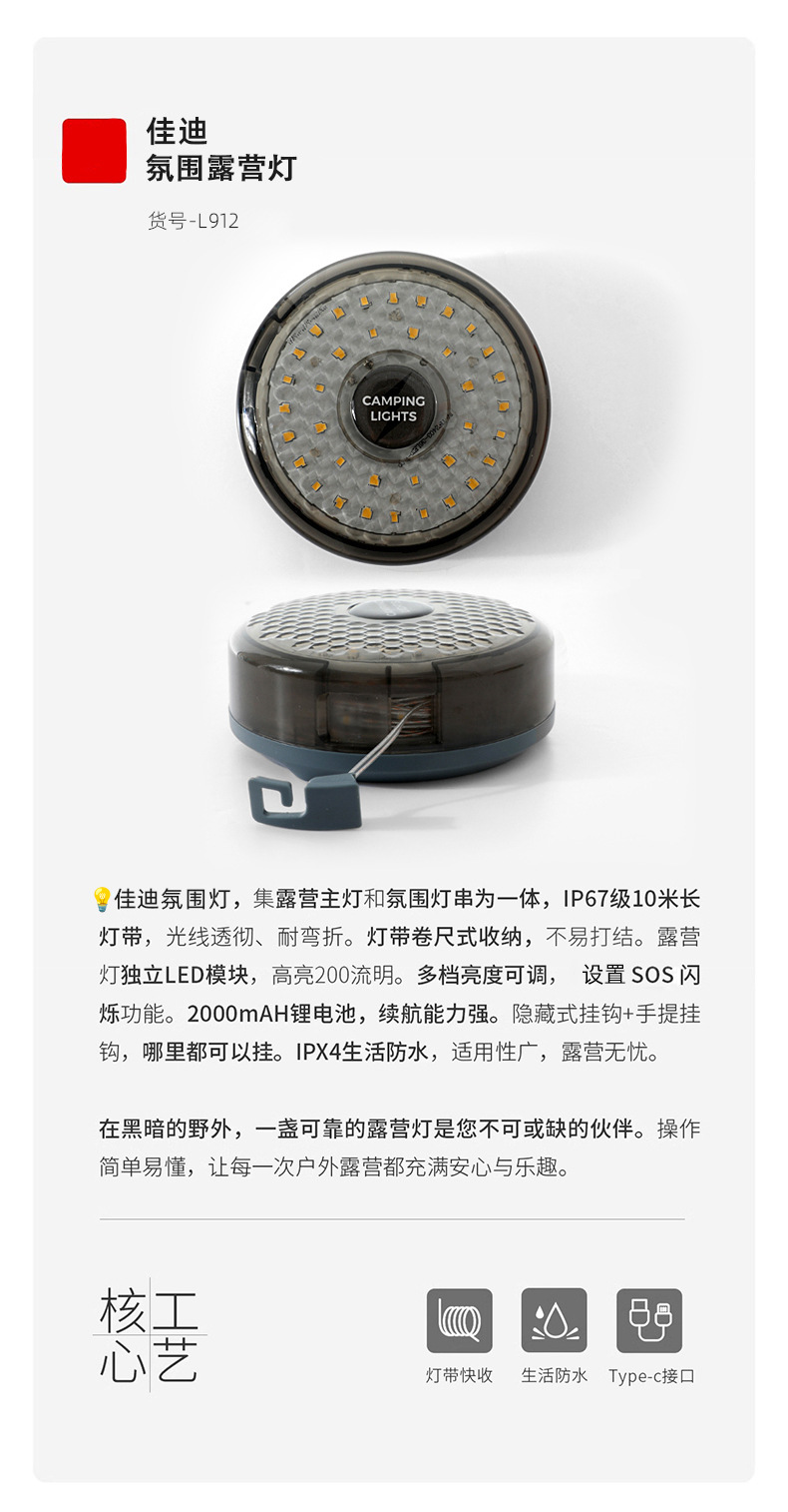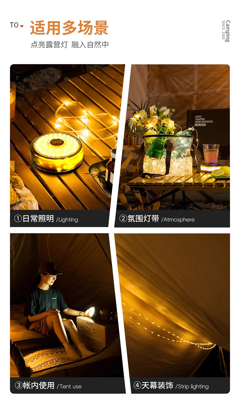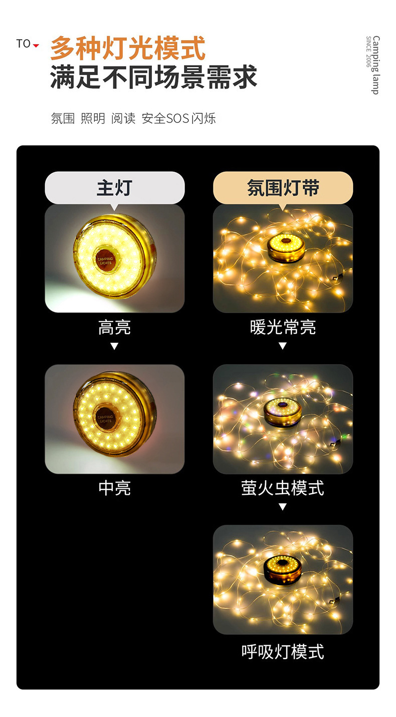 야외 분위기 캠핑 조명 텐트 비상 분위기 조명 조명 휴대용 줄자 조명 방수 보관 캠핑 조명 문자열스토어 가기