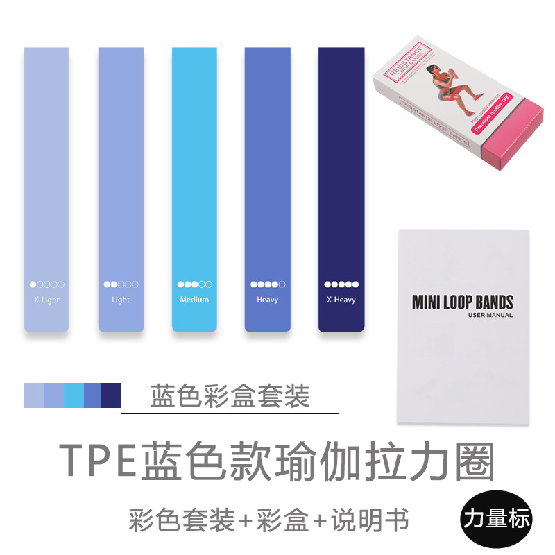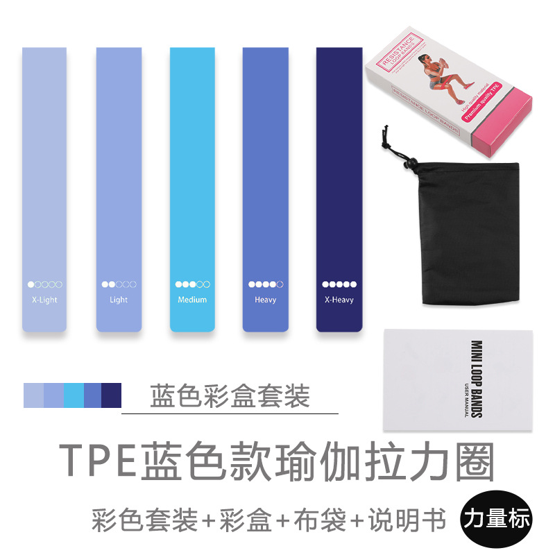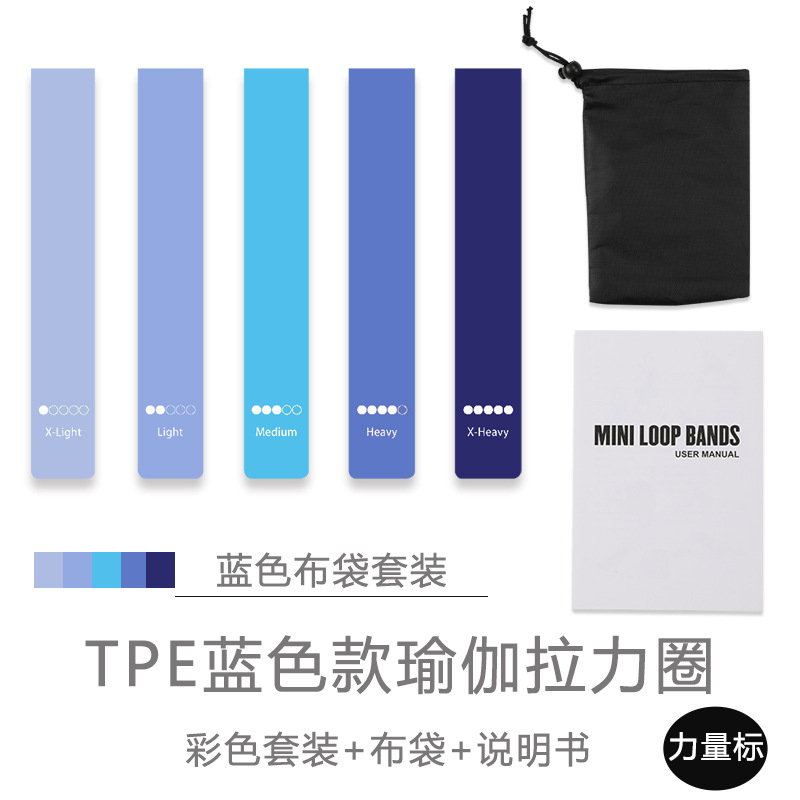 • 【TPE 파워 밴드】 블루 5종 세트 + 사용 설명서 + 파우치