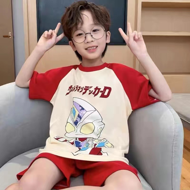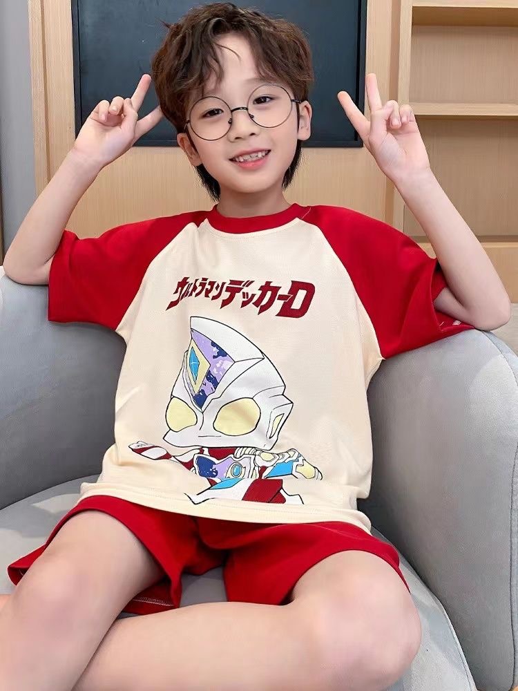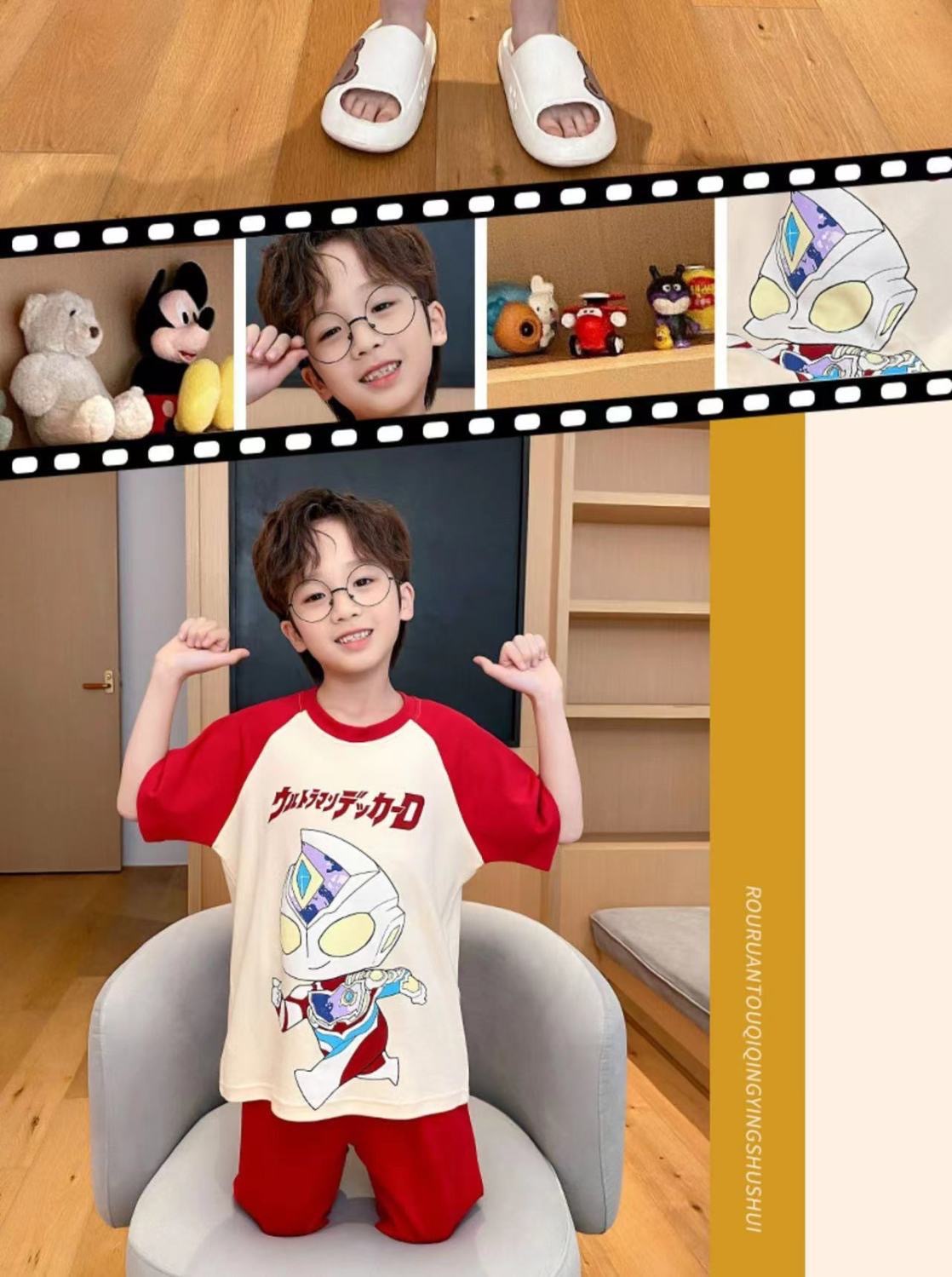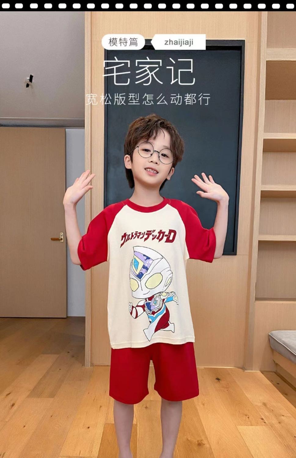 아동용 잠옷, 여름 남아용 중대형 아동용 에어컨 의류, 반팔 반바지, 만화 울트라맨 여름 가정복 세트스토어 가기