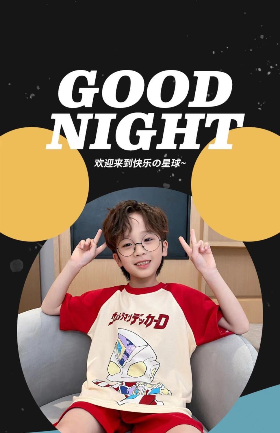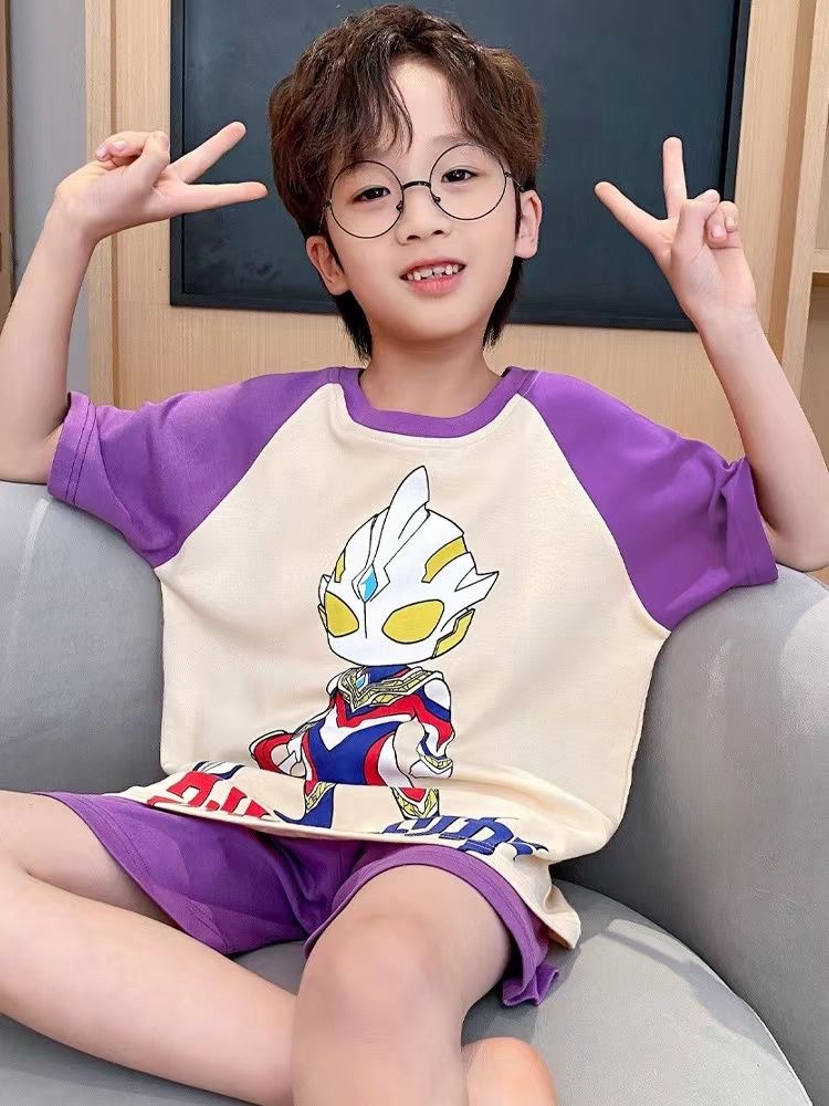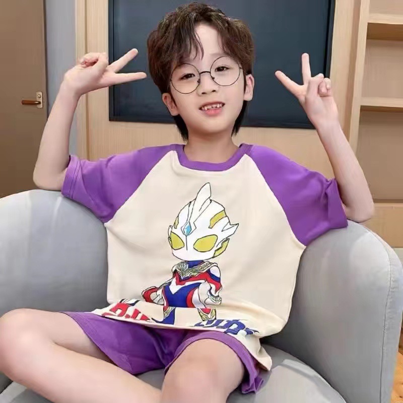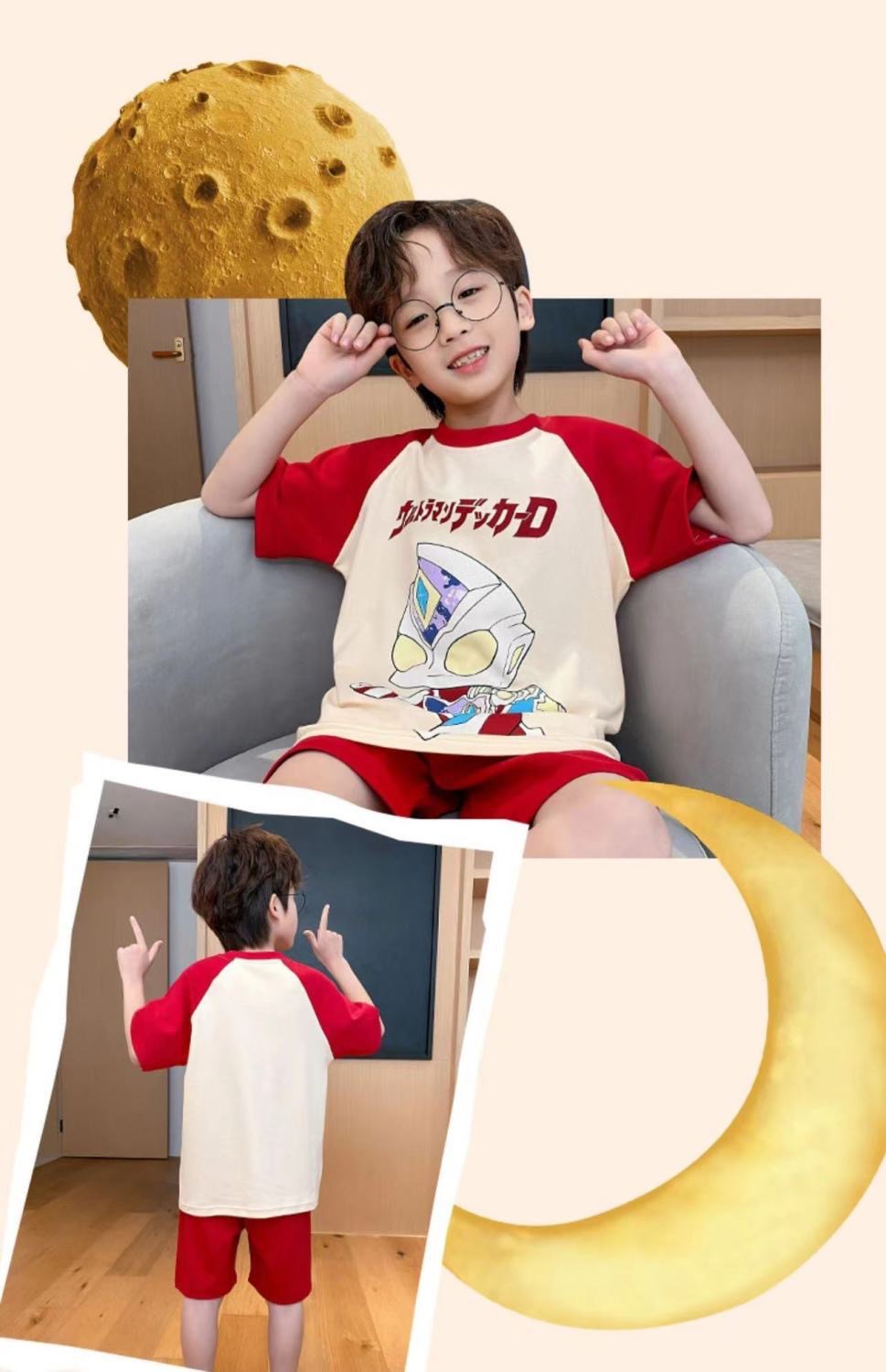 아동용 잠옷, 여름 남아용 중대형 아동용 에어컨 의류, 반팔 반바지, 만화 울트라맨 여름 가정복 세트스토어 가기