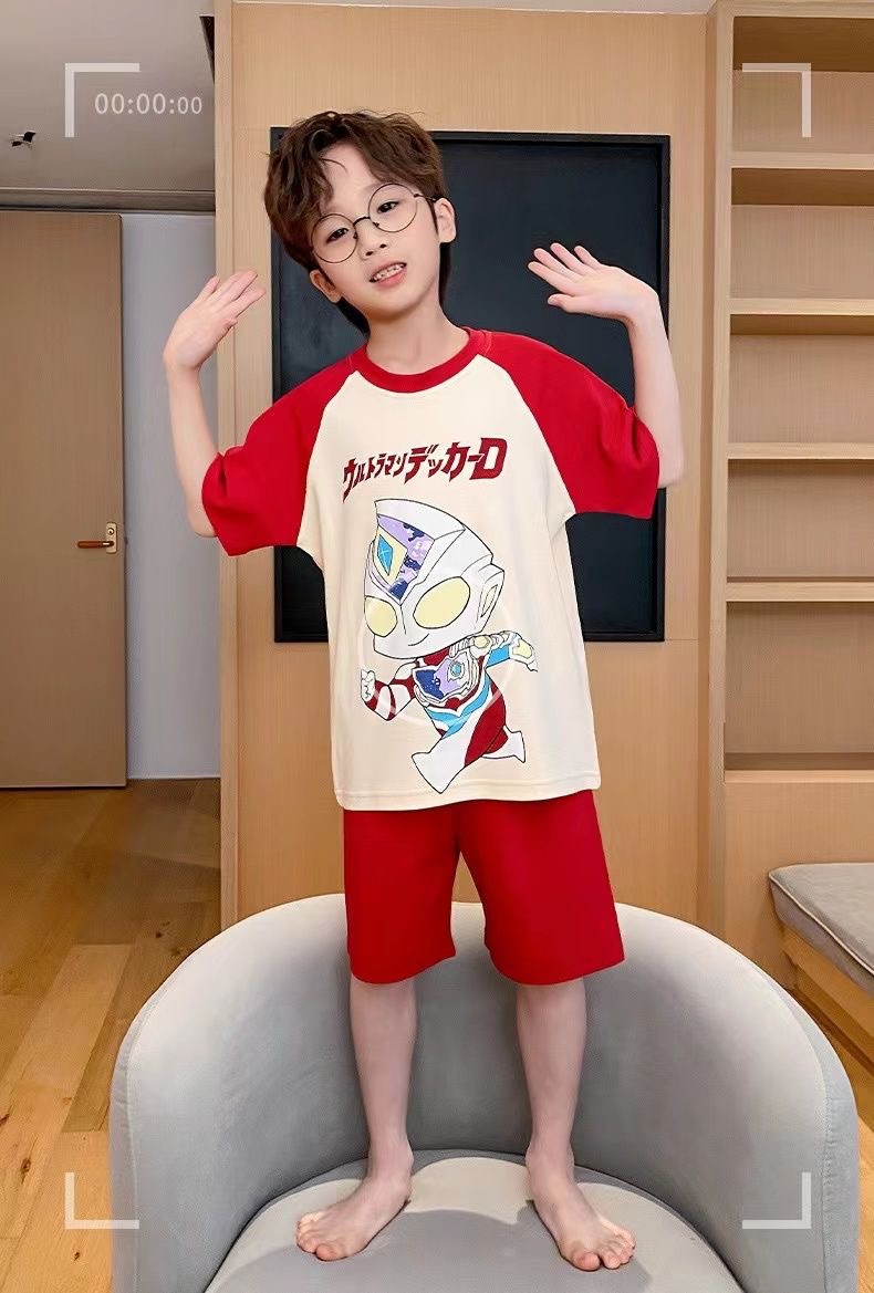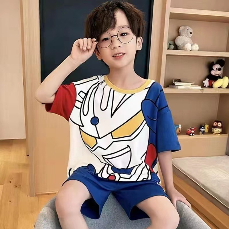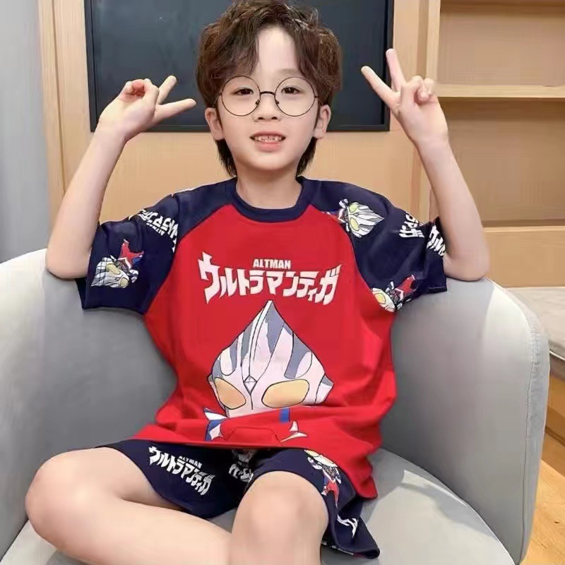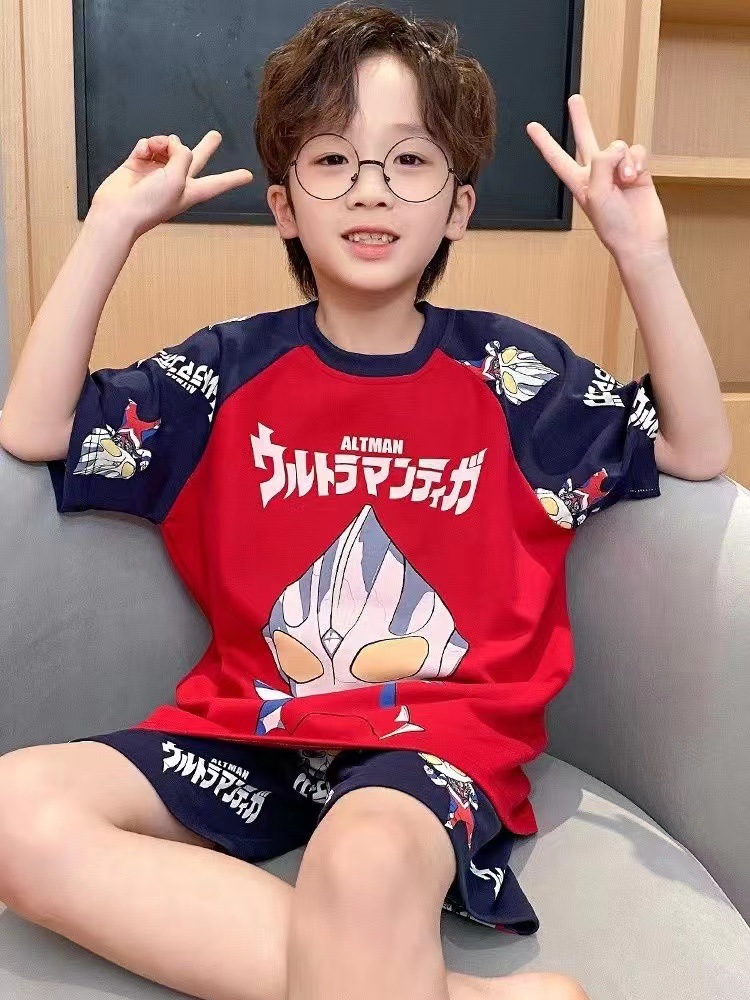 아동용 잠옷, 여름 남아용 중대형 아동용 에어컨 의류, 반팔 반바지, 만화 울트라맨 여름 가정복 세트