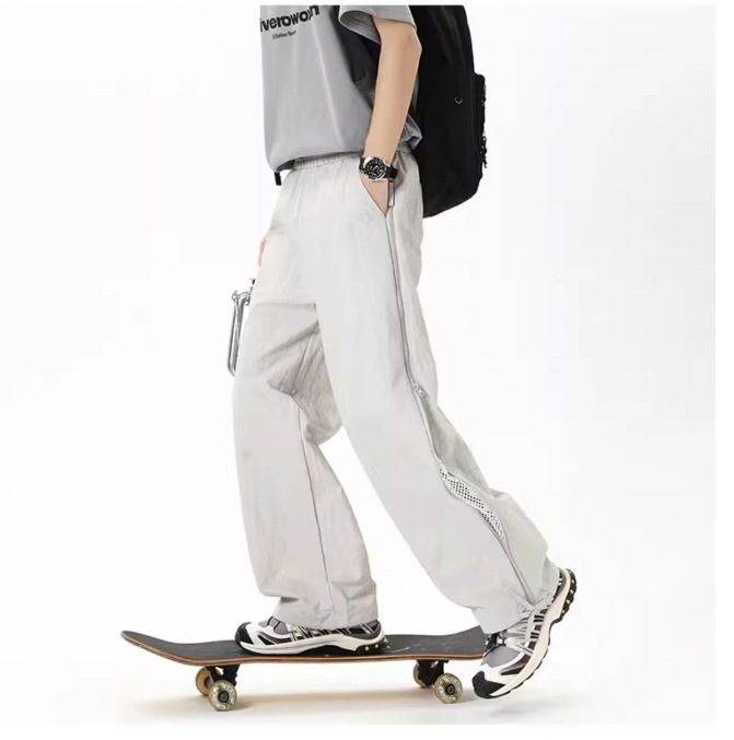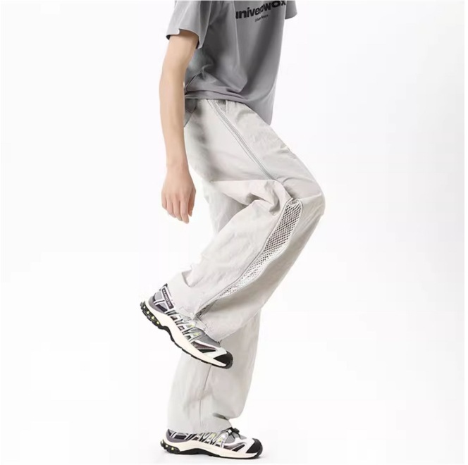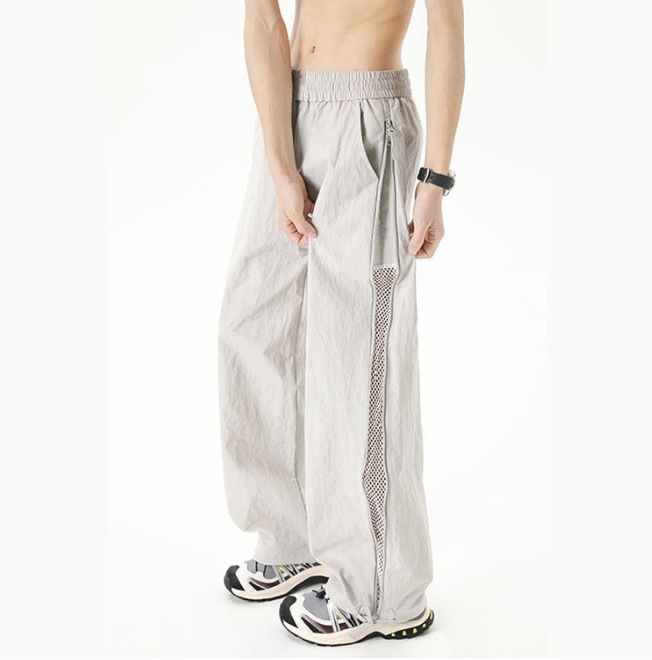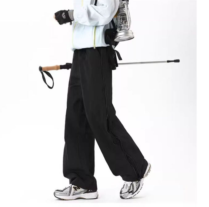 미국 트렌디 브랜드 레트로 하이 스트리트 아이스 실크 속건성 방수 지퍼 공수 바지 남성용 조절 가능한 레깅스 캐주얼 충전 바지스토어 가기
