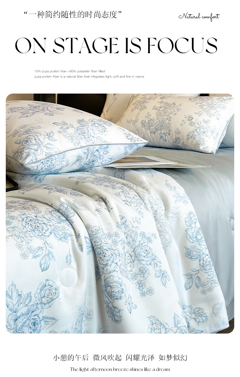 클래스 A 시원한 얼음 실크 여름 시원한 이불 4피스 에어컨 이불 2025 새로운 기계 세탁 가능한 싱글 및 더블 학생 기숙사스토어 가기