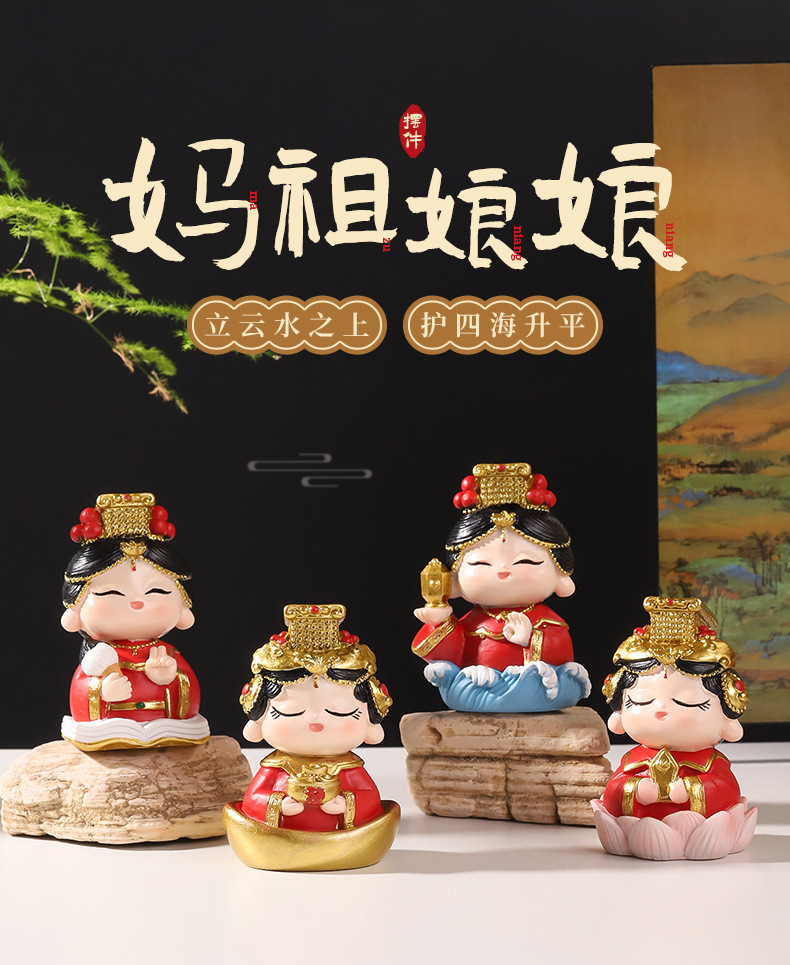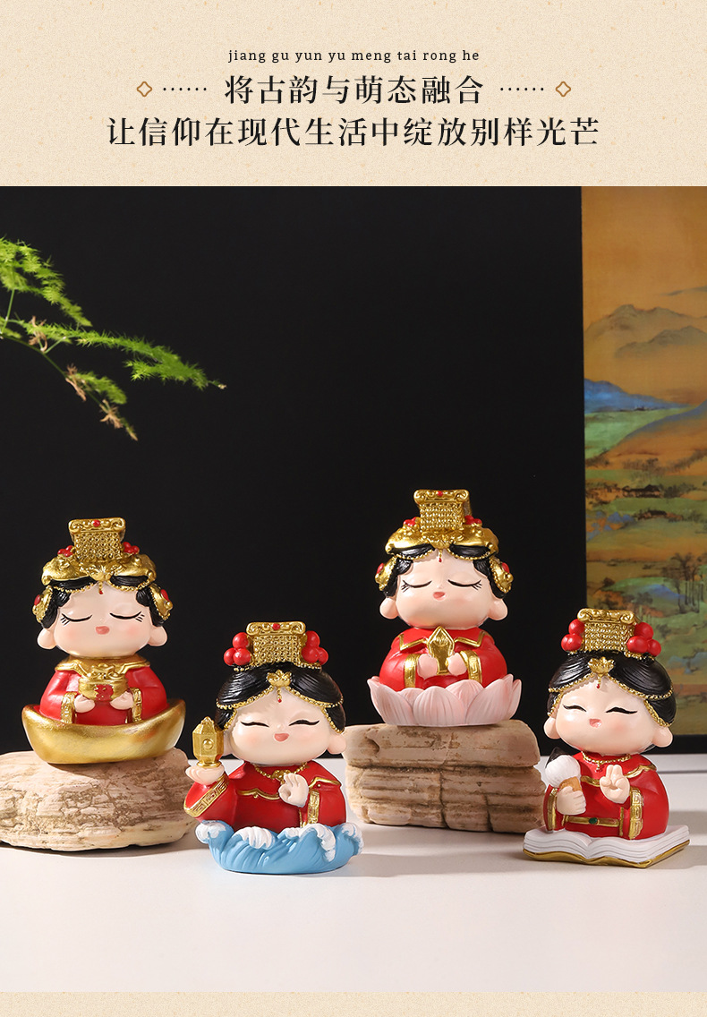 중국식 마츠 황후 수지 작은 장식품 Wenchuang 시장 공예품 선물 함께 선물 관광 기념품 선물