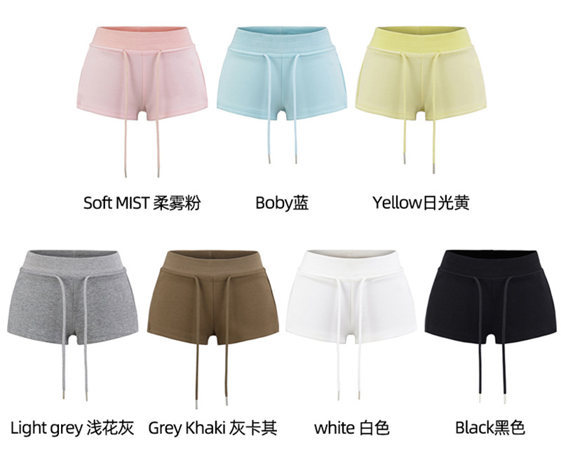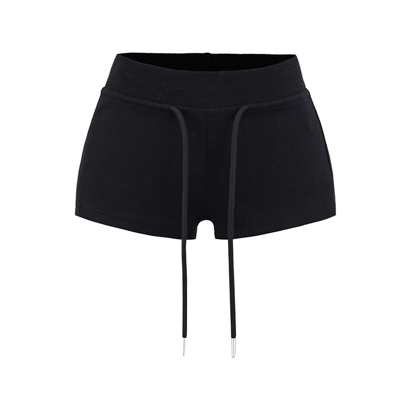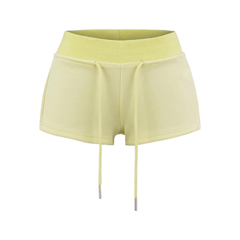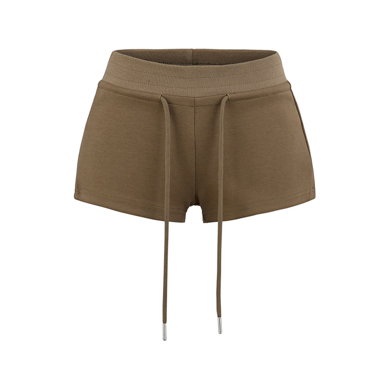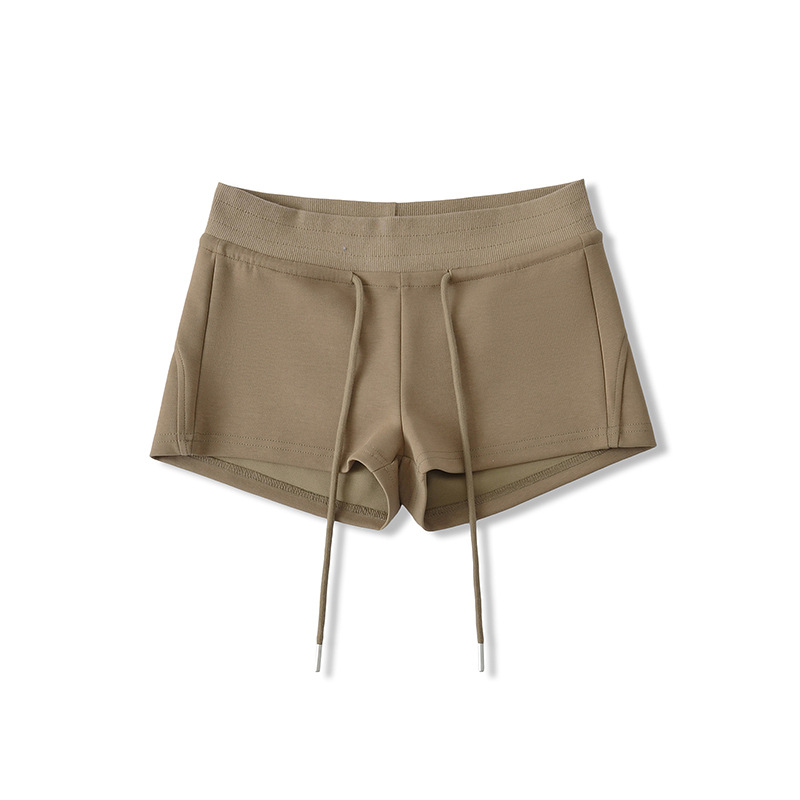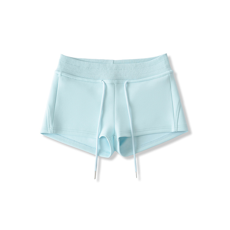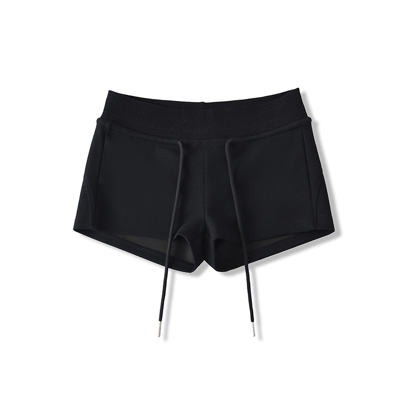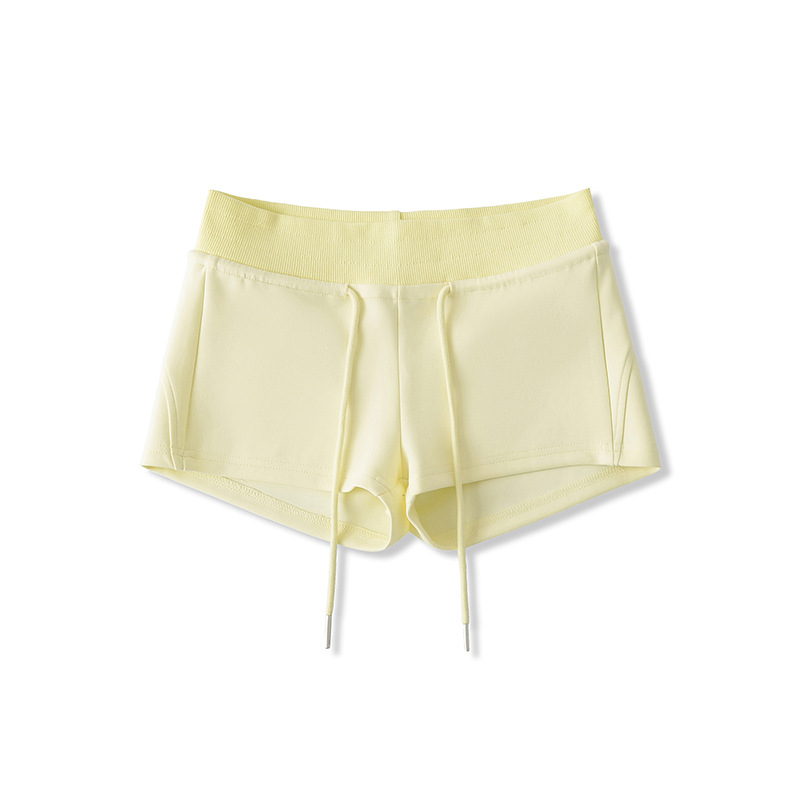 아메리칸 스타일 레트로 핫 소녀 스타일 낮은 허리 드로스트링 요가 스포츠 짧은 운동복 여성용 긴 다리 짧은 외부 반바지