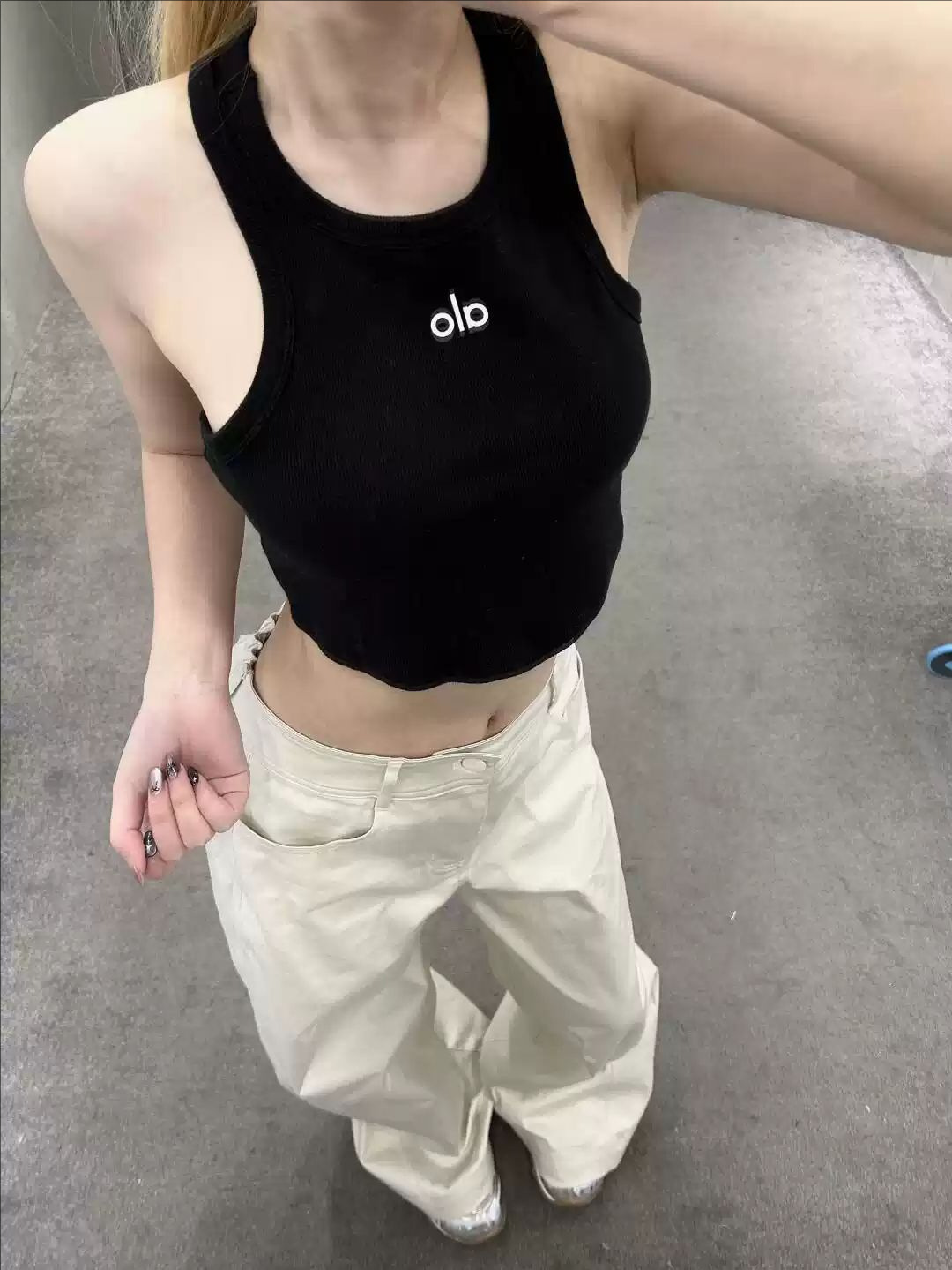 재고 알로 여름 새로운 민소매 I 자형 조끼 슬링 캐주얼 스포츠 슬림 핏 슬리밍 쇼트 스레드 탑스토어 가기