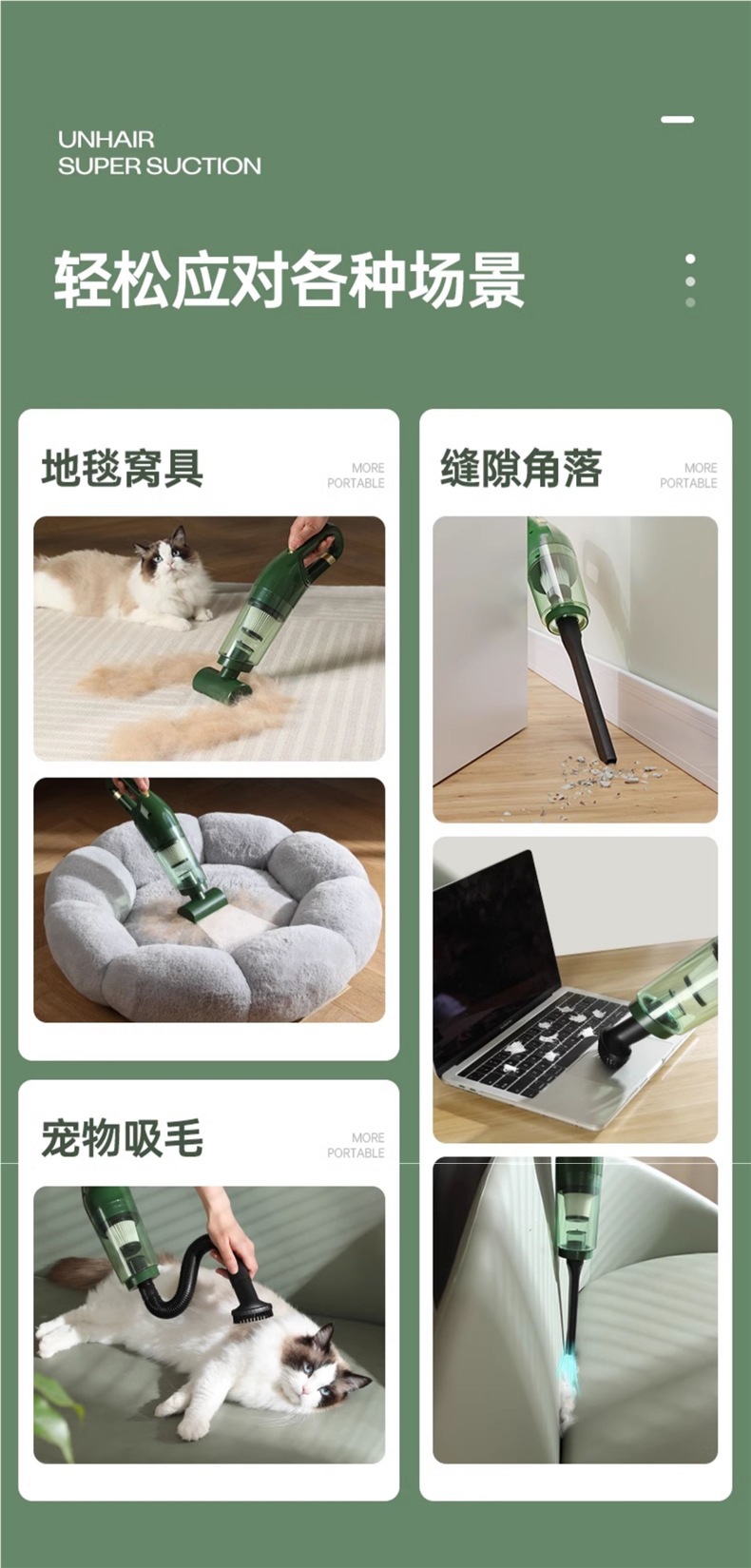 • 업그레이드된 허리케인 고양이 털 흡입 - 강력한 흡입 무선 충전 모델
