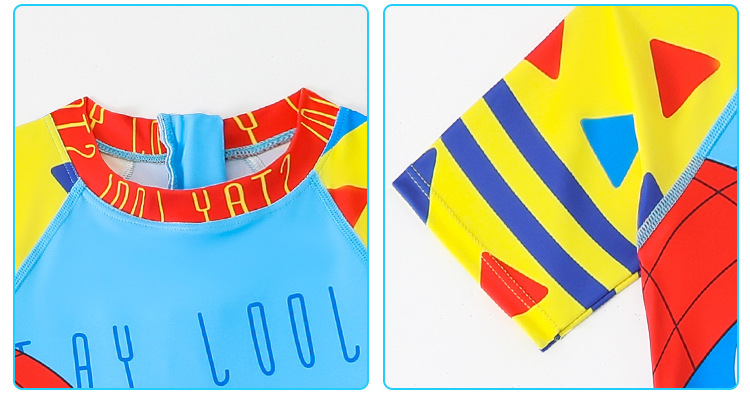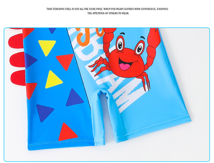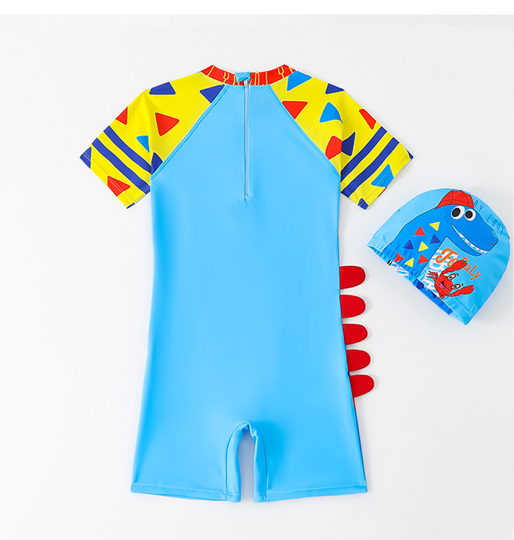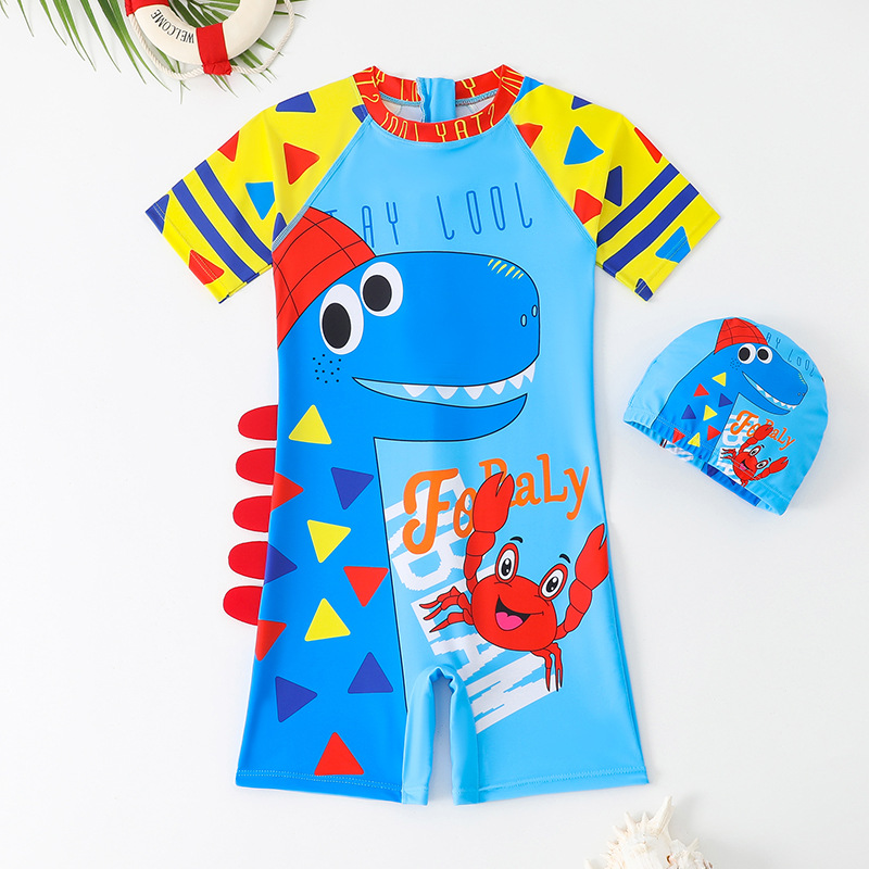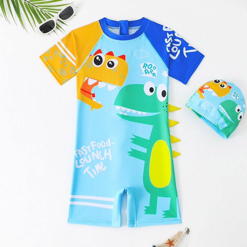 새로운 어린이 수영복 귀여운 만화 소년 소형, 중형 및 대형 어린이 수영복 아기 원피스 수영복과 모자 세트