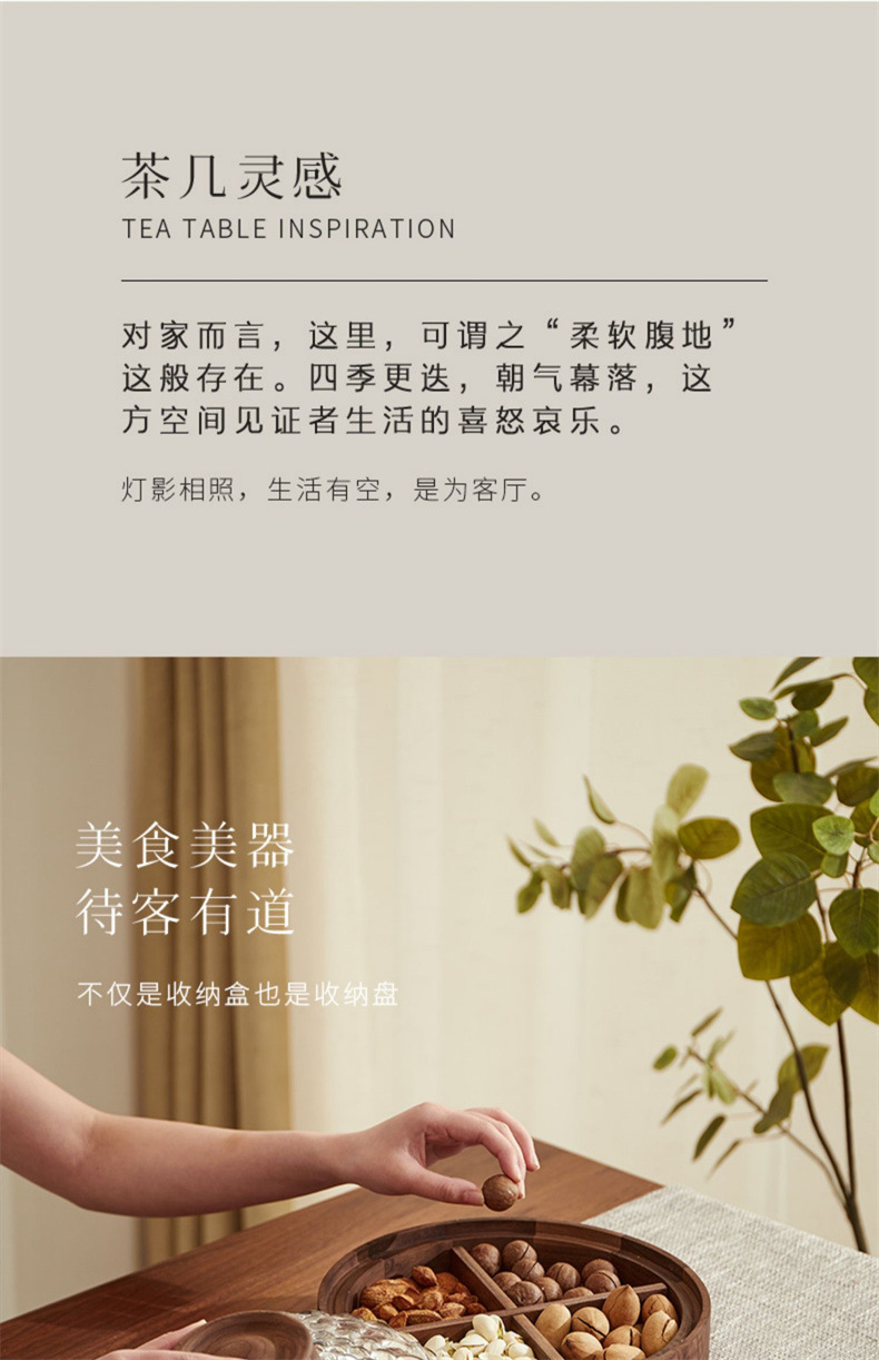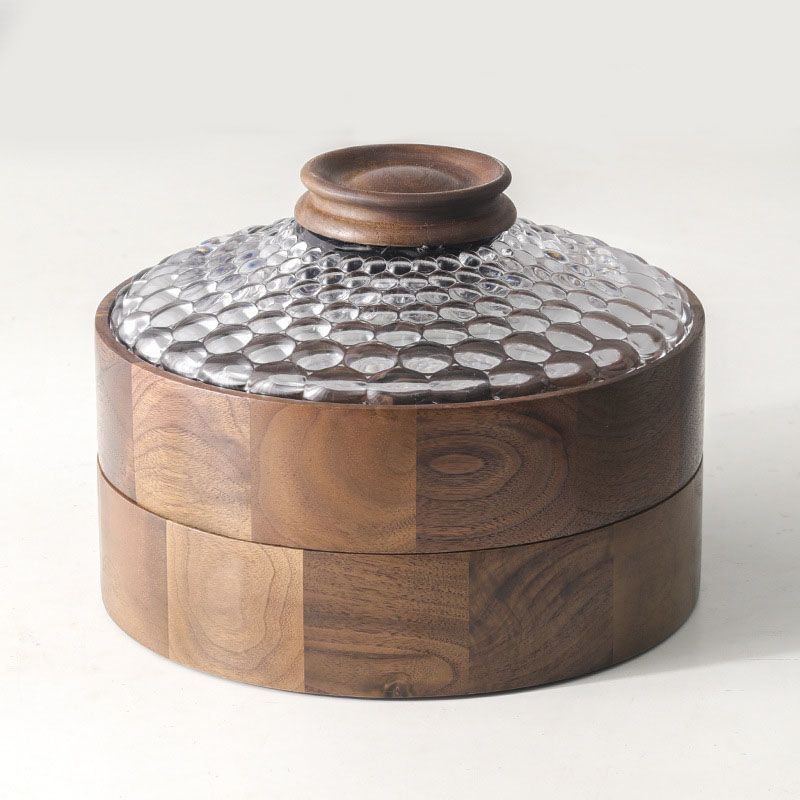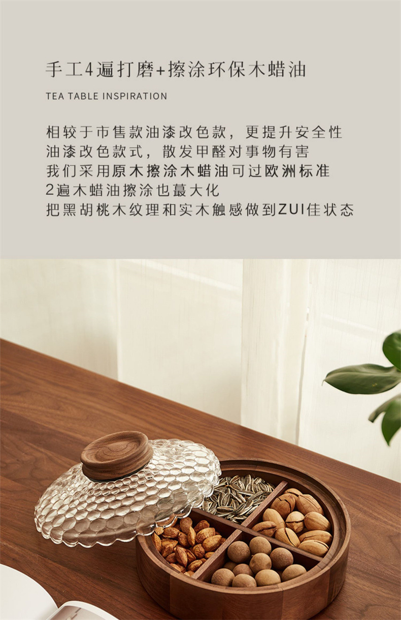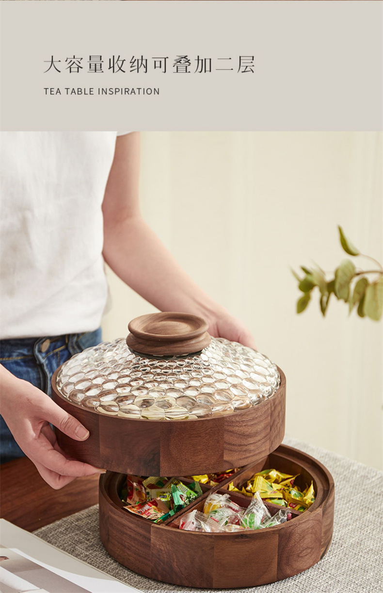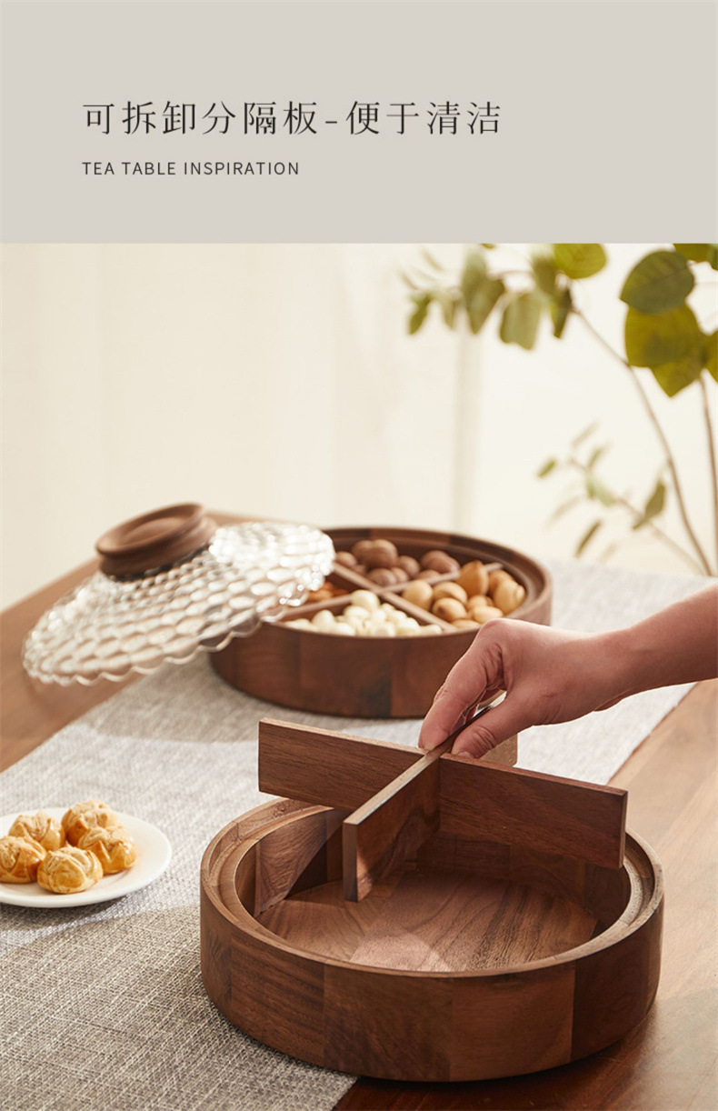 단단한 나무 말린 과일 상자, 과일 접시, 크리스탈 유리 뚜껑, 원형 선물 상자, 새로운 중국식 환대 및 결혼식 보관 상자스토어 가기