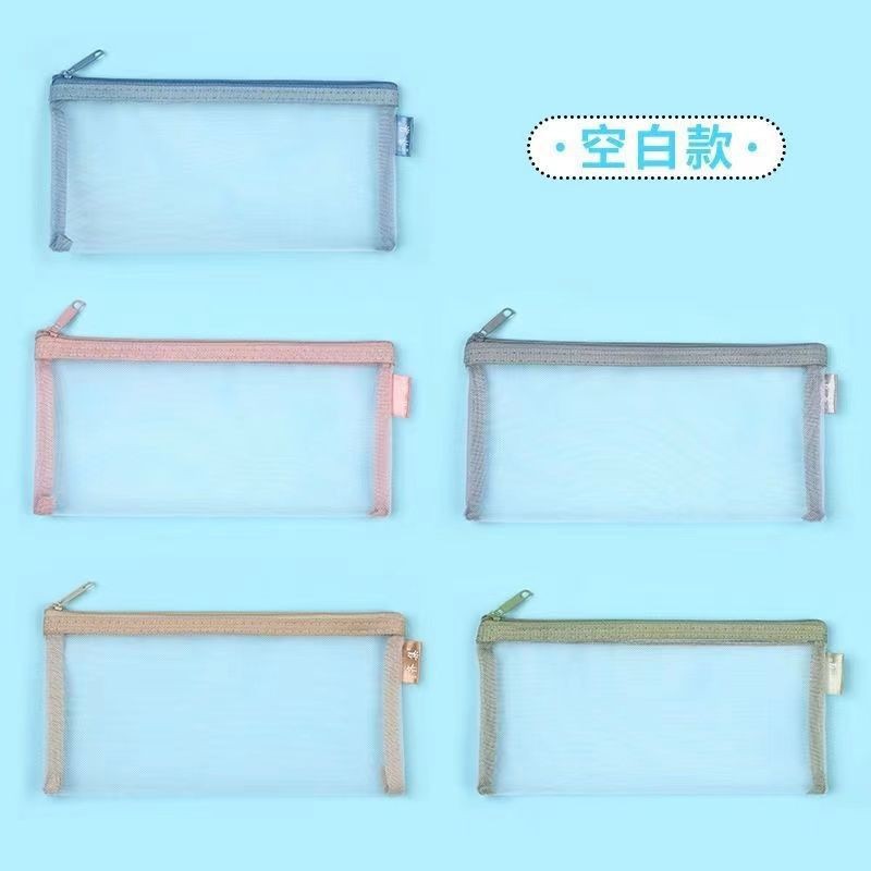한국어 간단한 투명 메쉬 연필 가방 보관 가방 학생 시험 특수 휴대용 연필 가방 대용량 문구 가방