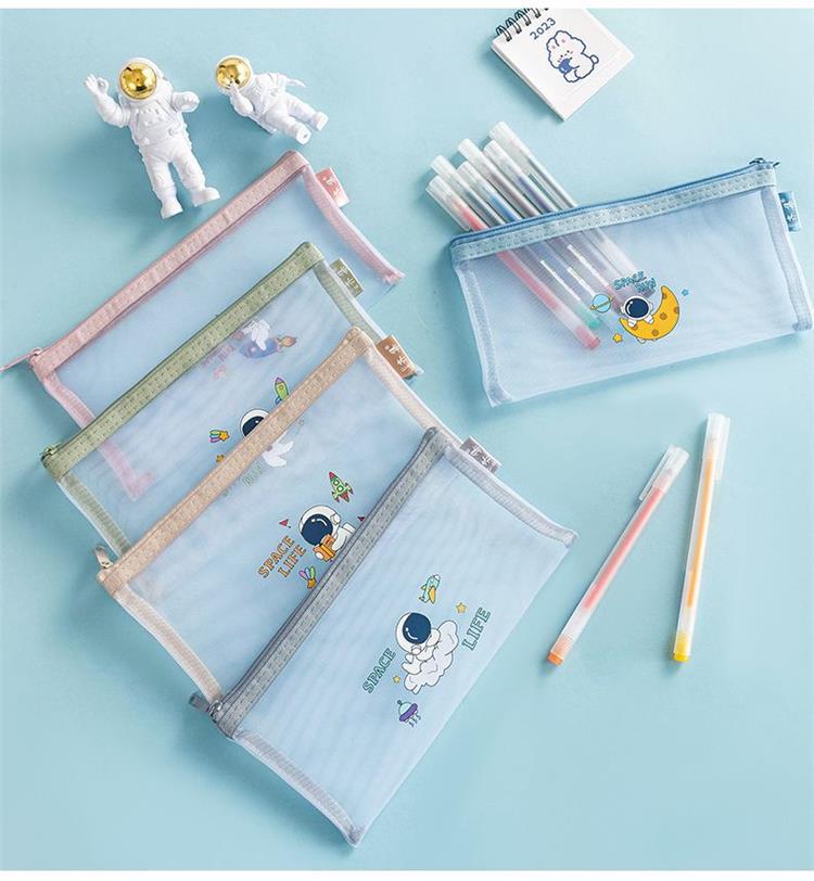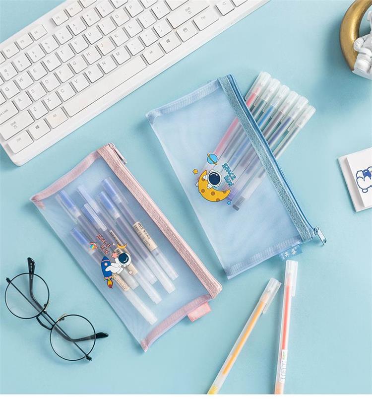 한국어 간단한 투명 메쉬 연필 가방 보관 가방 학생 시험 특수 휴대용 연필 가방 대용량 문구 가방스토어 가기