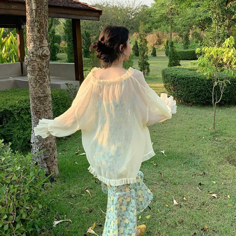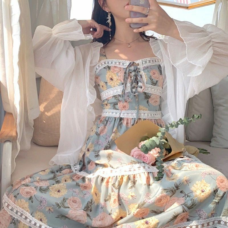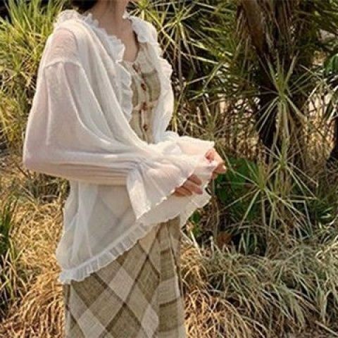 여성을위한 얼음 실크 자외선 차단 의류 2025 새로운 스타일 서스펜더 스커트와 숄 작은 코트 태양 보호 쉬폰 카디건 유행스토어 가기