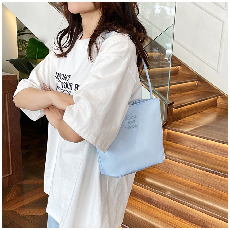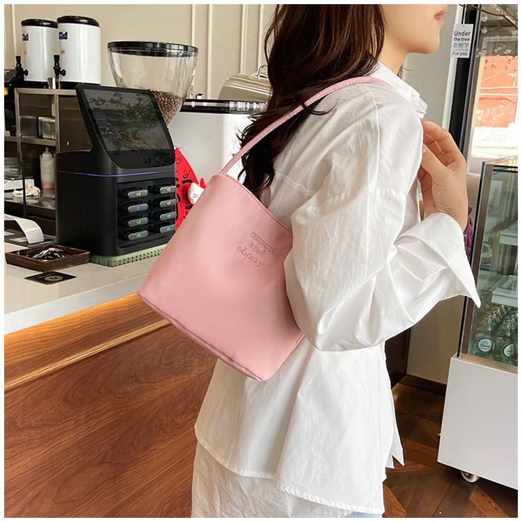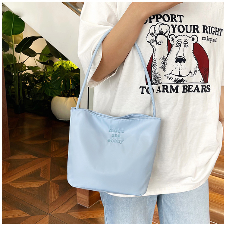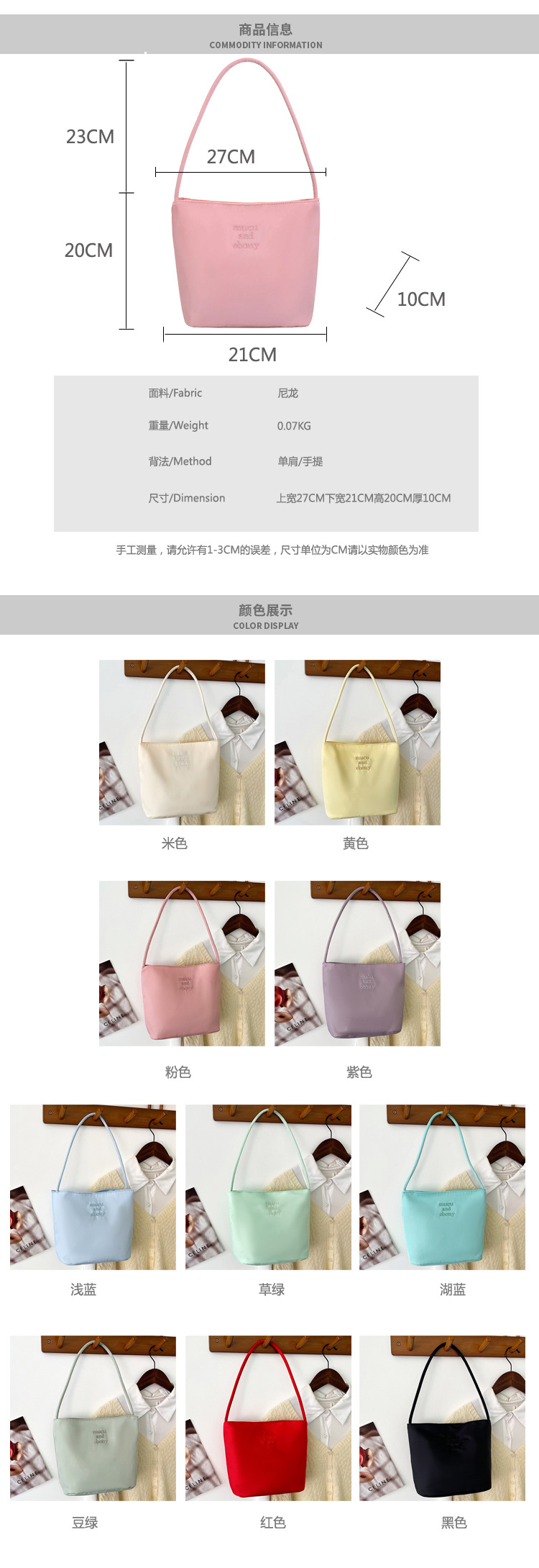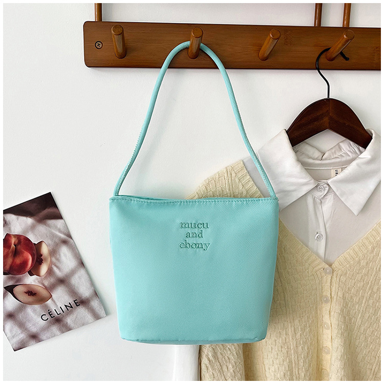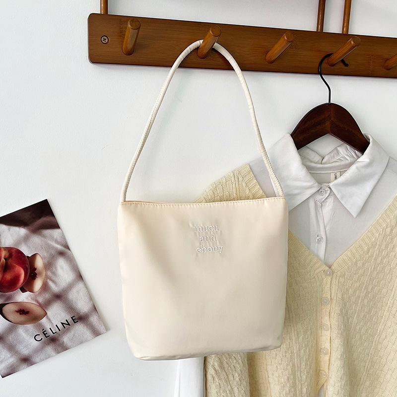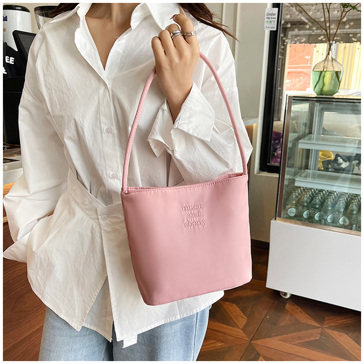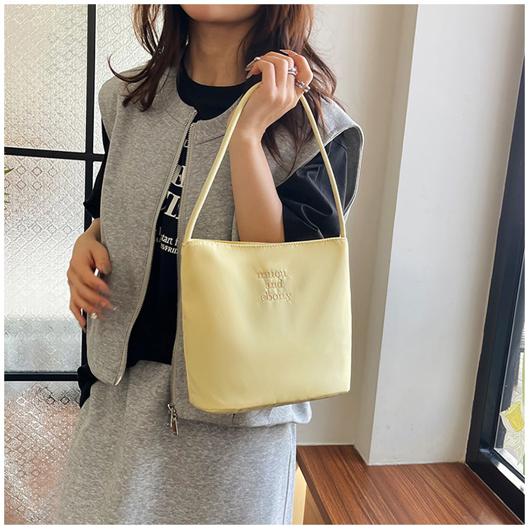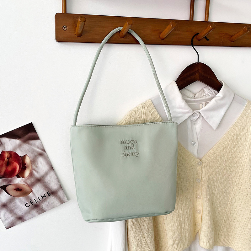 한국 많이와 ebong2024 새로운 버킷 가방 여성의 간단한 캐주얼 다목적 핸드백 나일론 겨드랑이스토어 가기