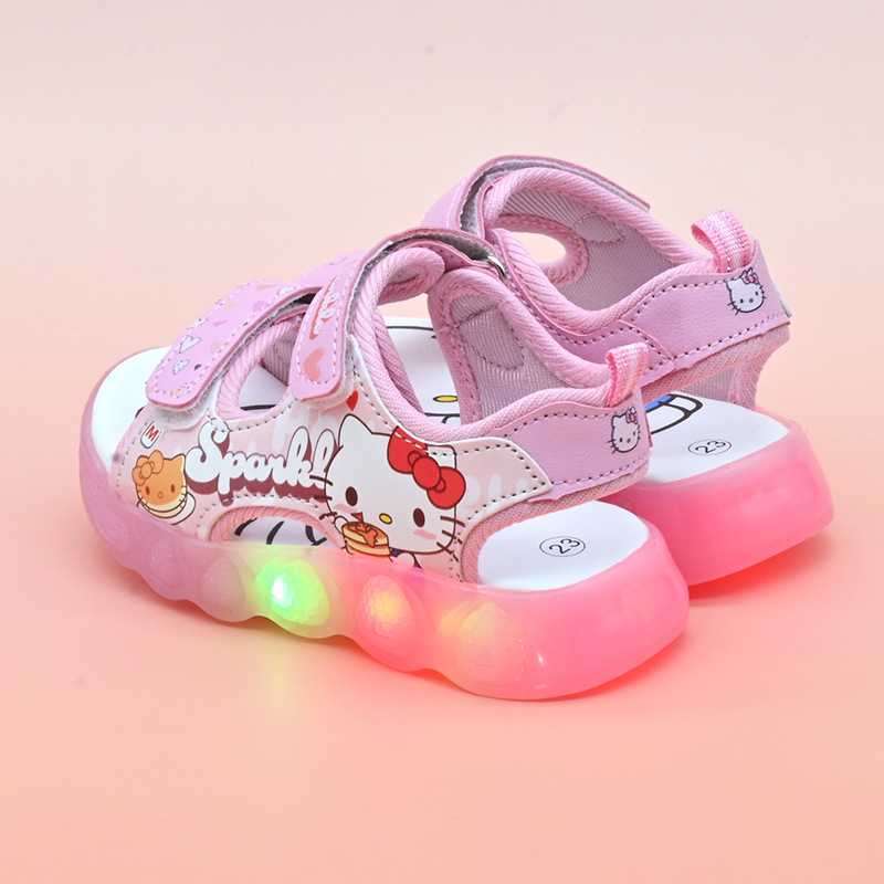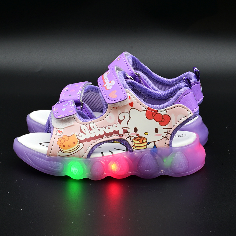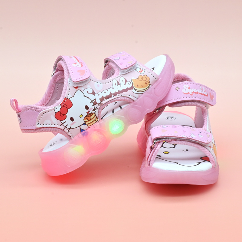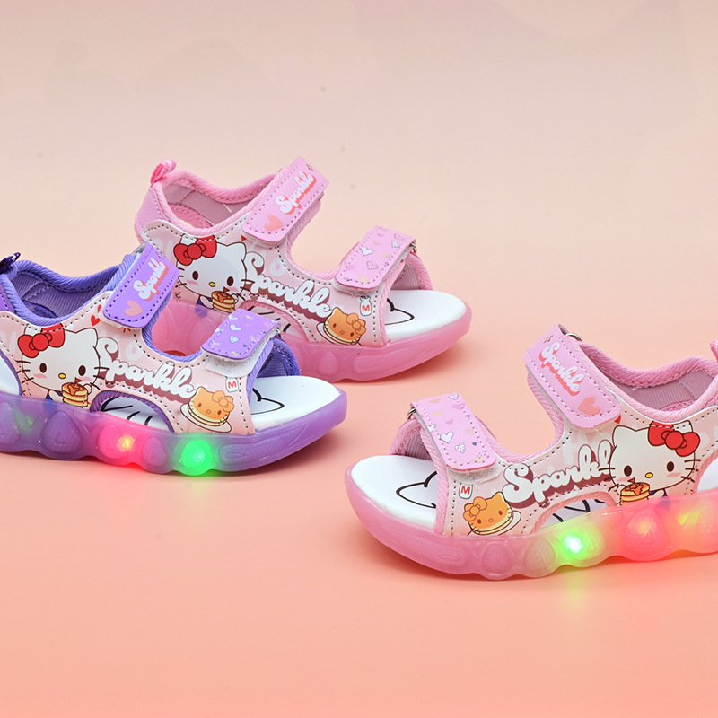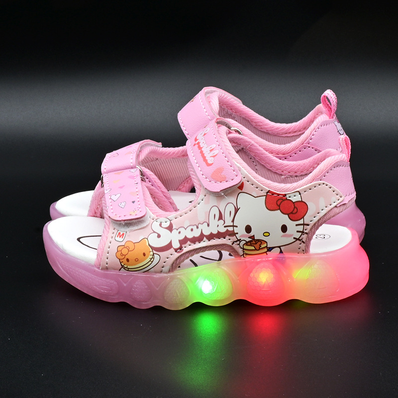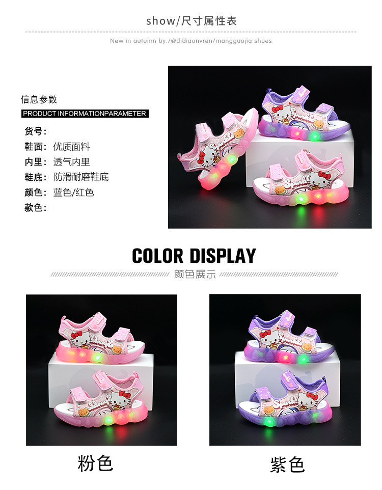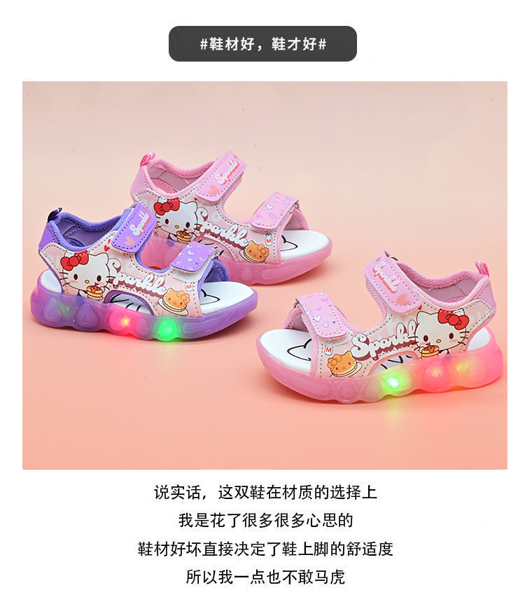2025 새로운 어린이 라이트 업 부드러운 밑창 공주 귀여운 비치 신발 아기 유아 신발 소녀 빛나는 샌들 일본 스타일스토어 가기
