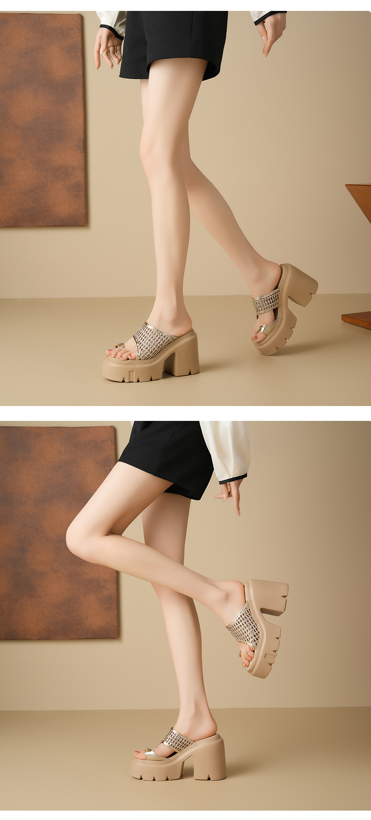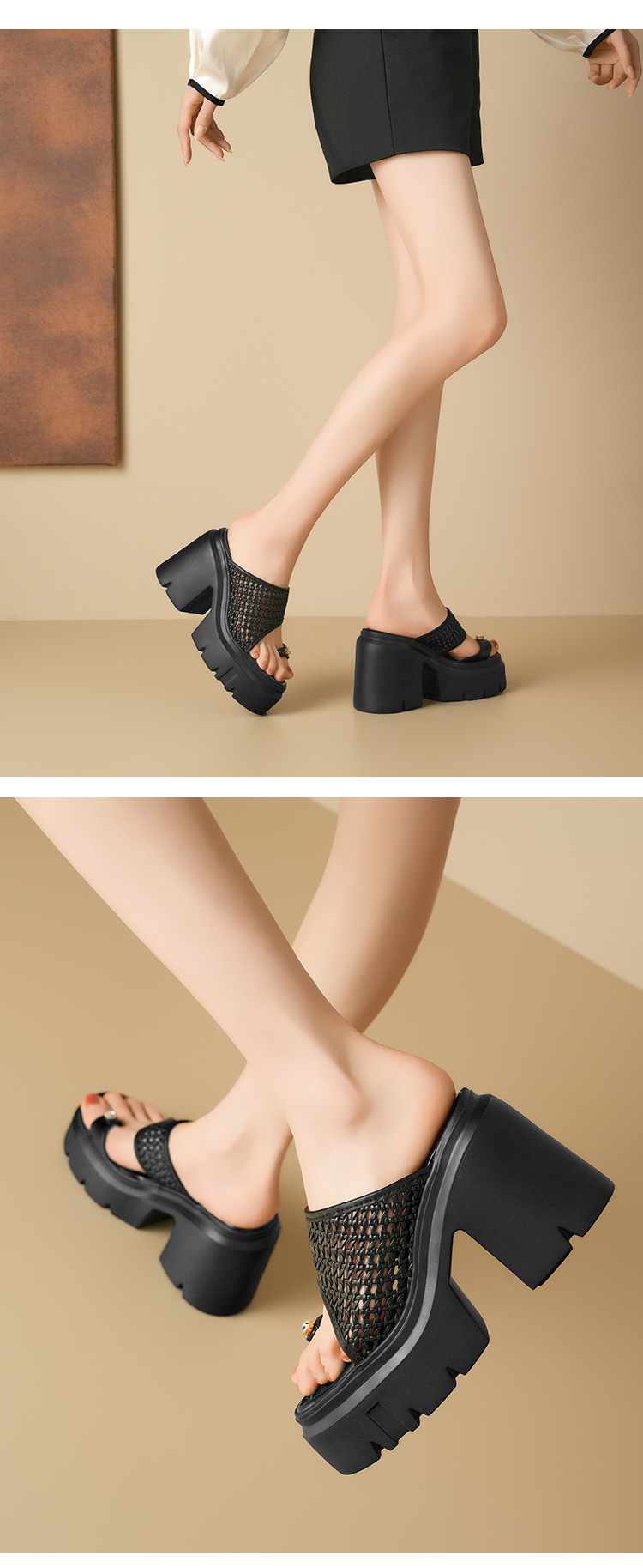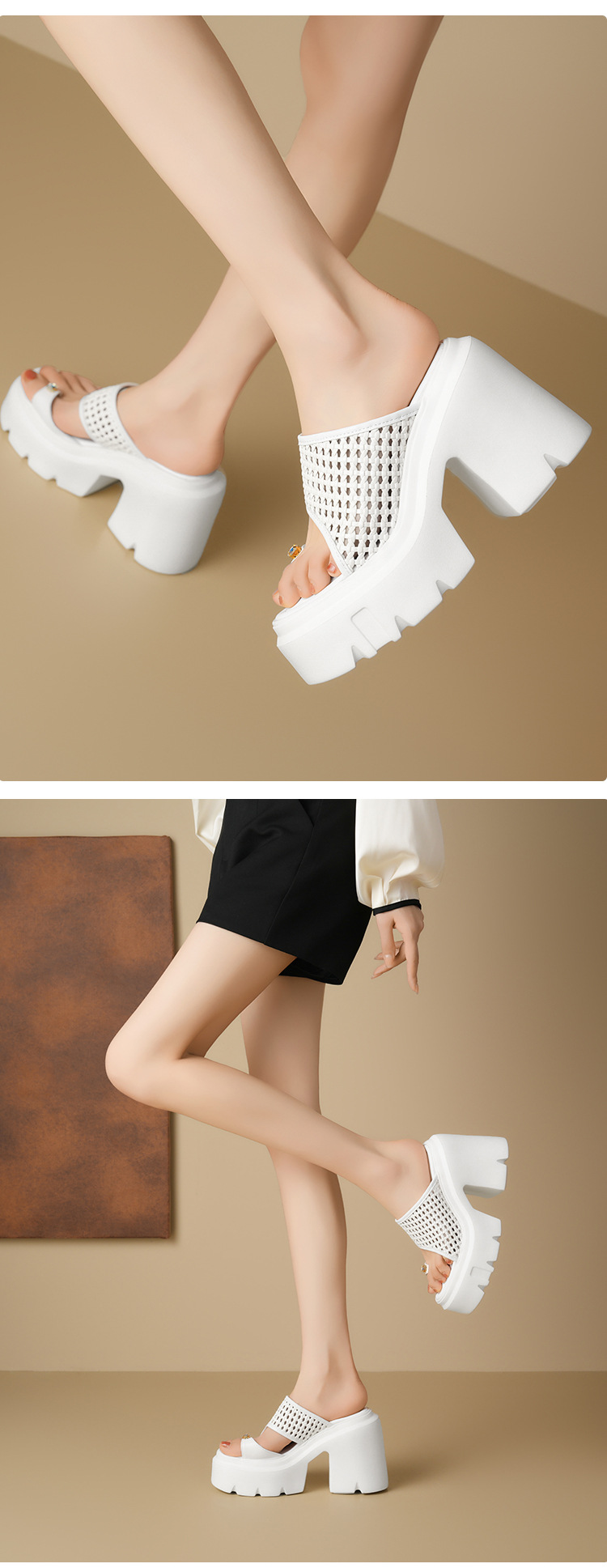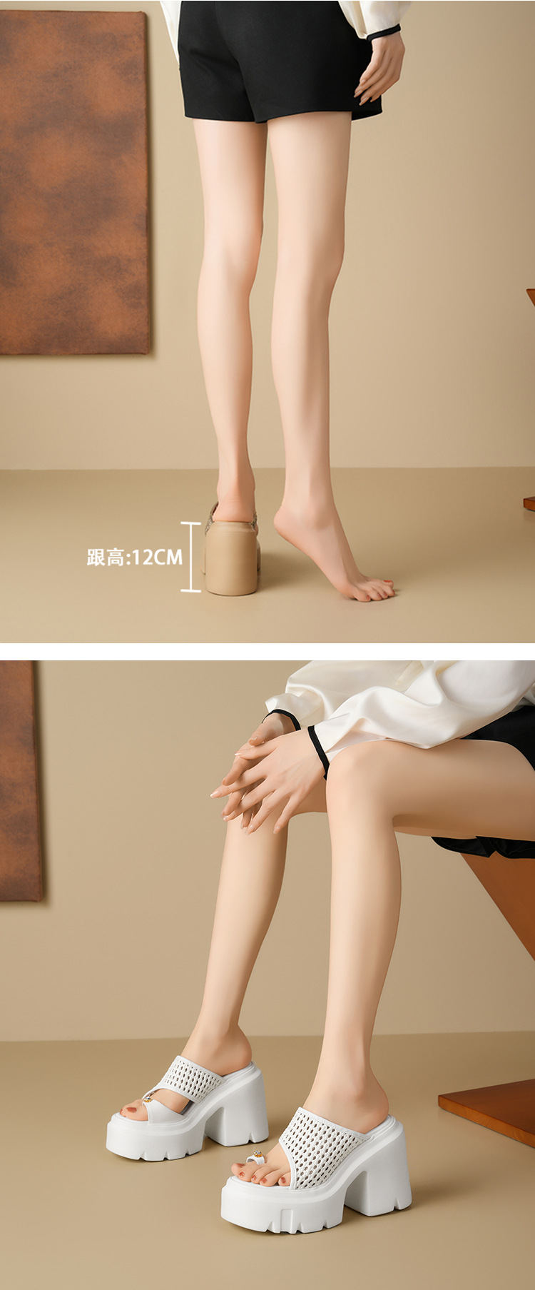 두꺼운 단독 짠 할로우 샌들 여름 2025 새로운 12cm 슈퍼 하이힐 플립 플롭 두꺼운 힐 여성용 신발스토어 가기