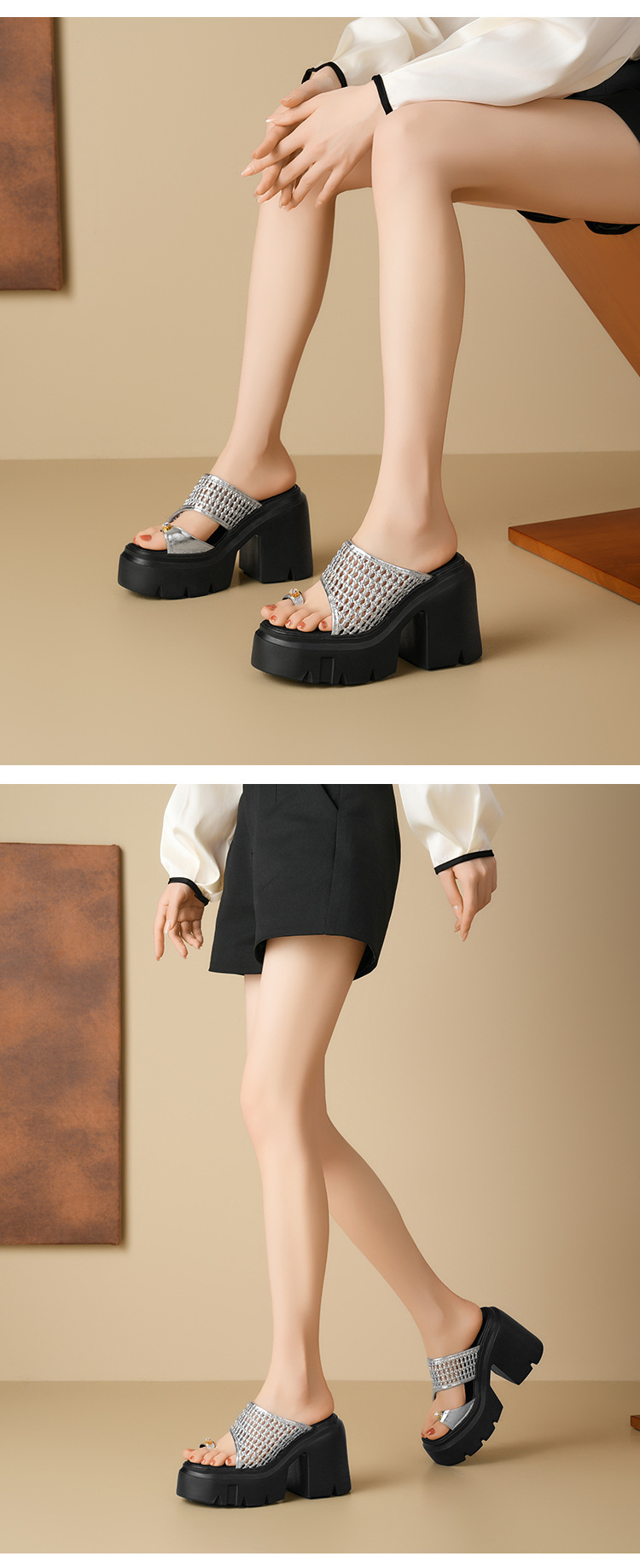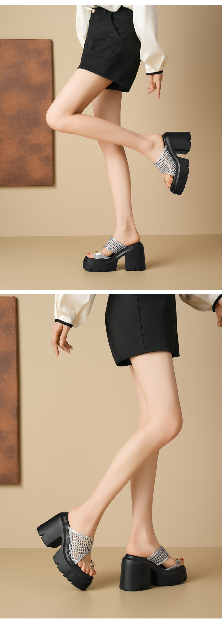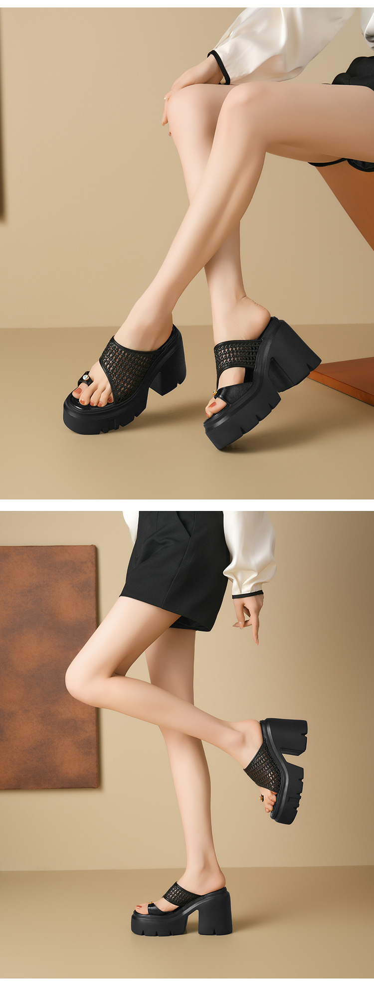 두꺼운 단독 짠 할로우 샌들 여름 2025 새로운 12cm 슈퍼 하이힐 플립 플롭 두꺼운 힐 여성용 신발스토어 가기
