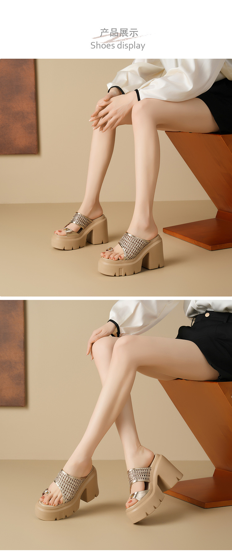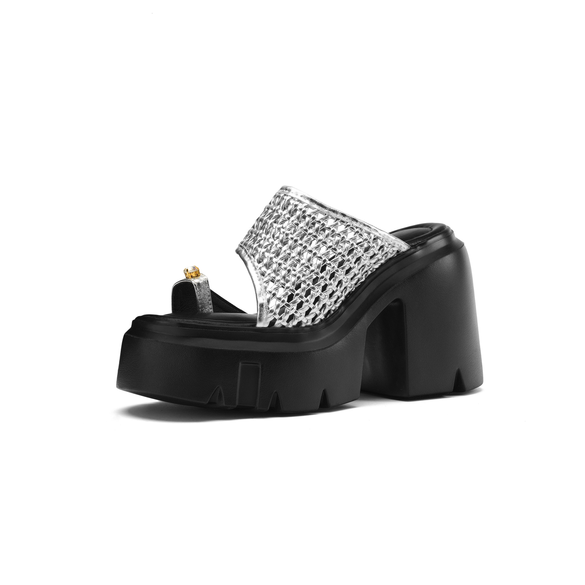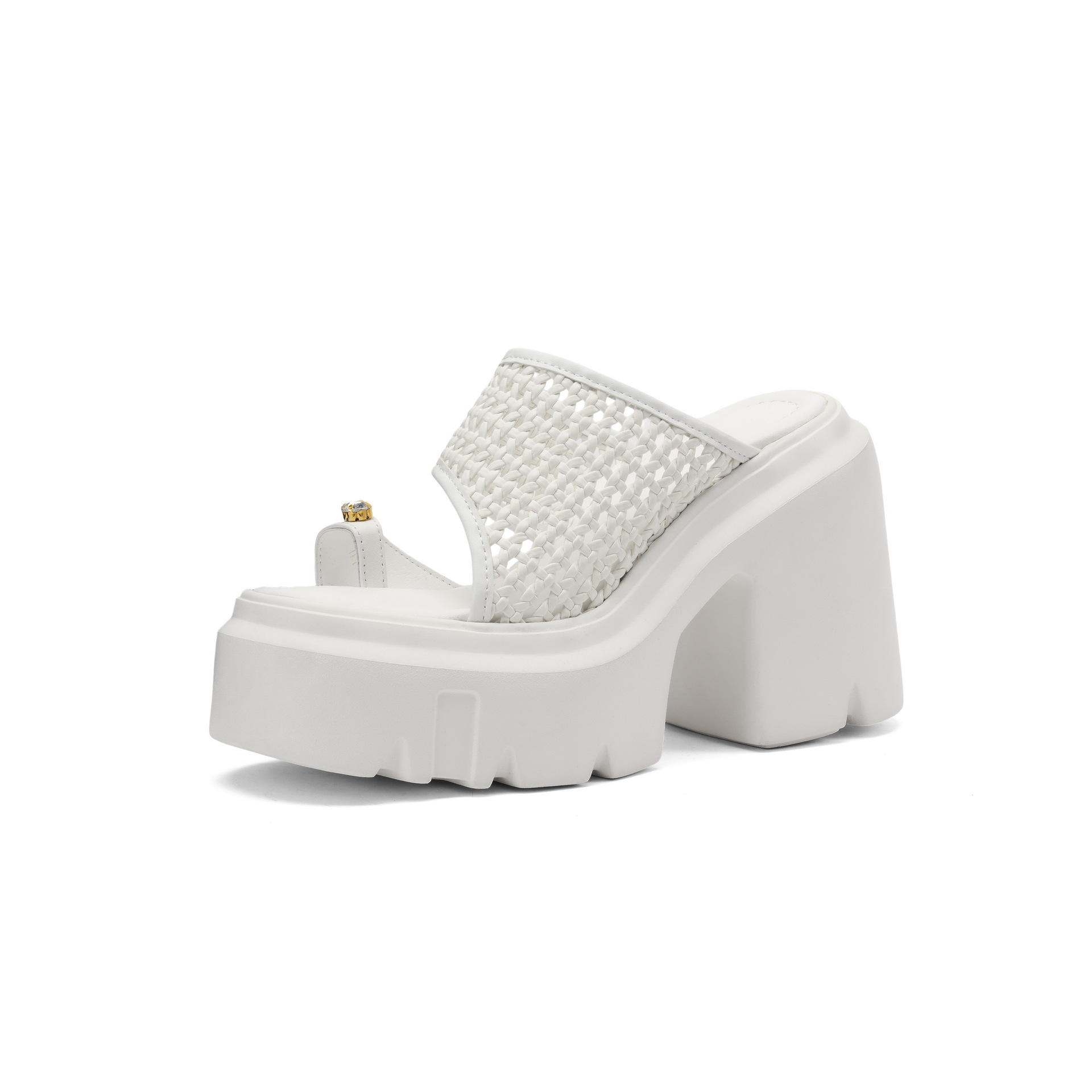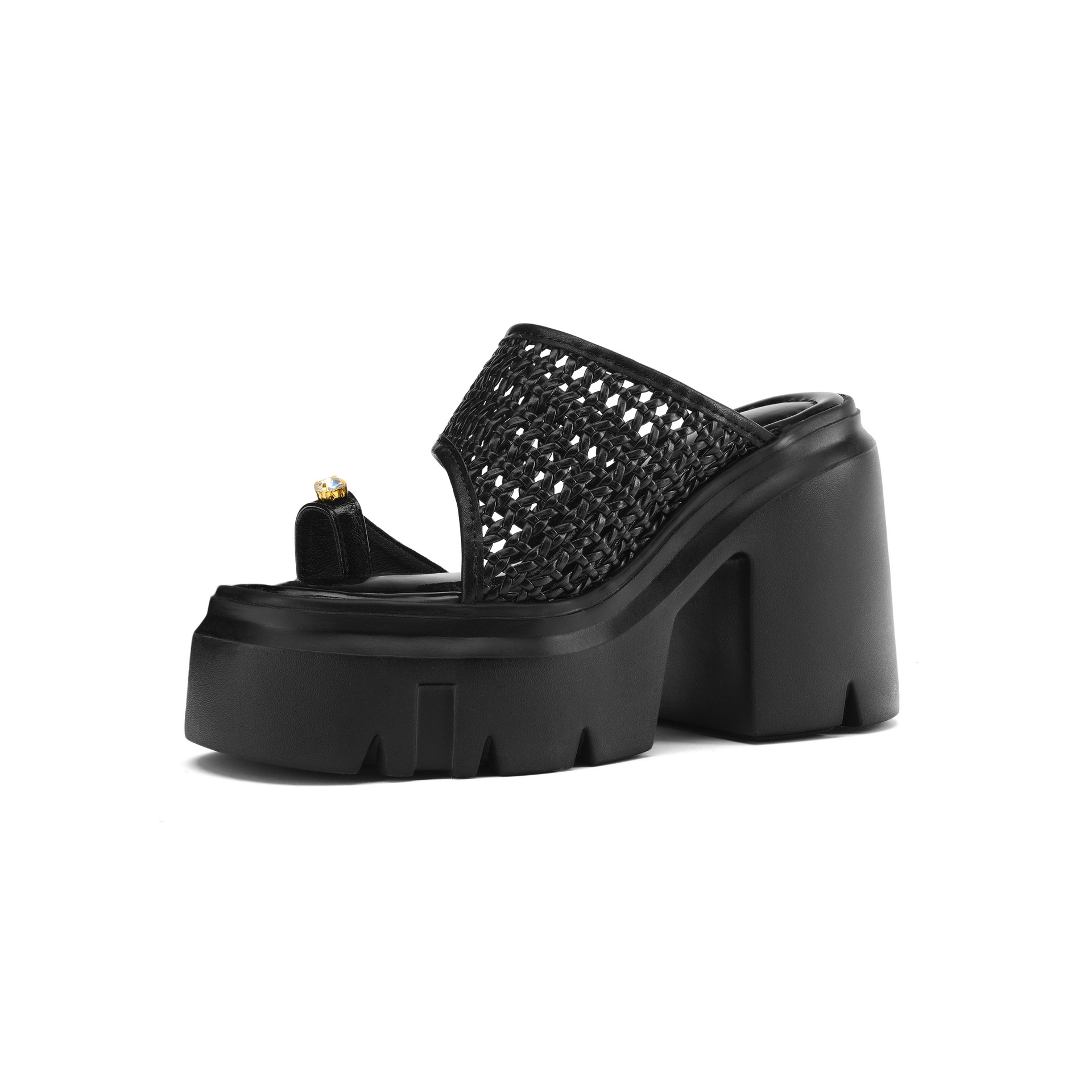 두꺼운 단독 짠 할로우 샌들 여름 2025 새로운 12cm 슈퍼 하이힐 플립 플롭 두꺼운 힐 여성용 신발스토어 가기