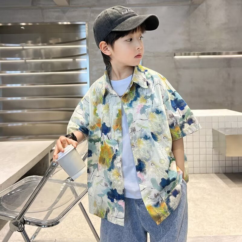 비치 플라워 셔츠 소년 반팔 여름 얇은 트렌디 브랜드 잘 생긴 루즈 캐주얼 5부 소매 셔츠 트렌디 탑스토어 가기